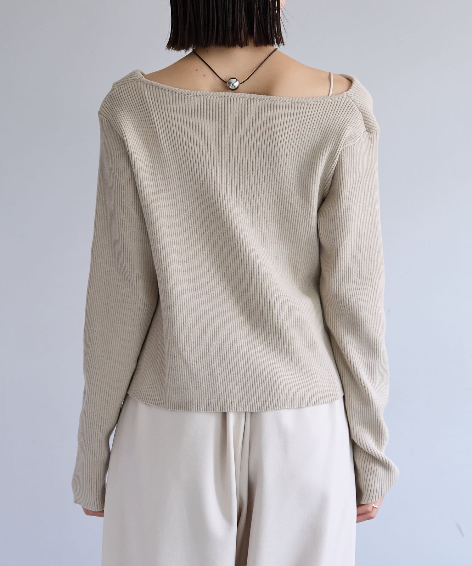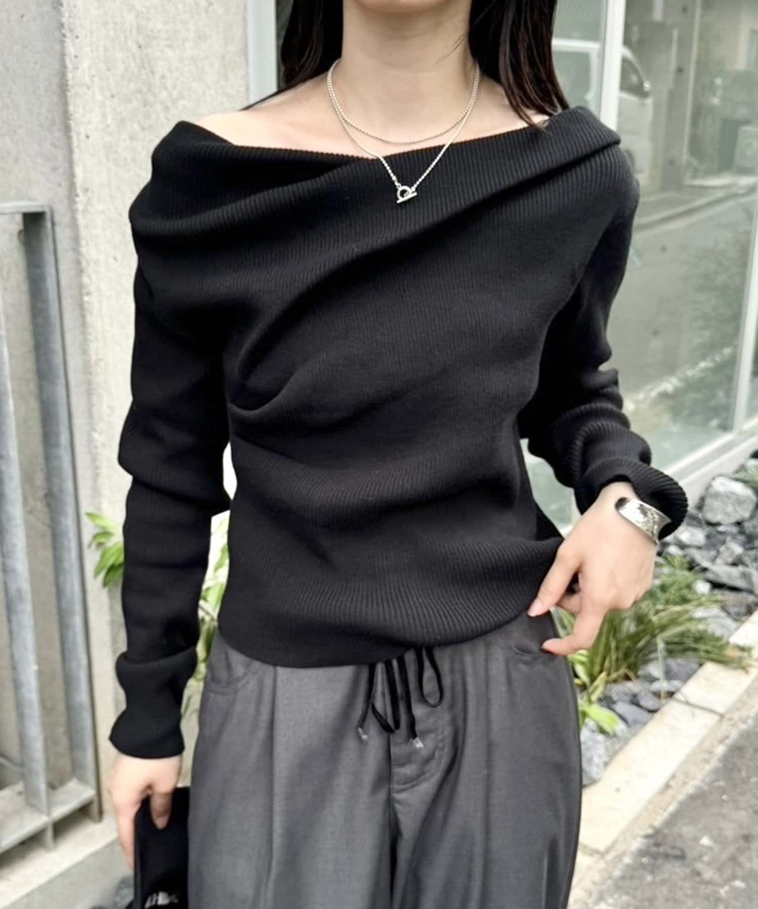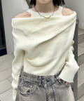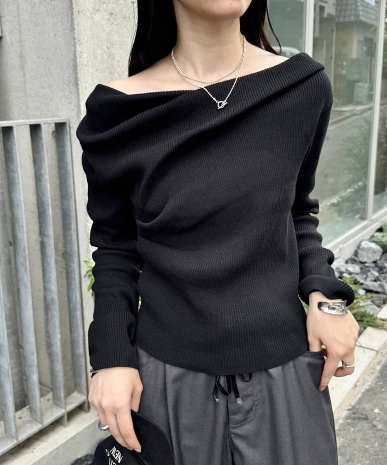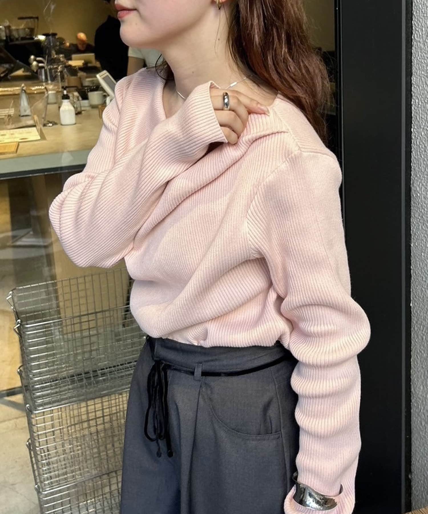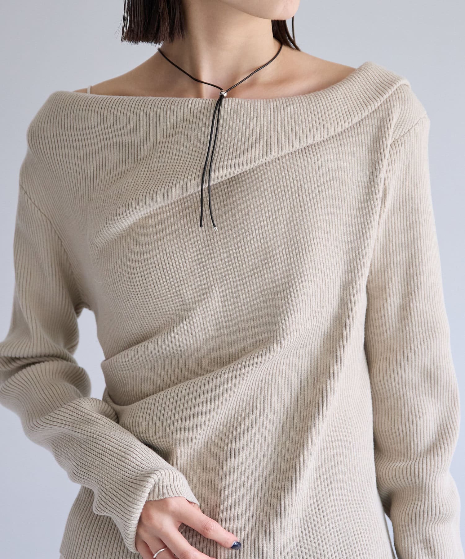 ・オフショルデザインが目を惹く女性らしい印象のリブニット。