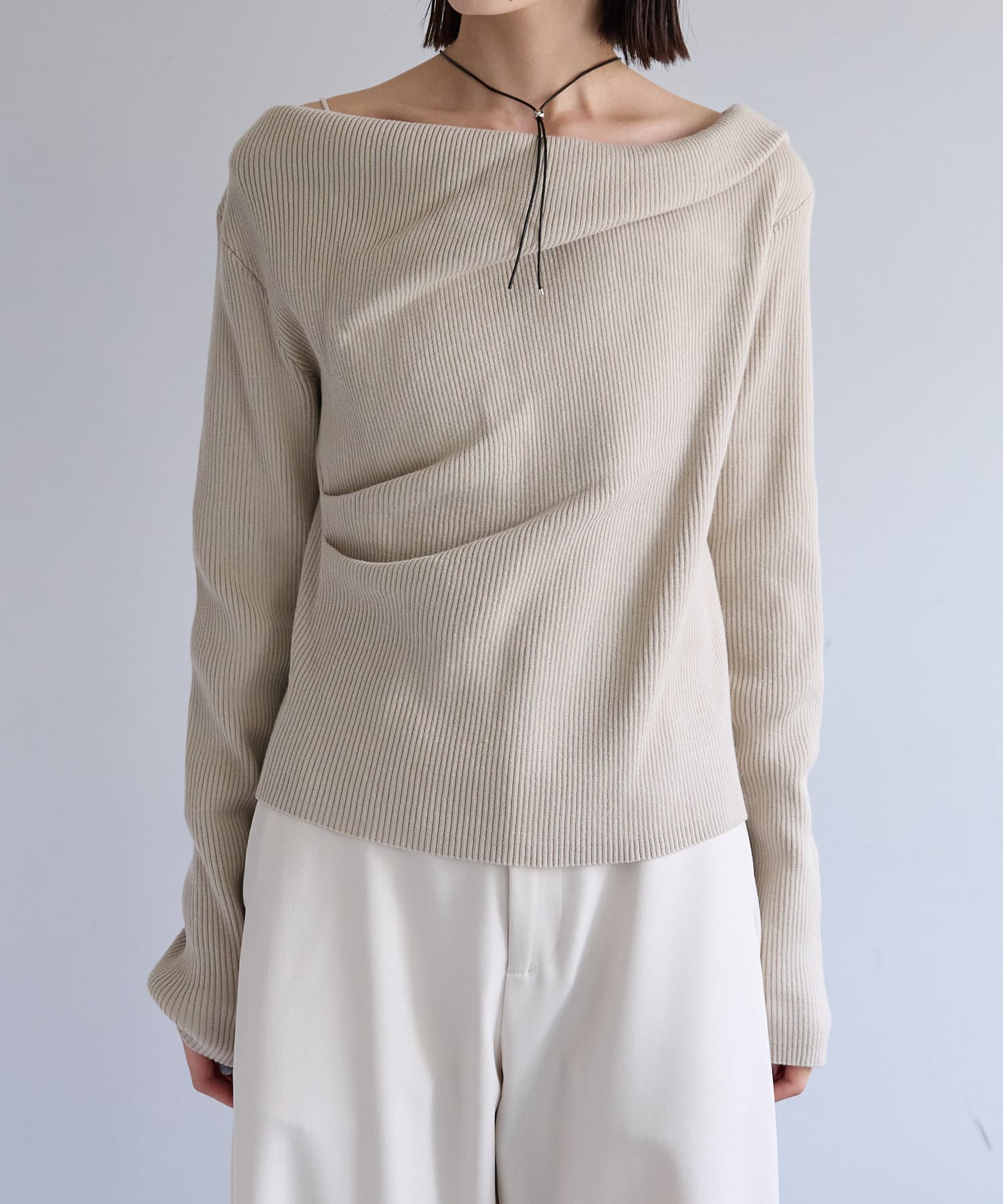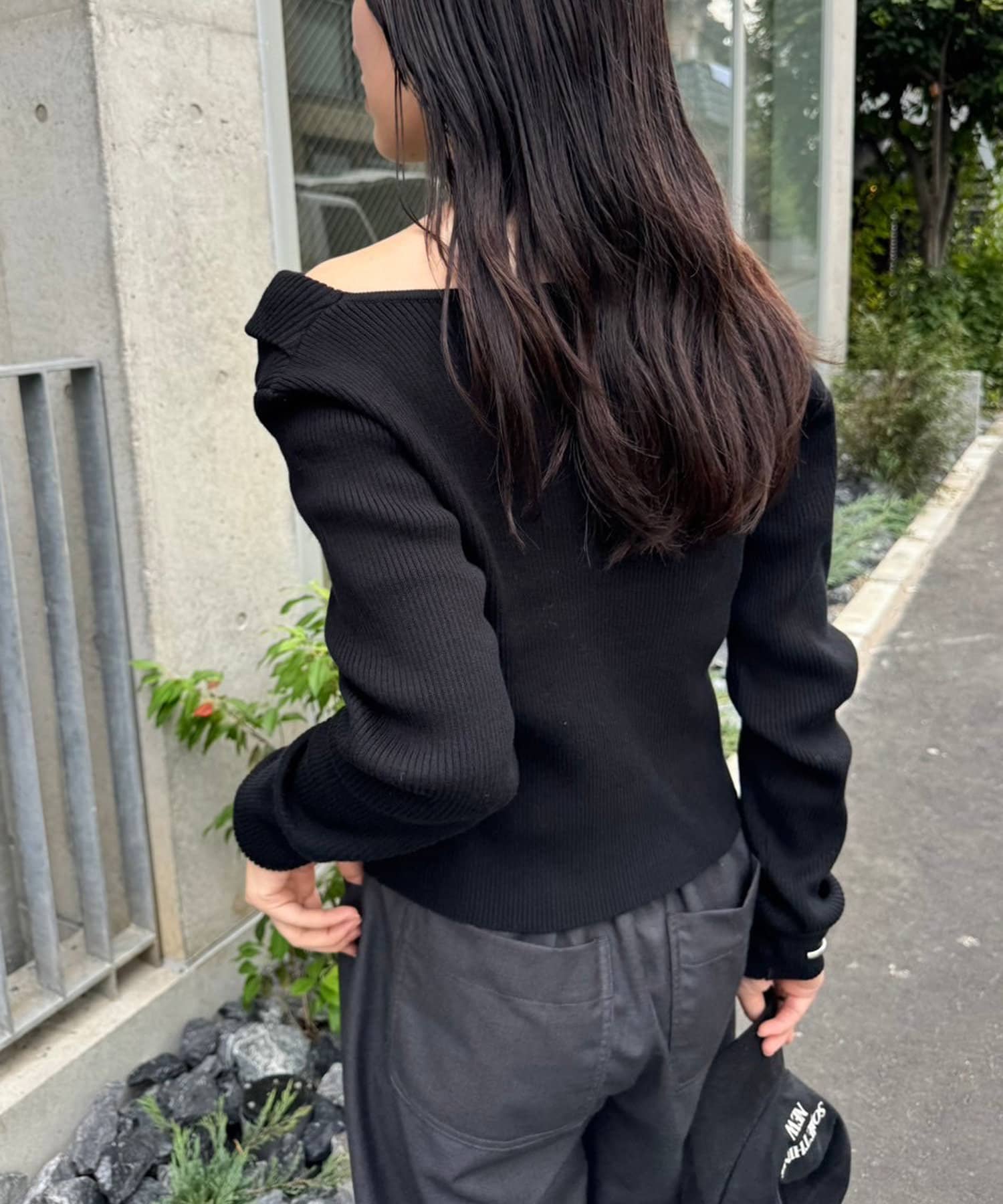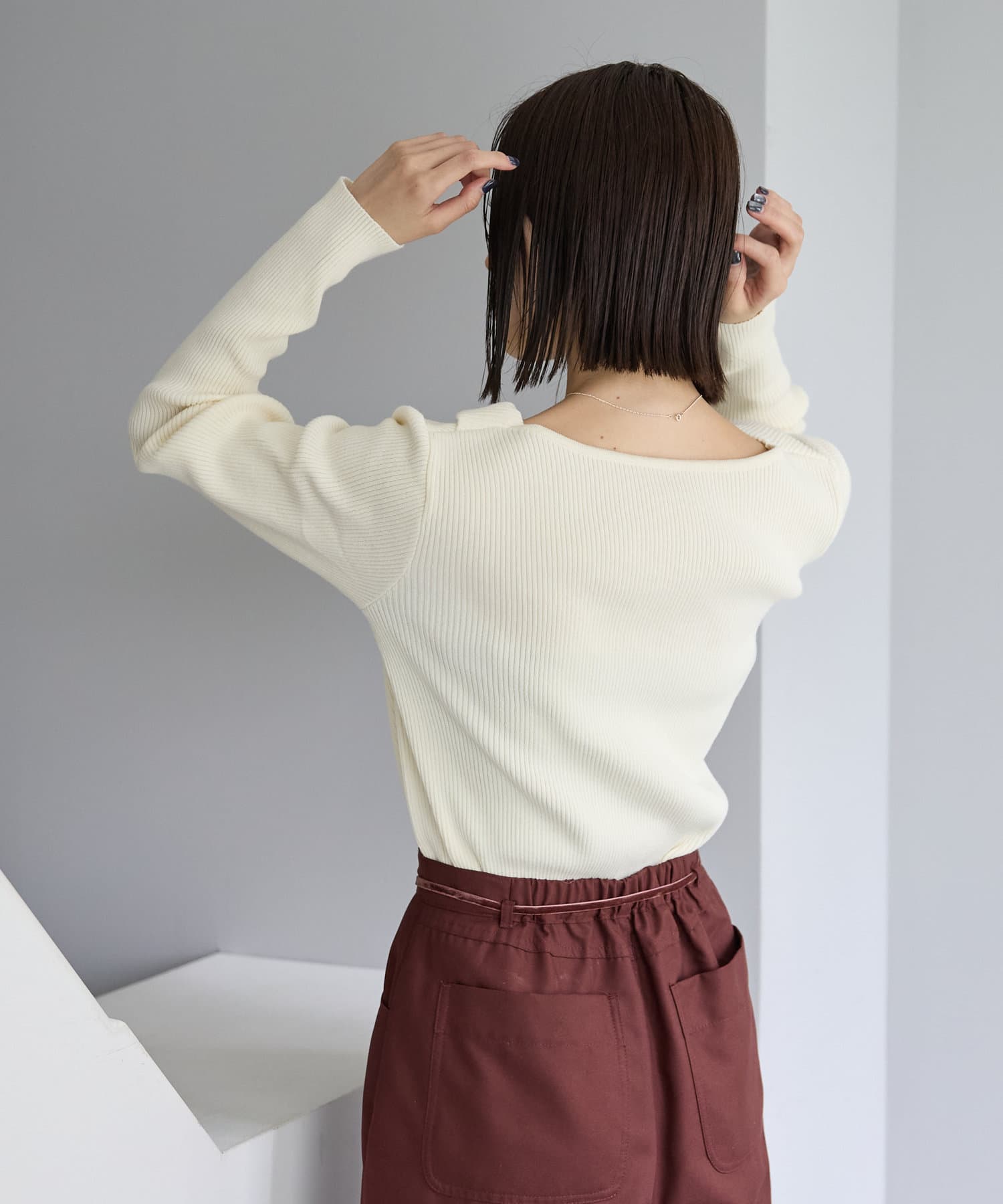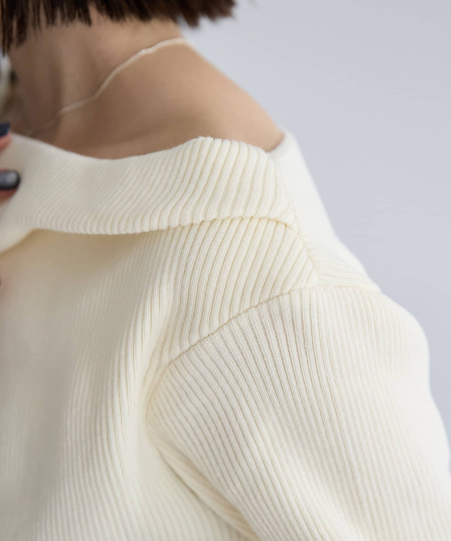 ・オフショルデザインが目を惹く女性らしい印象のリブニット。