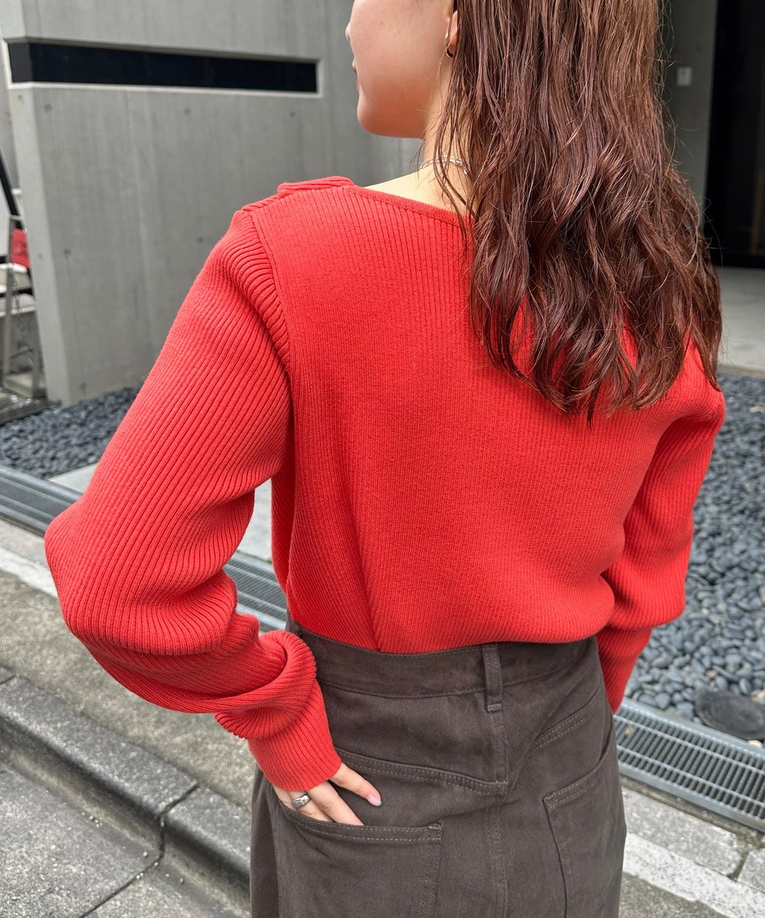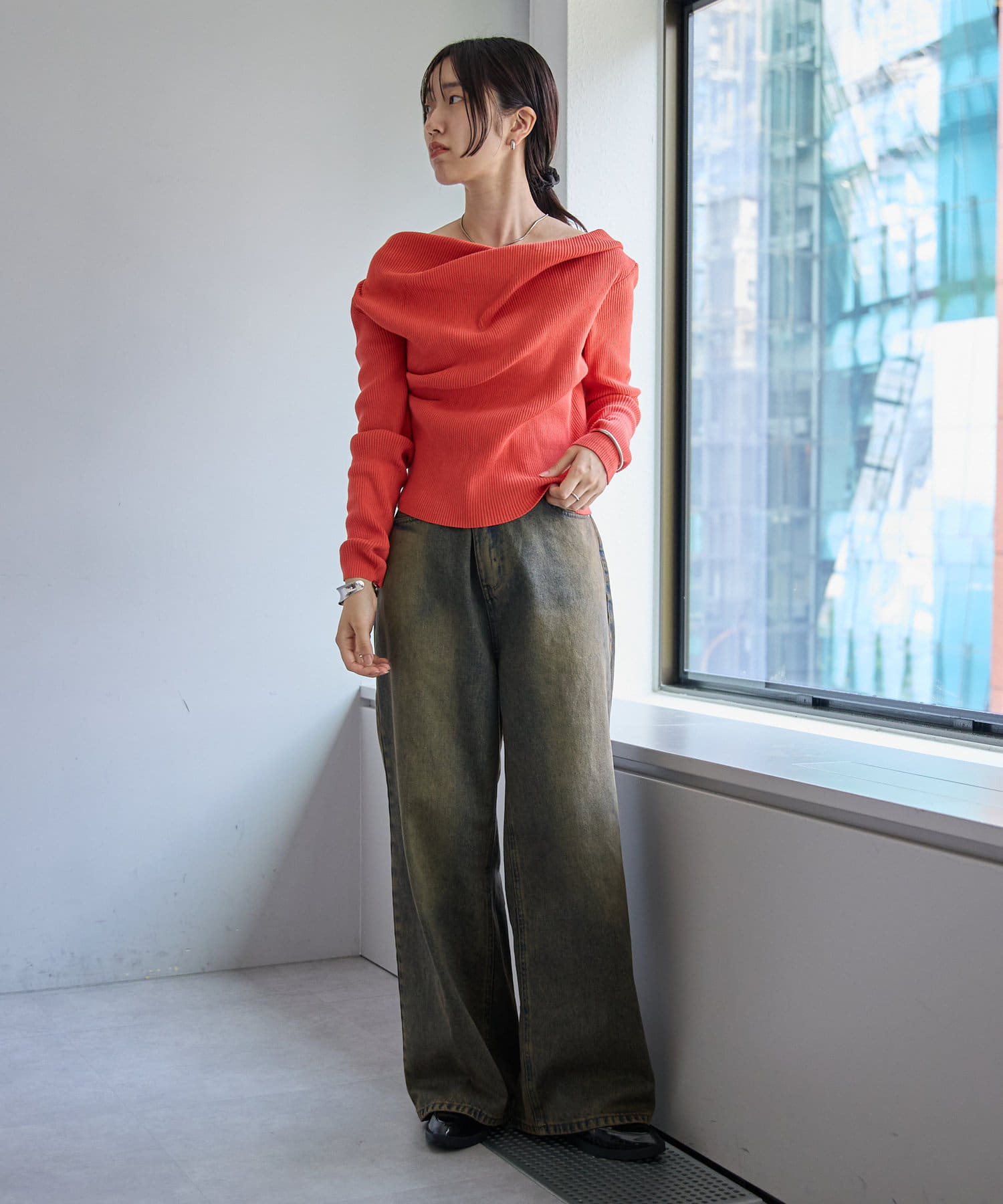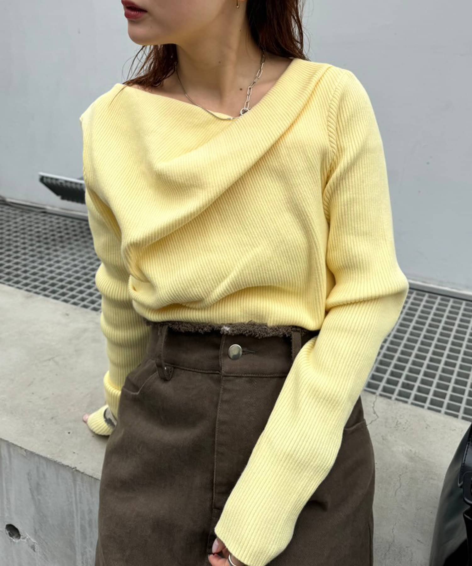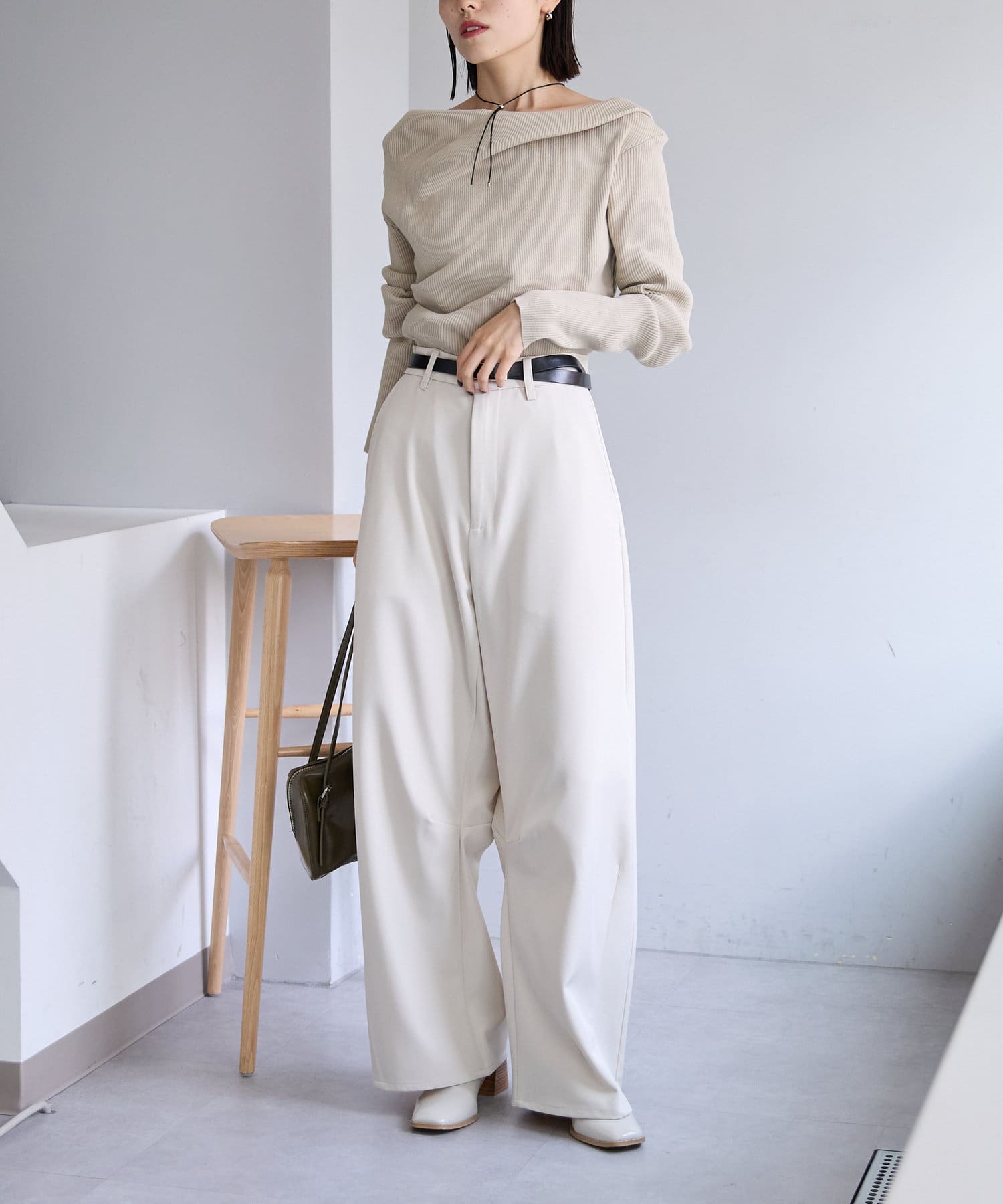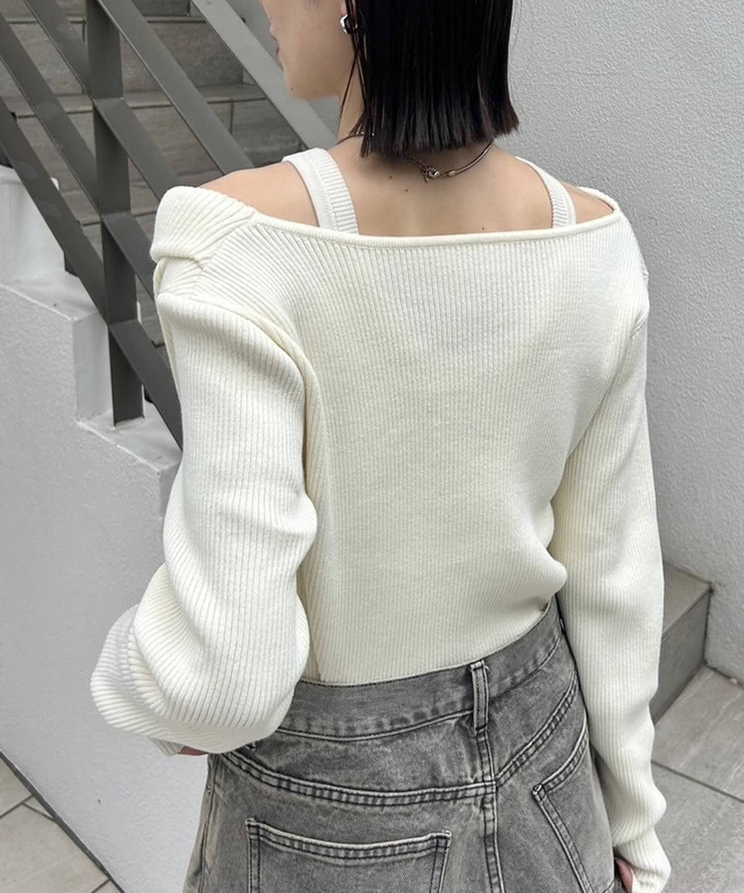 ・オフショルデザインが目を惹く女性らしい印象のリブニット。