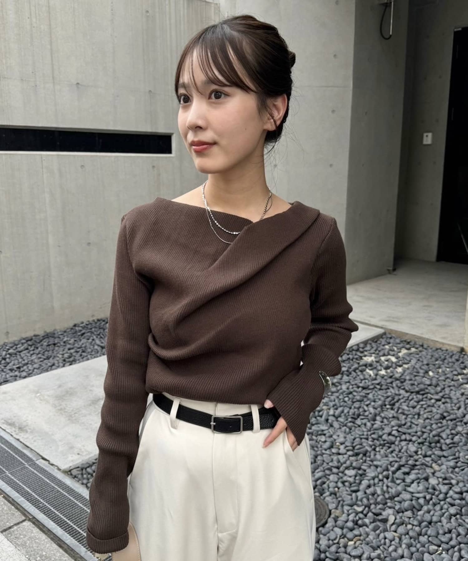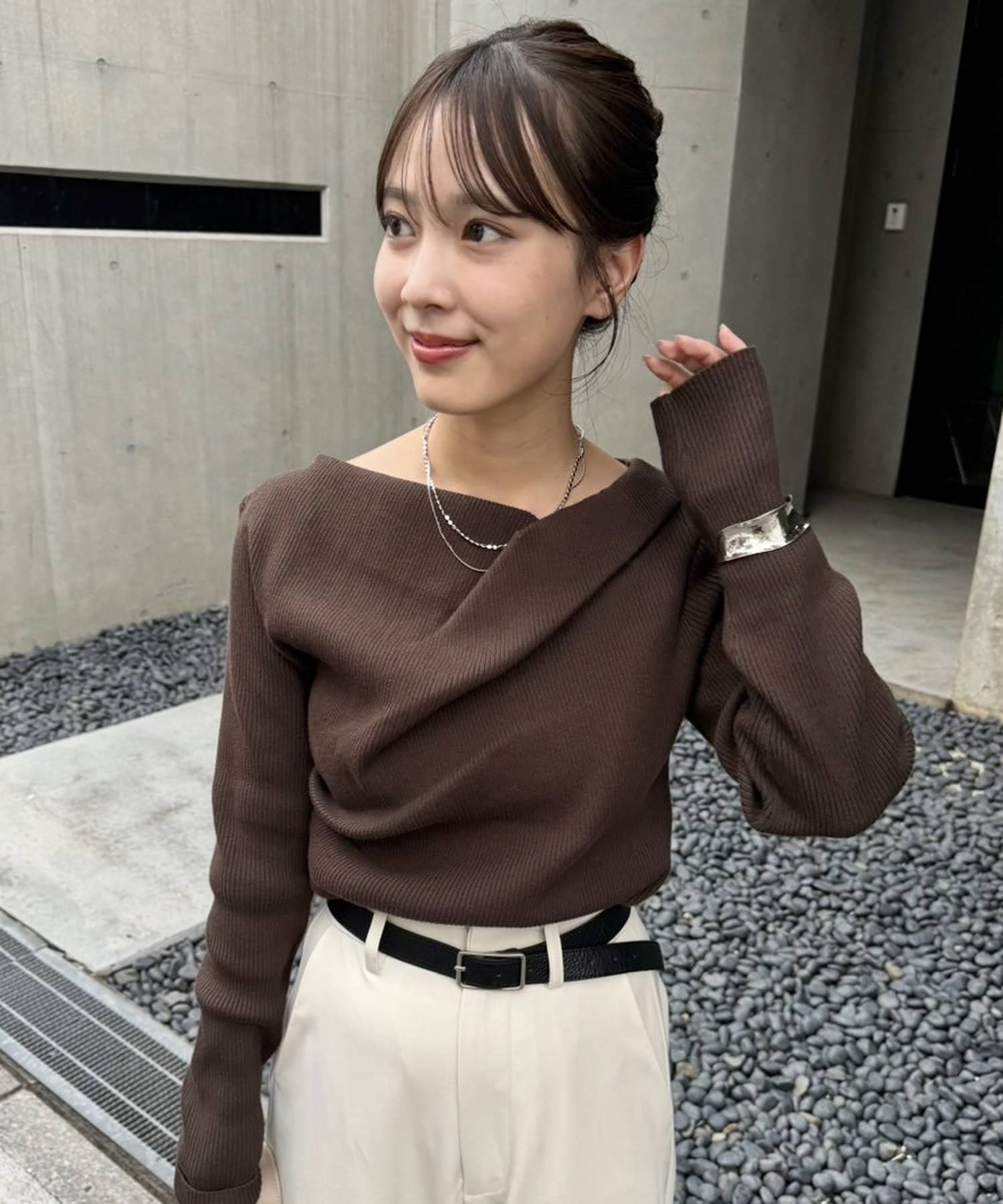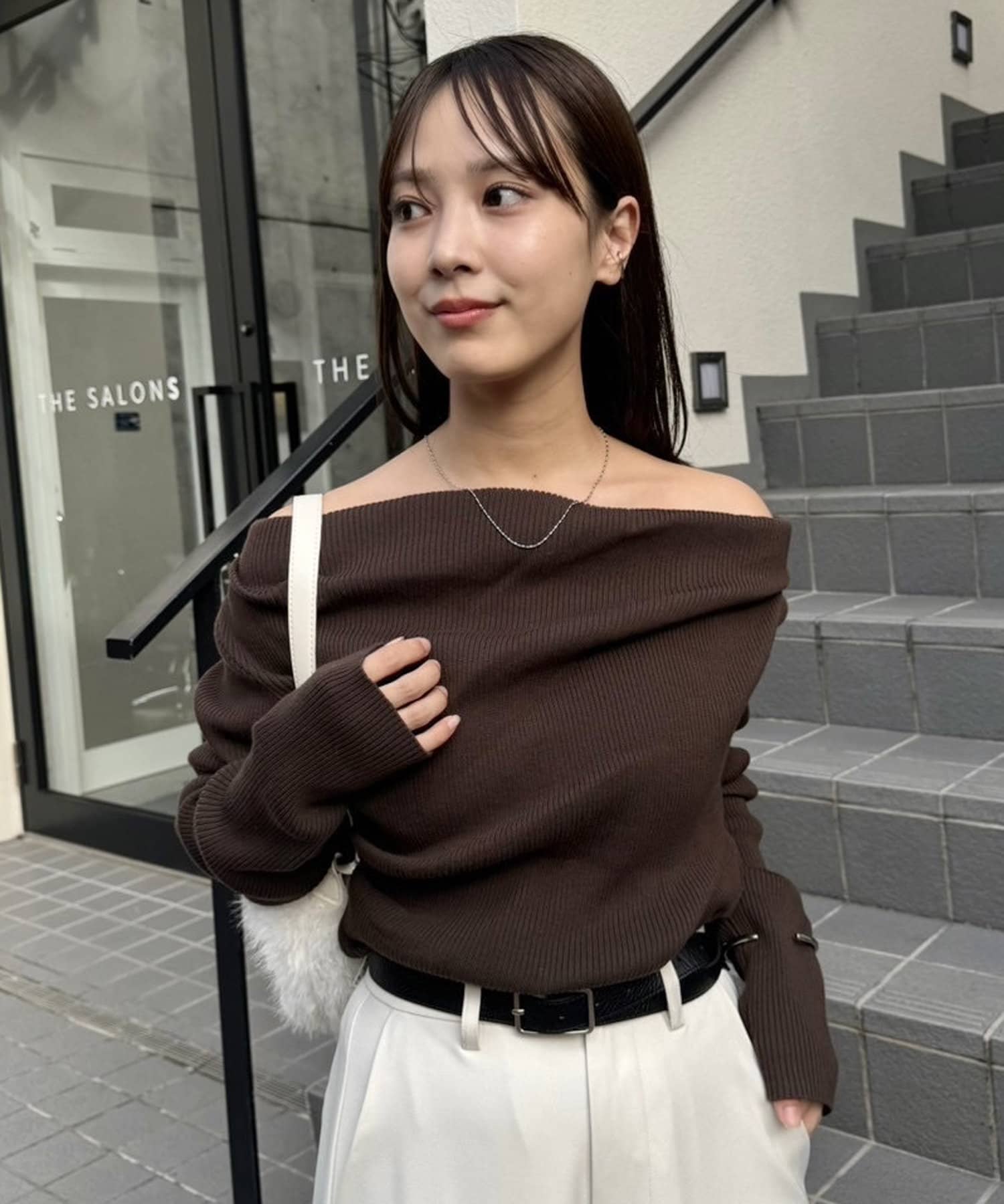 購入場所:店舗オフショルという名前ですが、本当にデコルテを綺麗に見せてくれるニットです!!形が好き過ぎてアイボリー、ベージュ、ブラウンをゲットしました!!