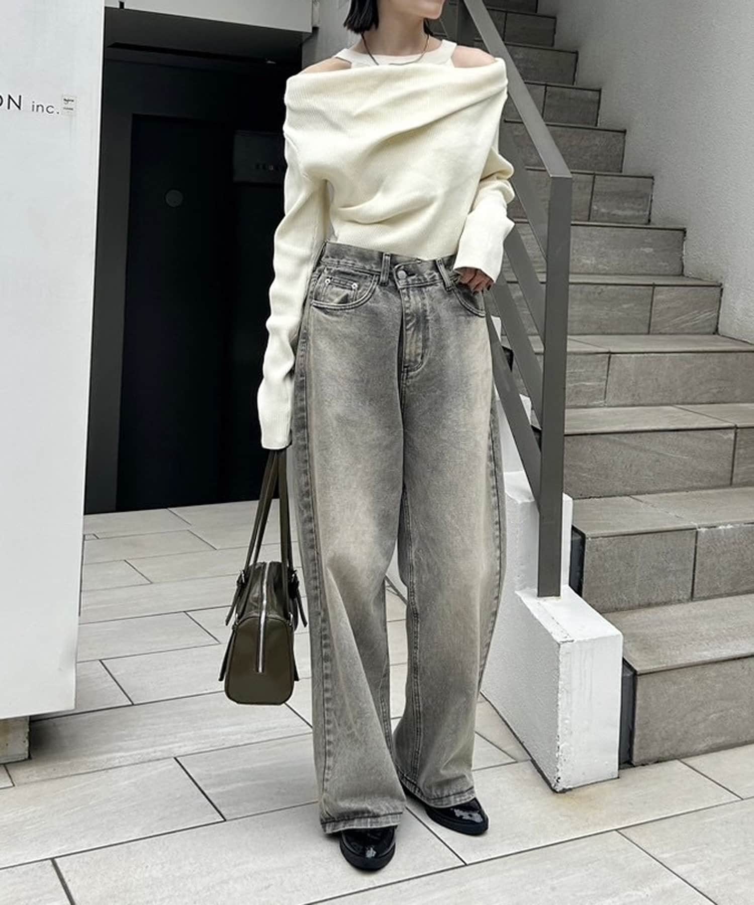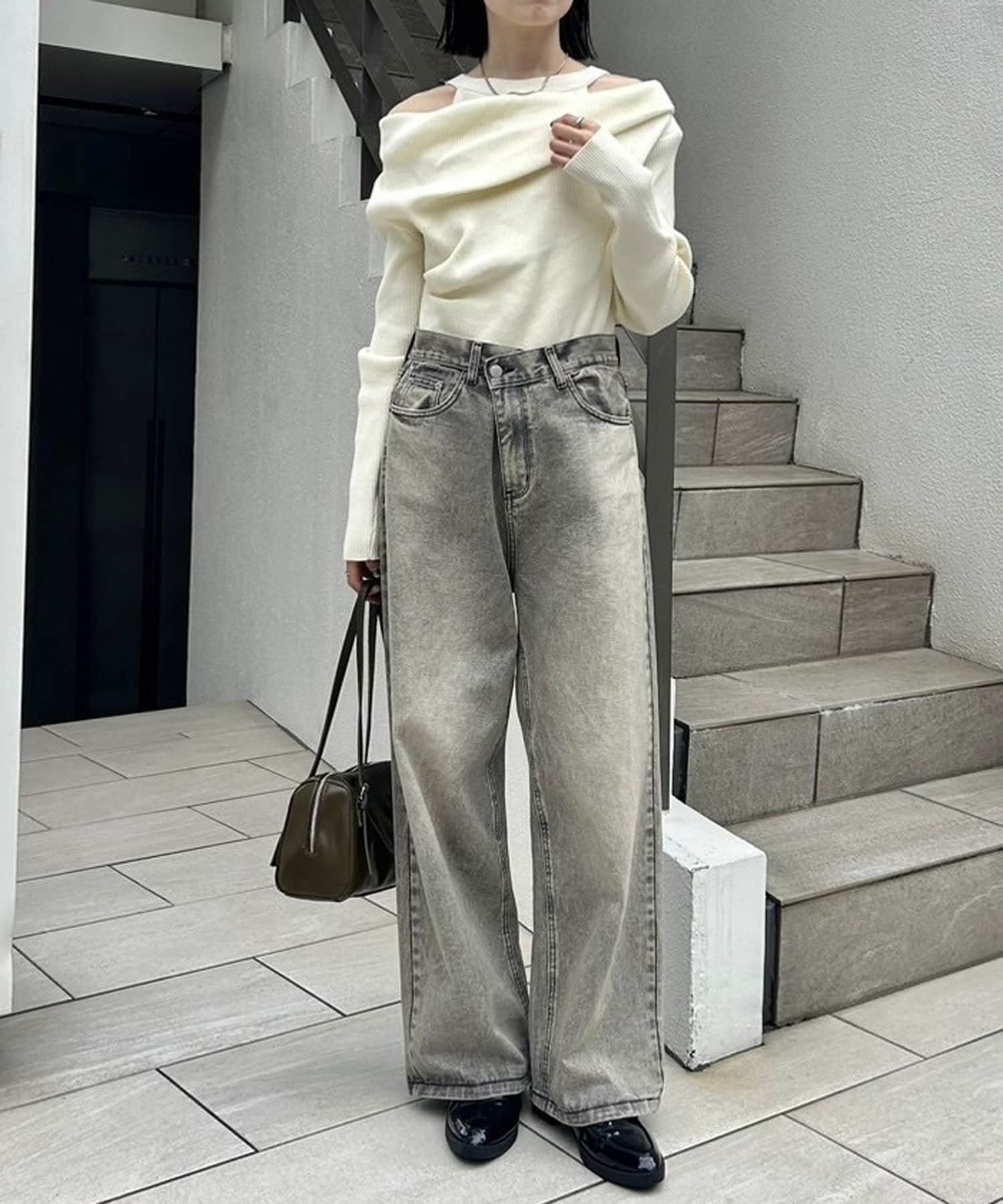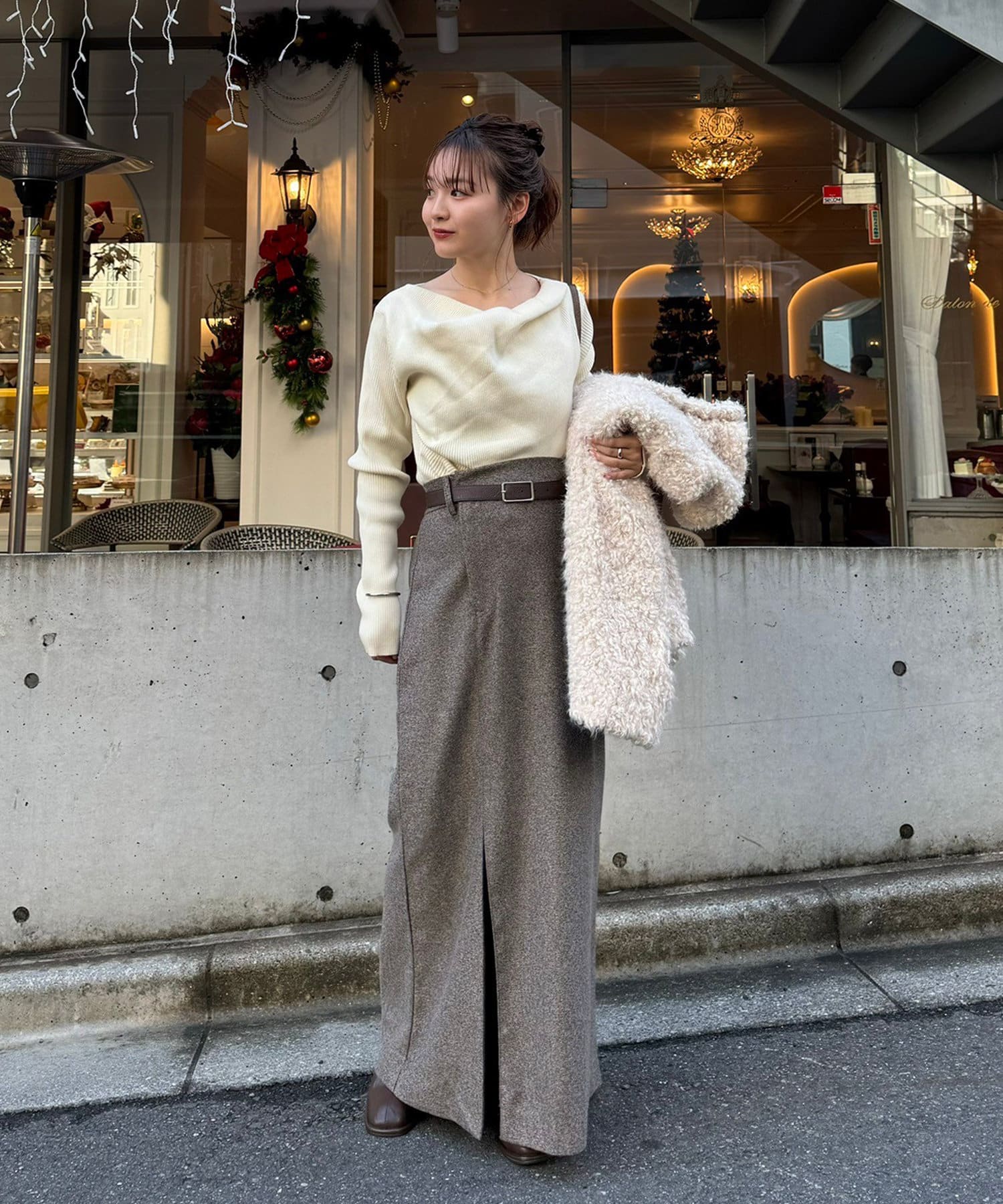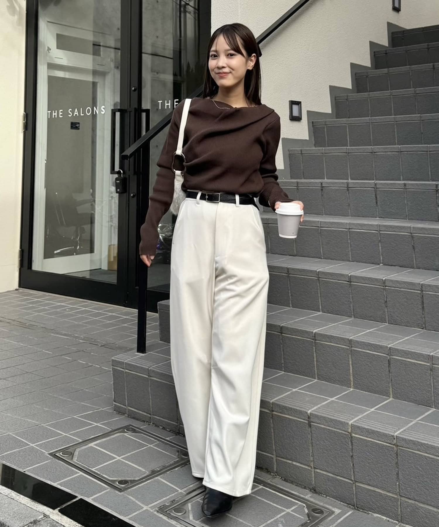 購入場所:店舗オフショルという名前ですが、本当にデコルテを綺麗に見せてくれるニットです!!形が好き過ぎてアイボリー、ベージュ、ブラウンをゲットしました!!