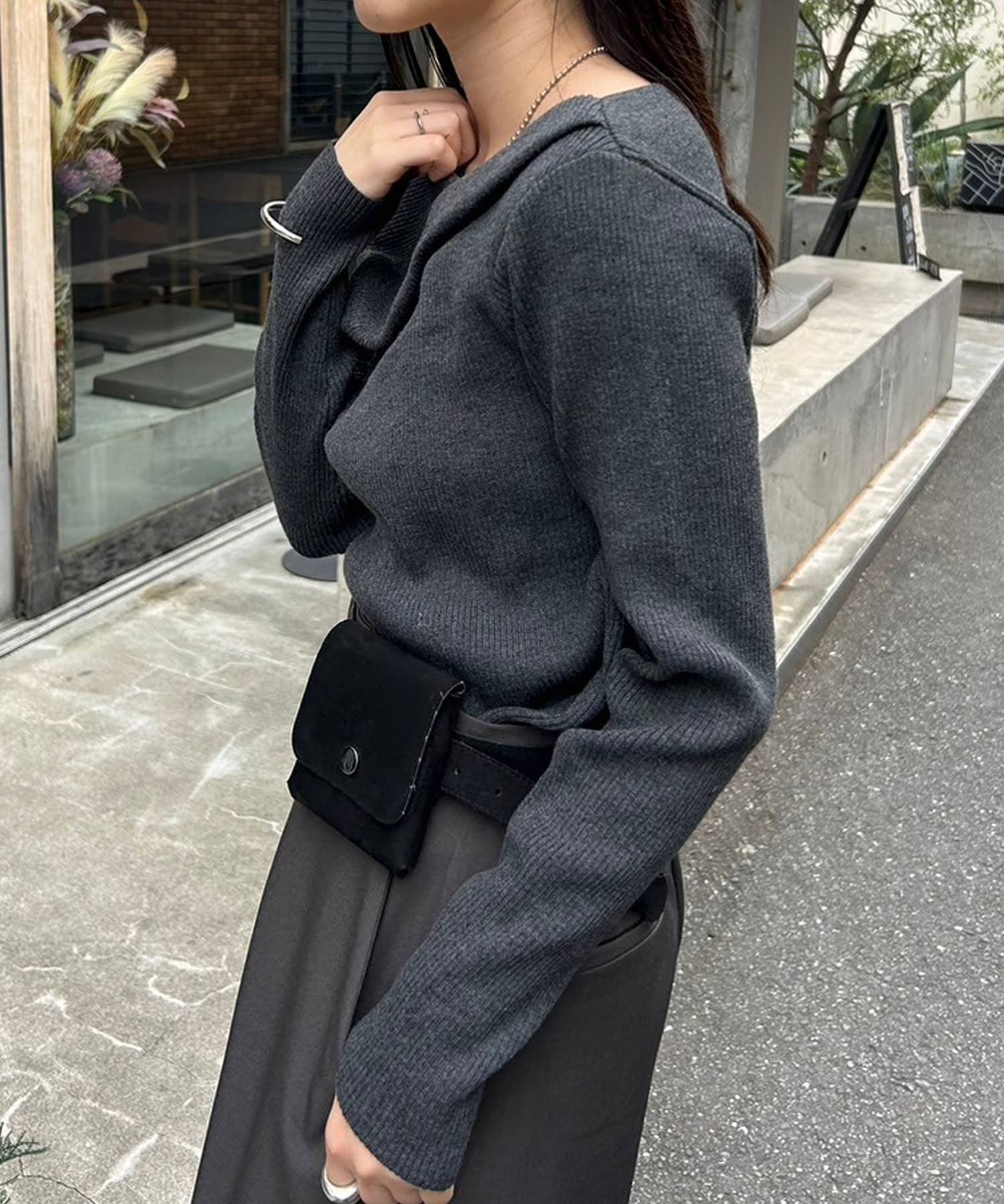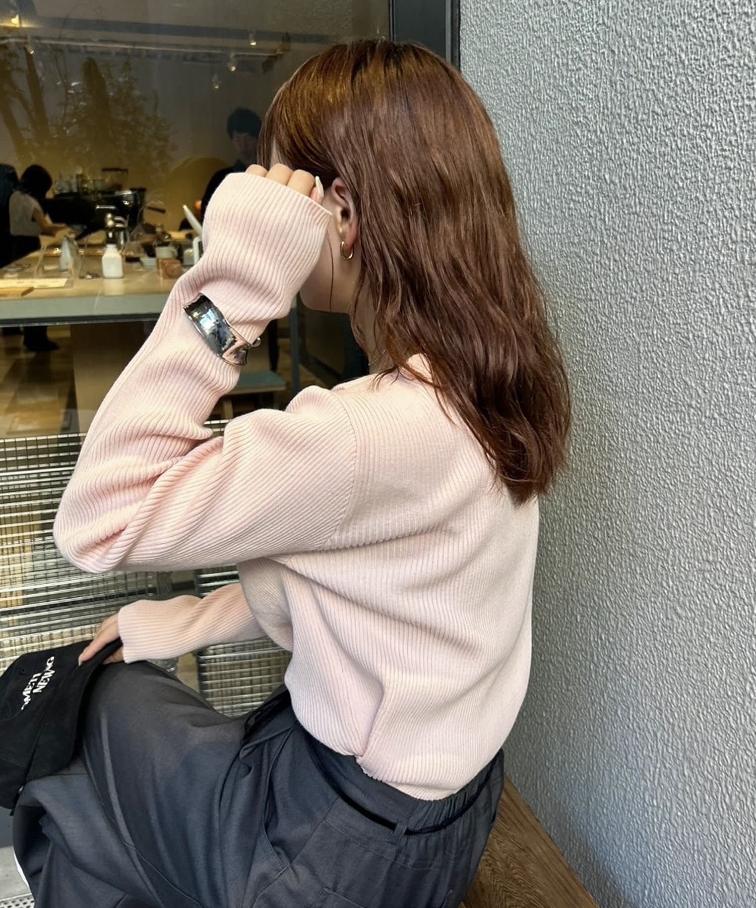 ・伸縮性のあるリブニットはボディラインに程よくフィットしてくれます。