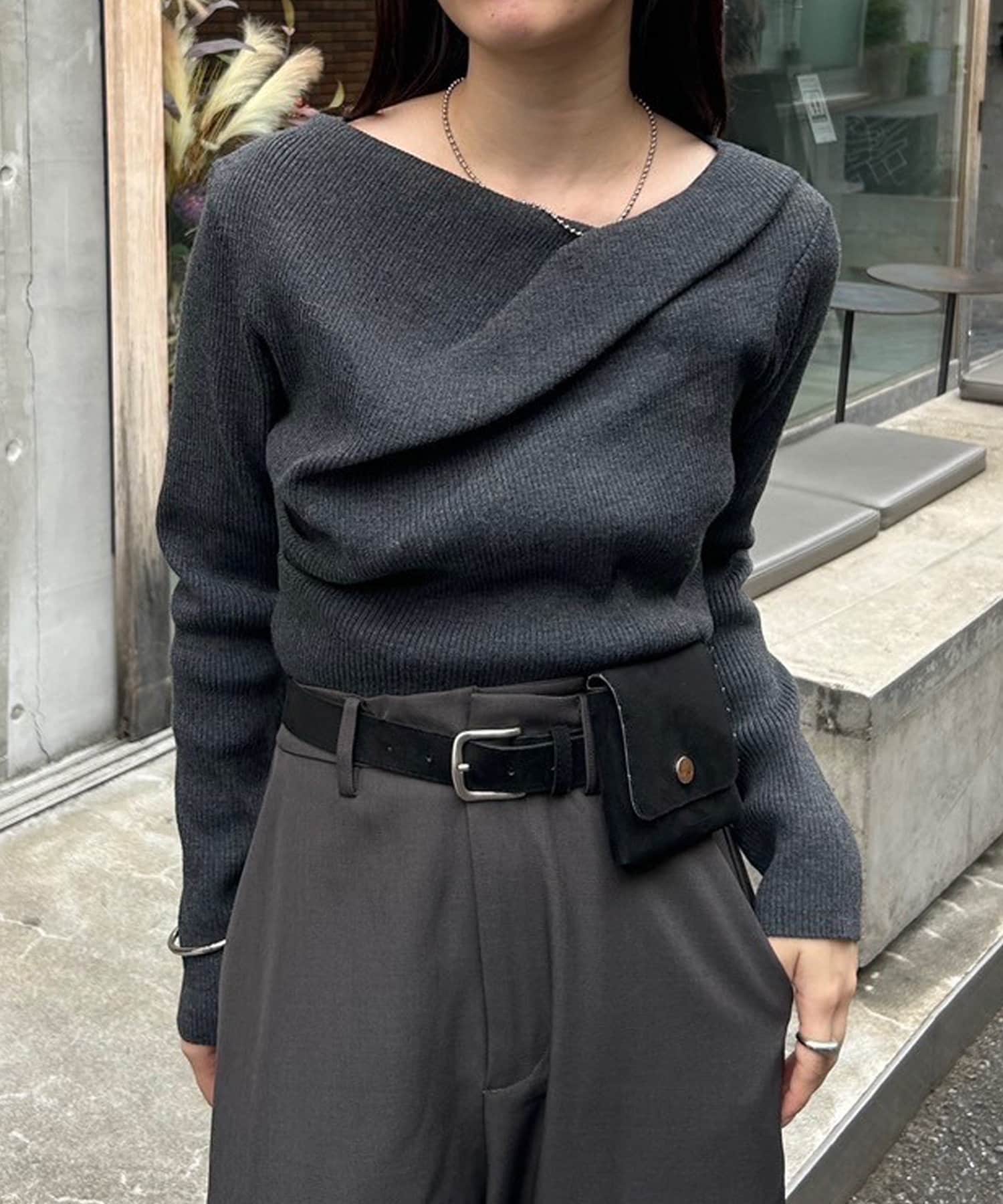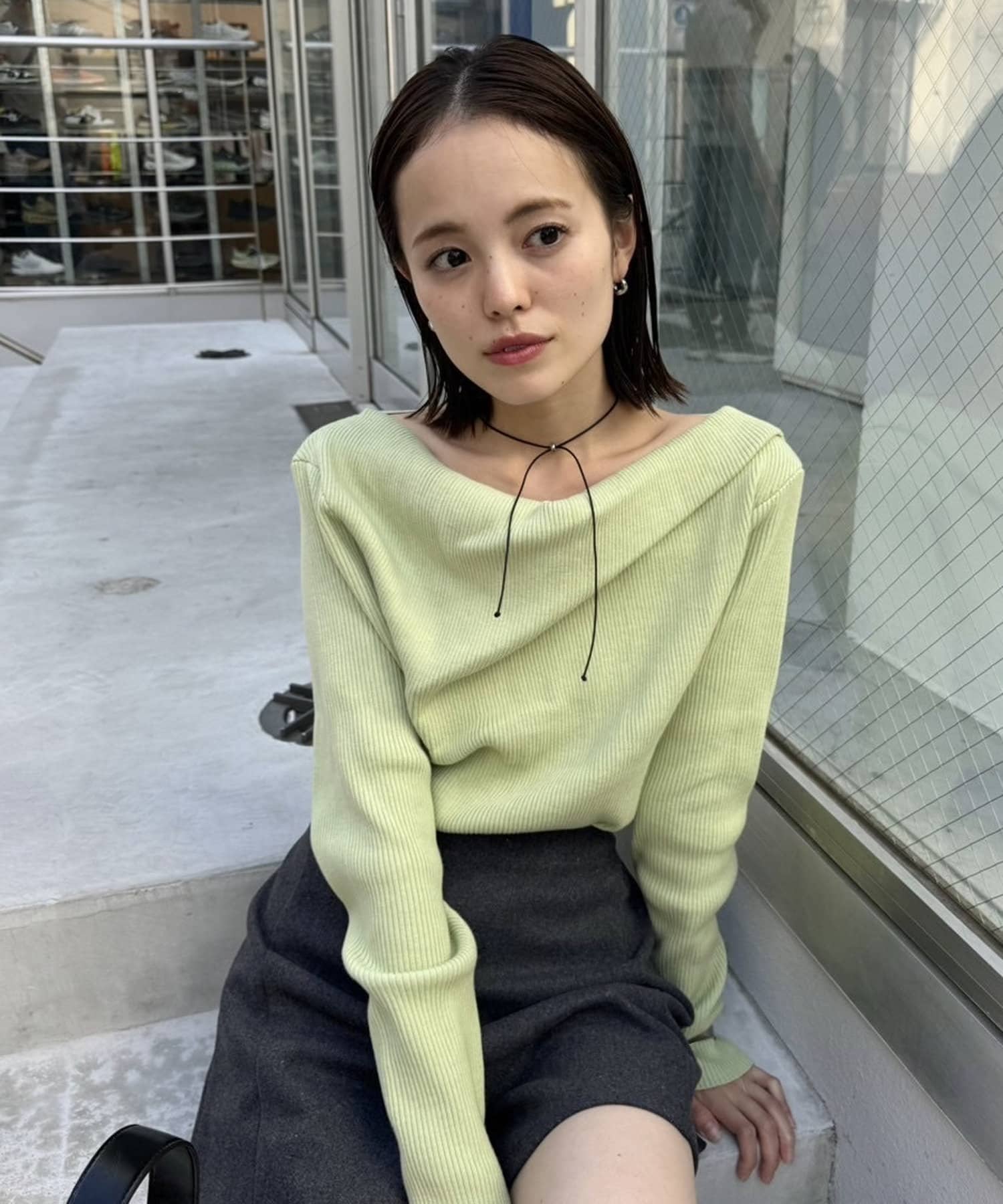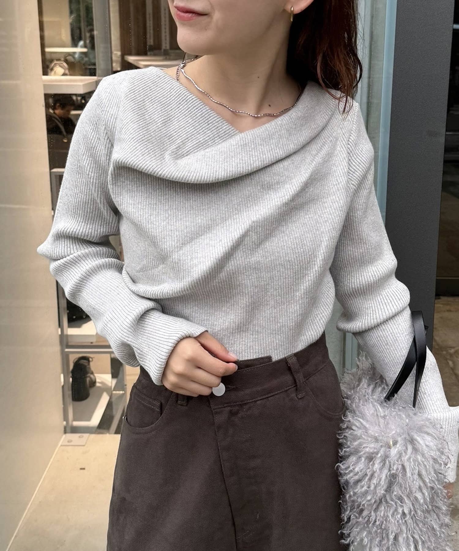 購入場所:店舗ロンTでもあった形がニットになって登場してきて即購入でした!冬が厳しい北海道でもあたたかく着れる1着だなと感じてます。鎖骨も綺麗に見せてくれるのでモテニット間違いなしです!