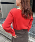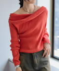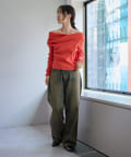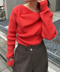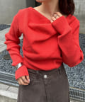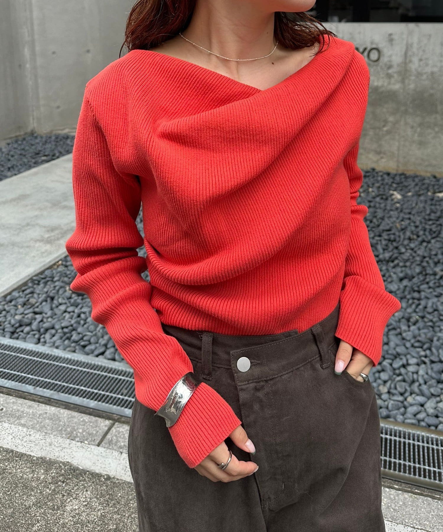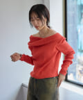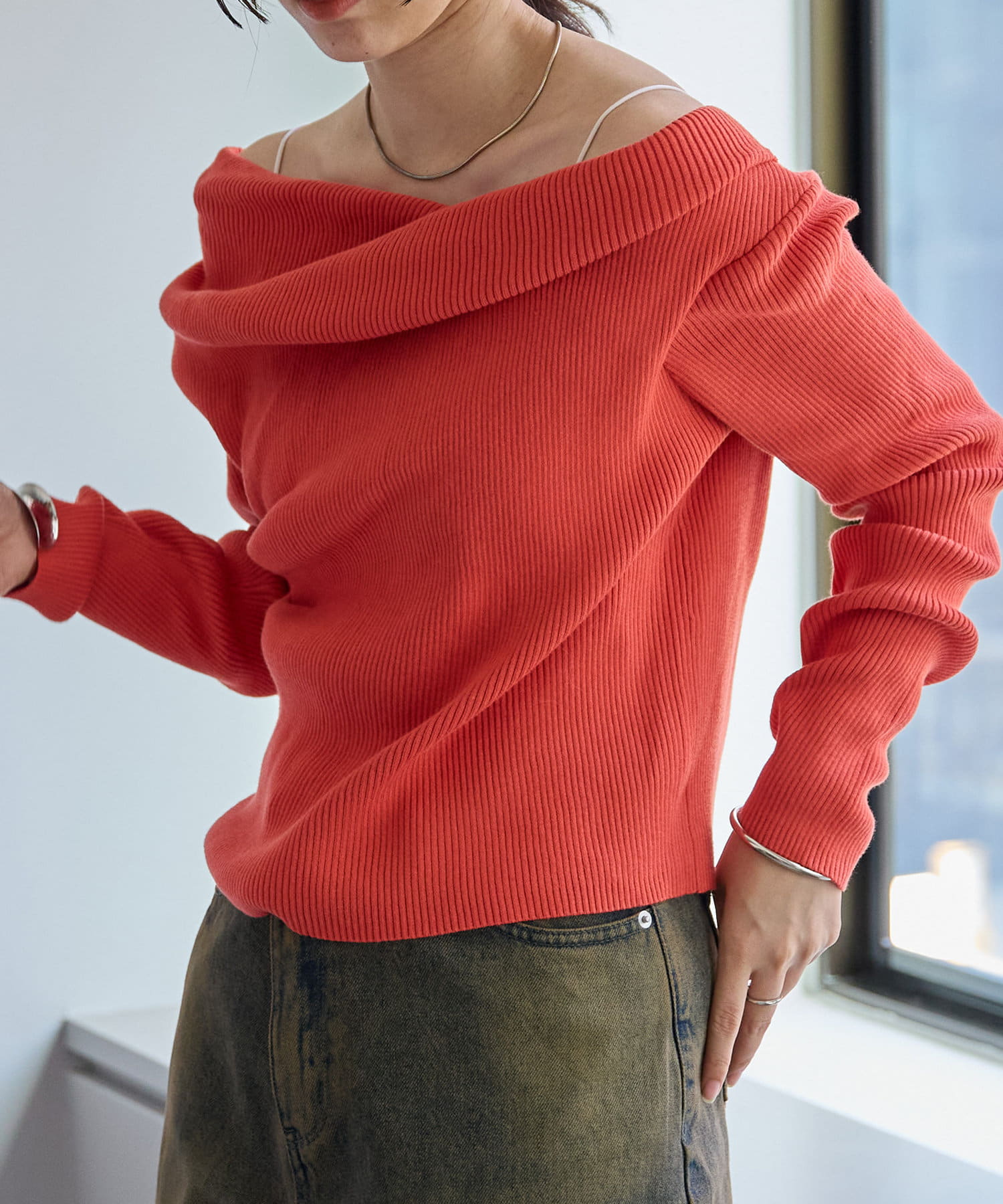 ・オフショルデザインが目を惹く女性らしい印象のリブニット。