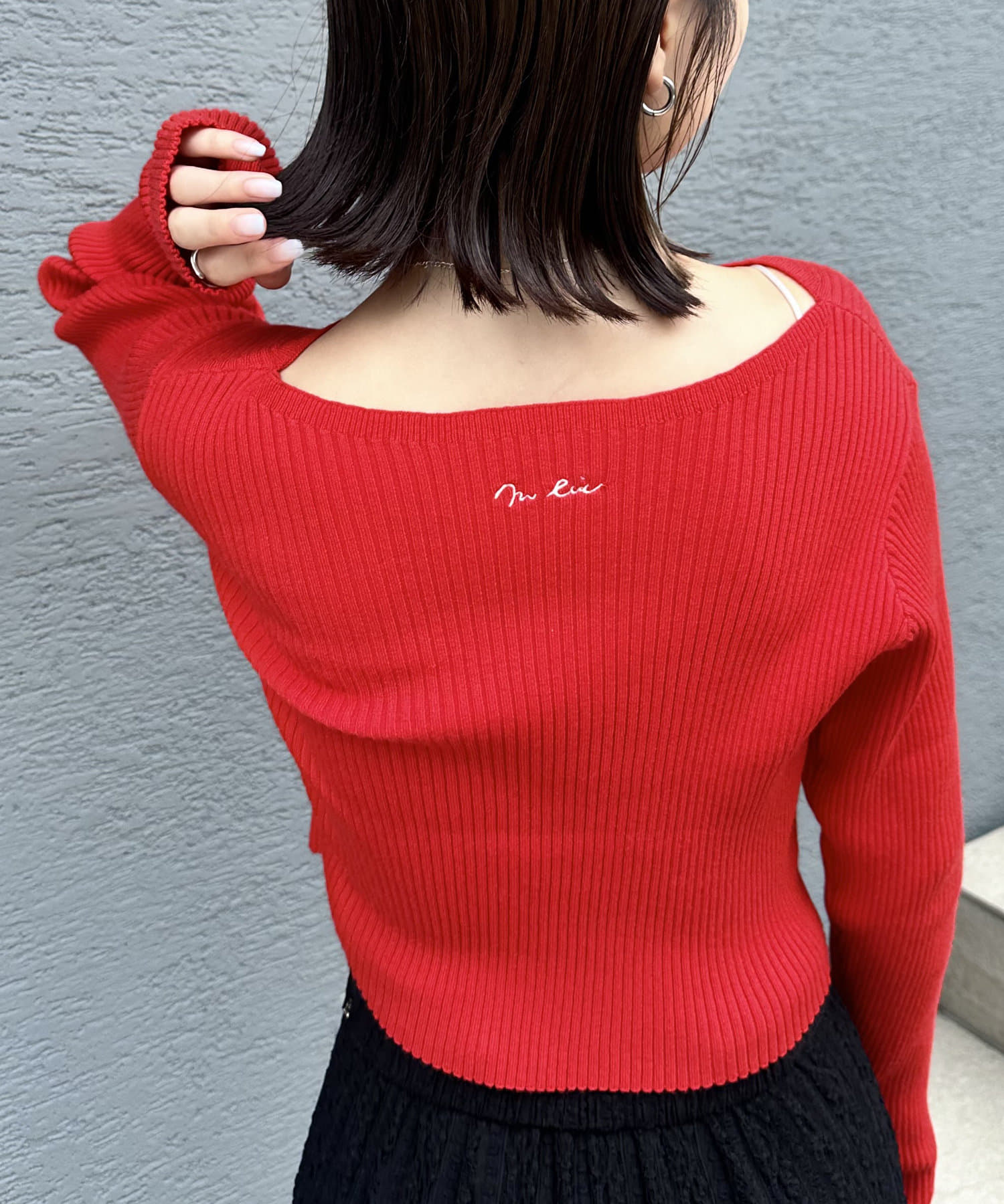 ・後ろにワンポイント[mline]ロゴ刺繍が入った可愛いニット。