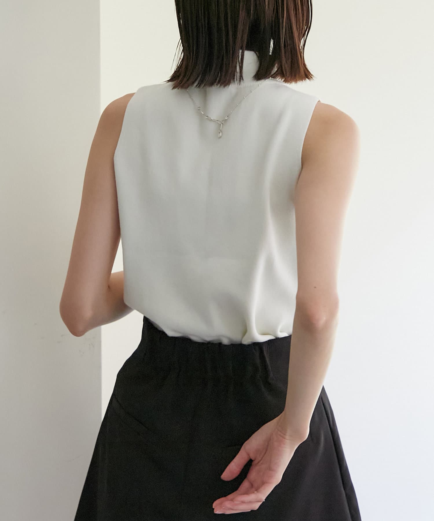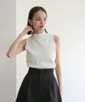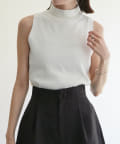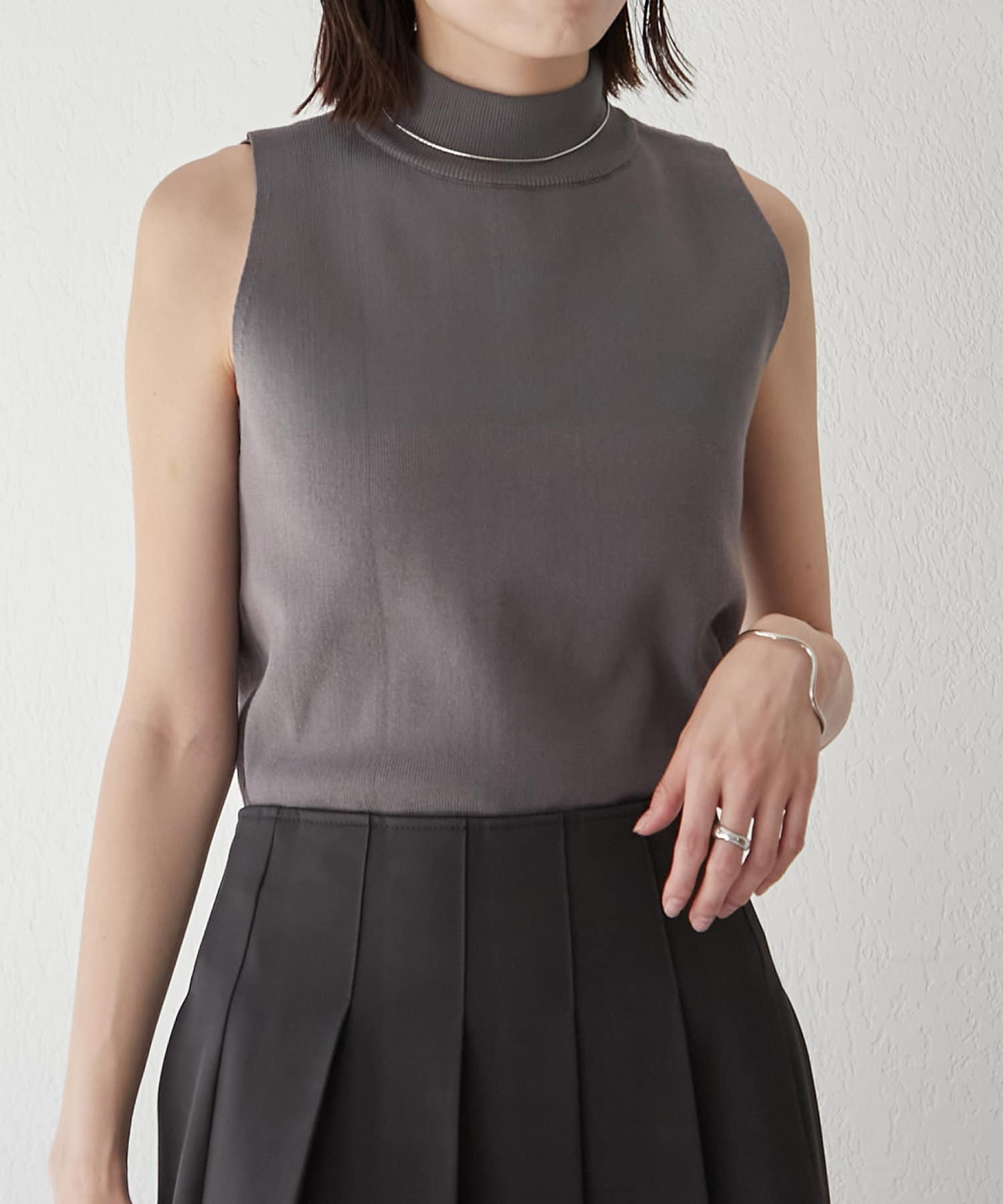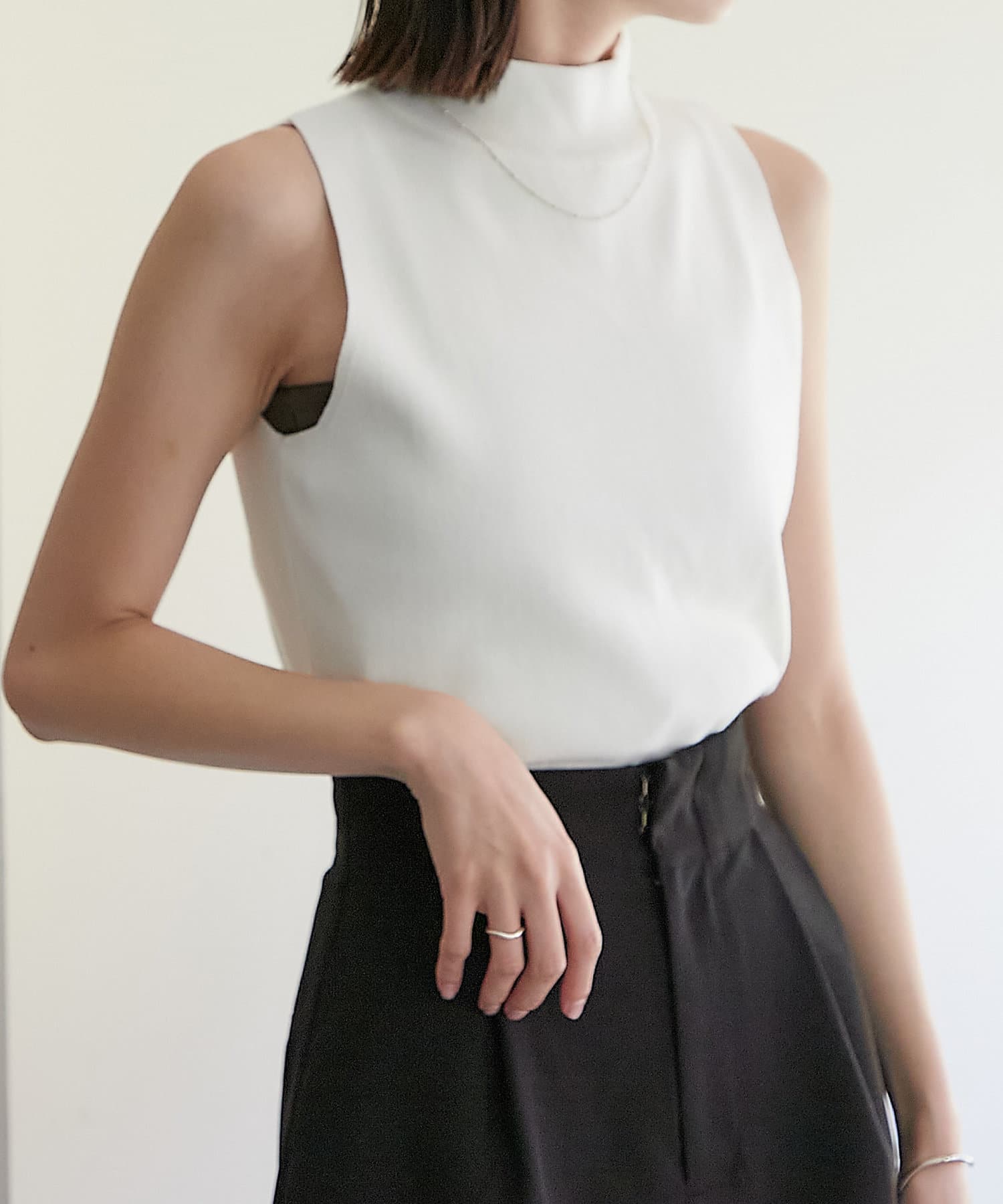 ・ハイネックと程よいタイトなシルエットが大人綺麗めな印象のノースリニット。