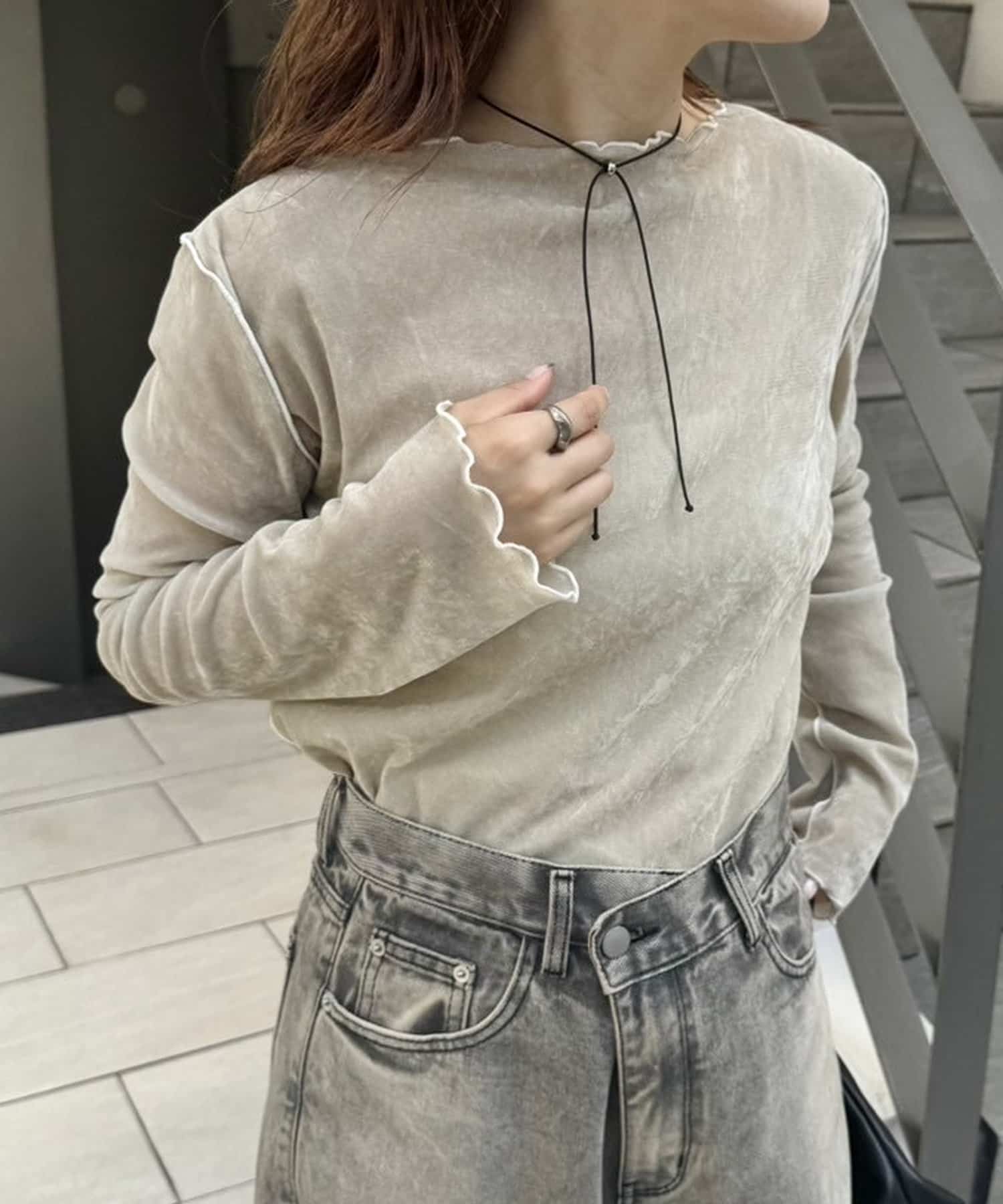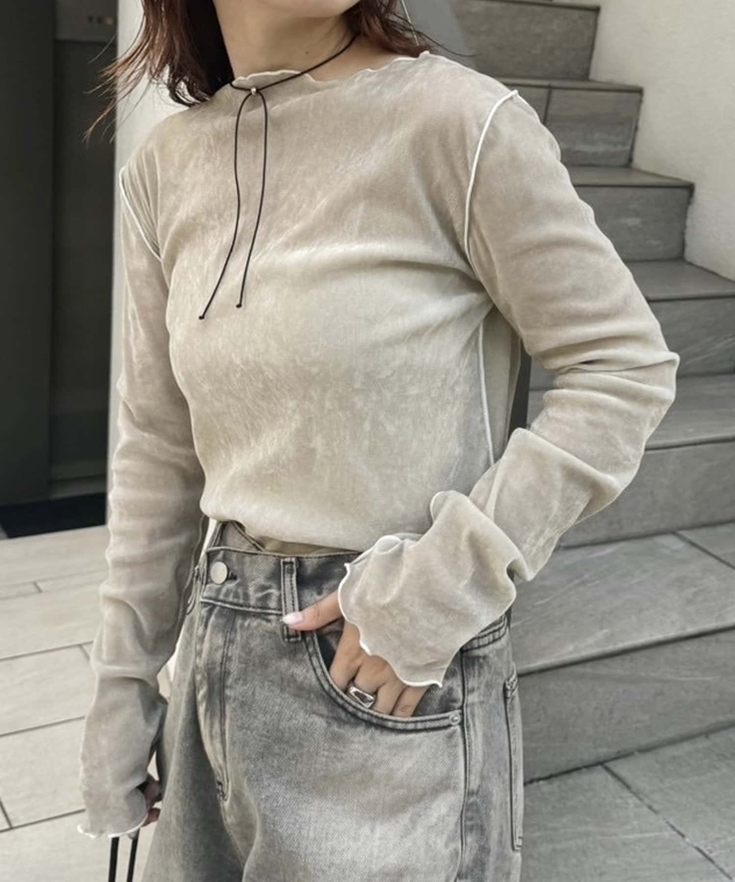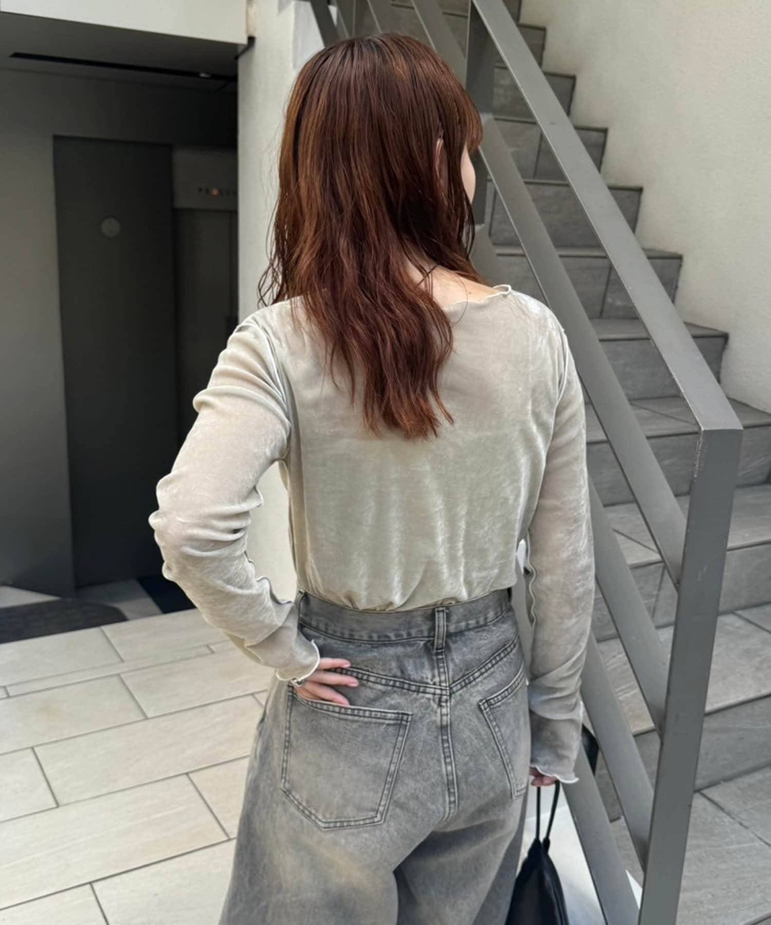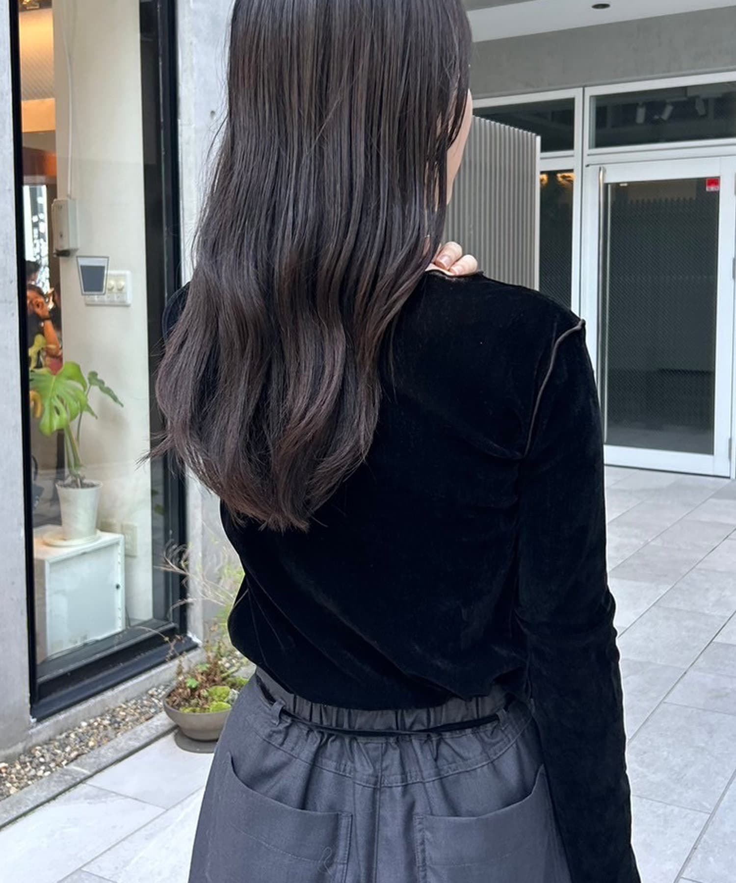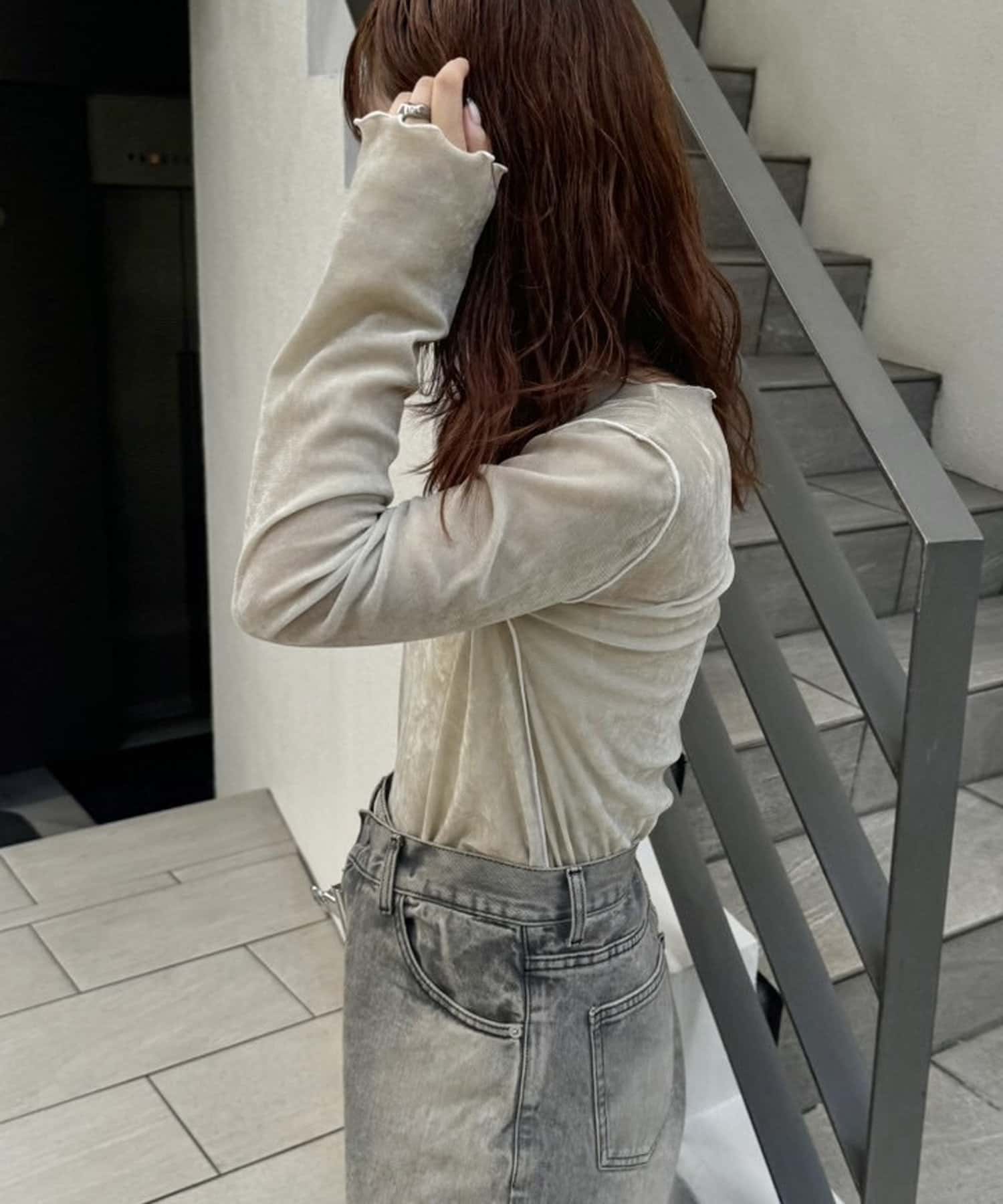 ・ベロアの表面感のある素材がトレンドライクなトップス。