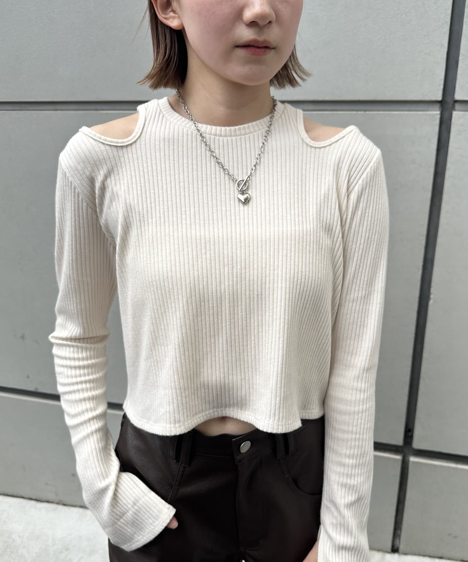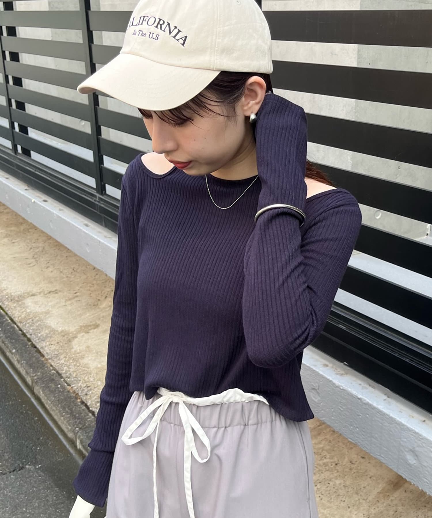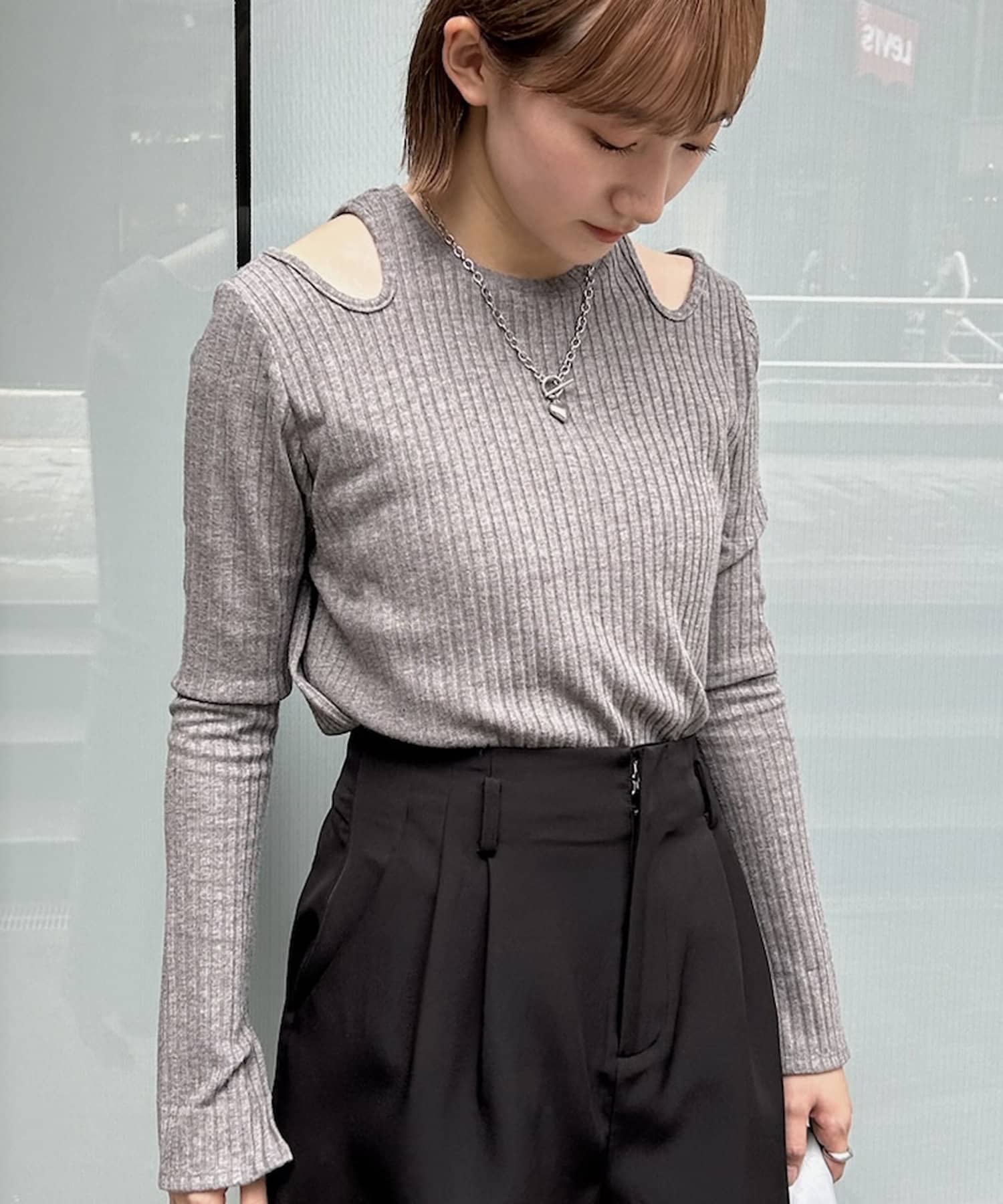 ・肩部分のアメスリデザインでほどよい肌見せを叶えてくれるトップス。