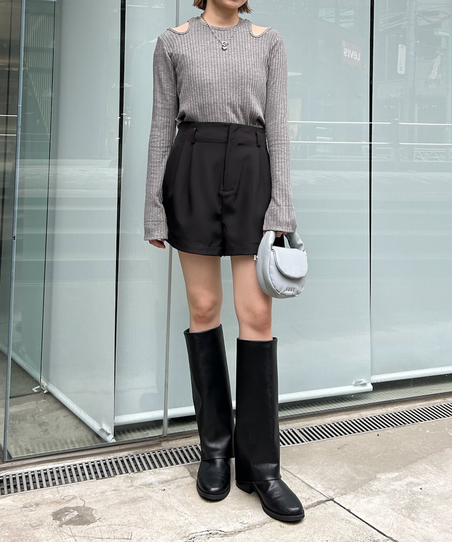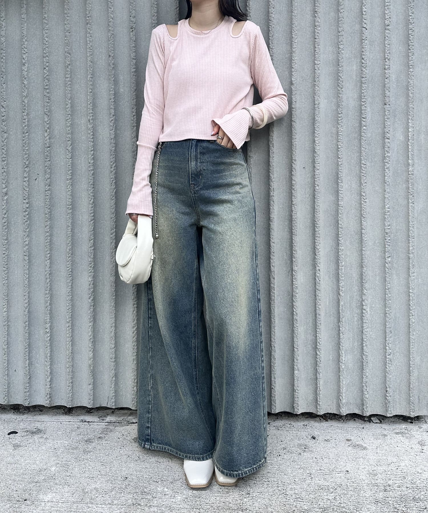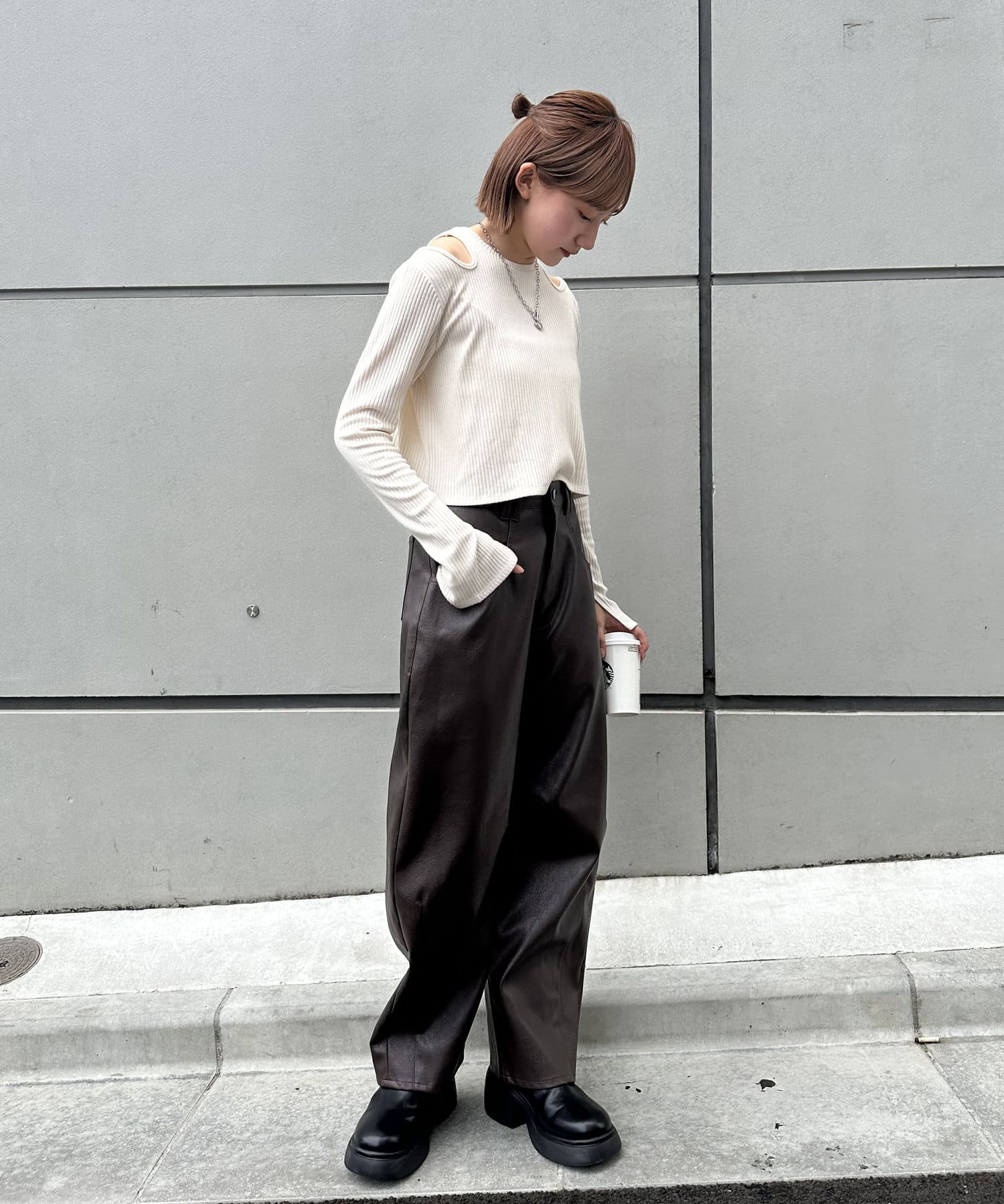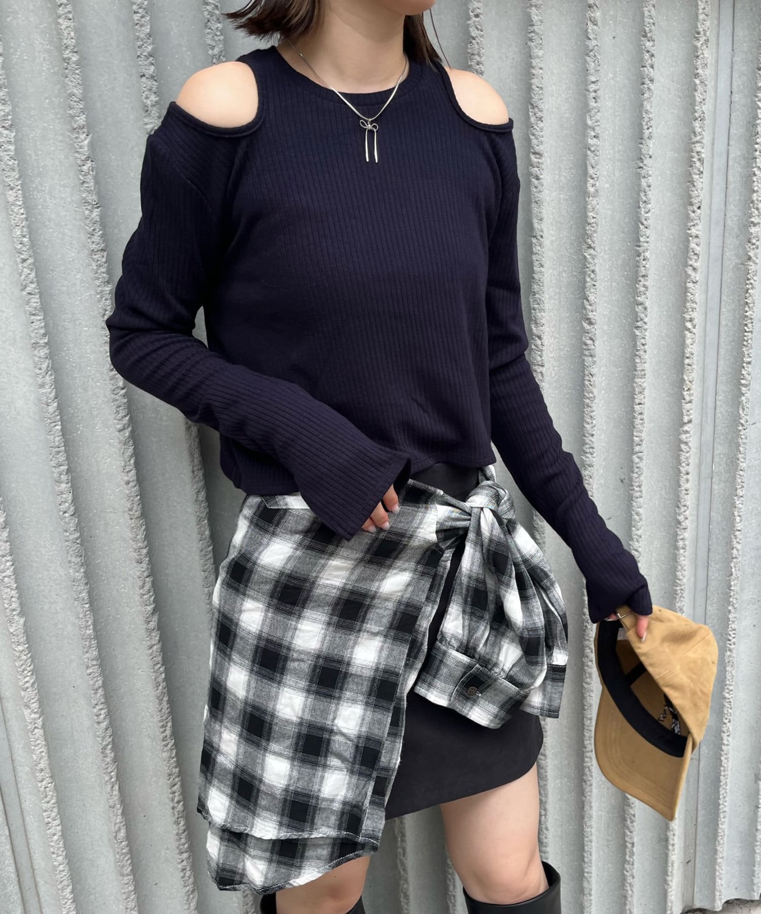 ・肩部分のアメスリデザインでほどよい肌見せを叶えてくれるトップス。