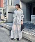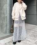 ・レースやツヤ感のあるアイテムと合わせるとカジュアル過ぎず◎