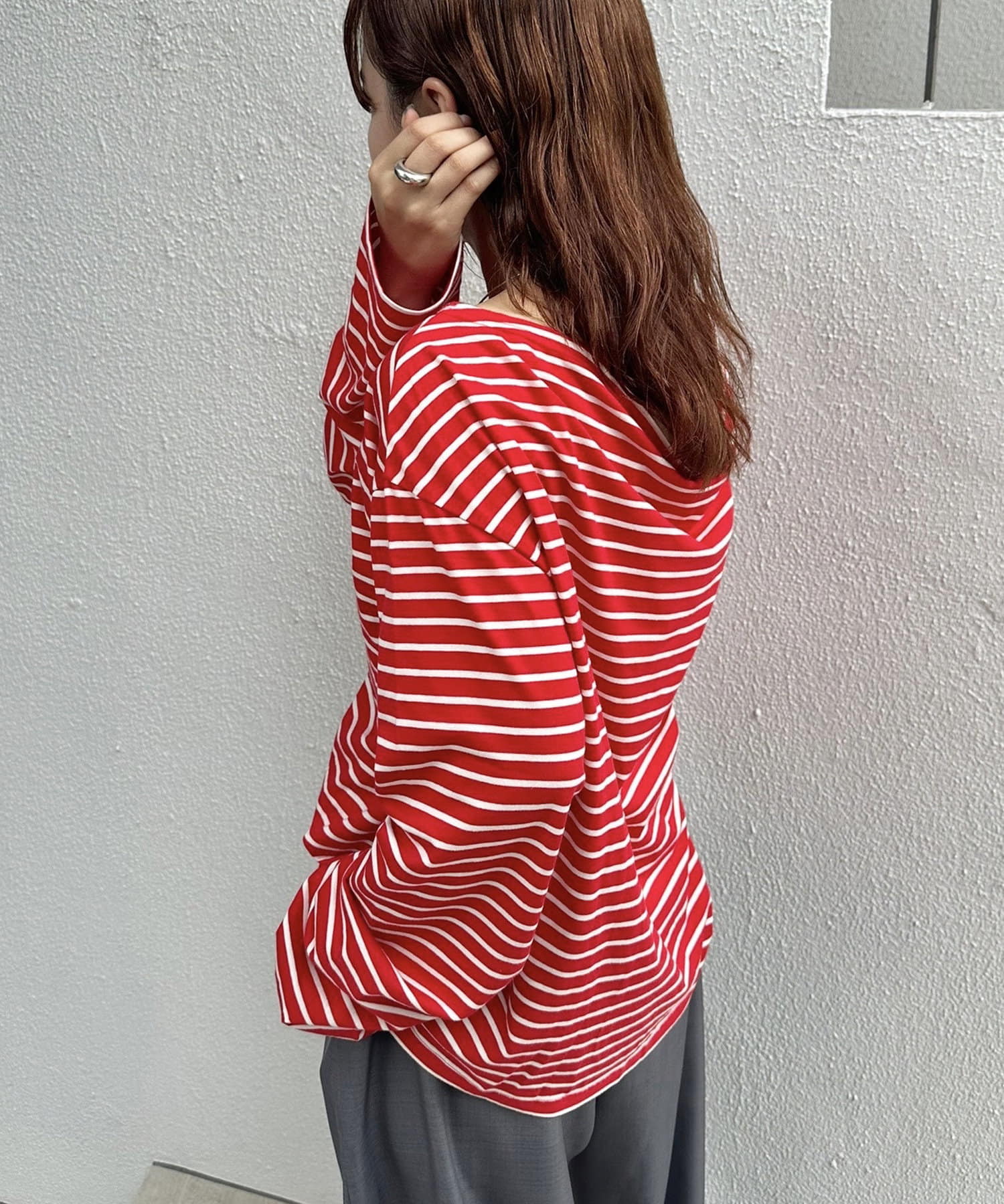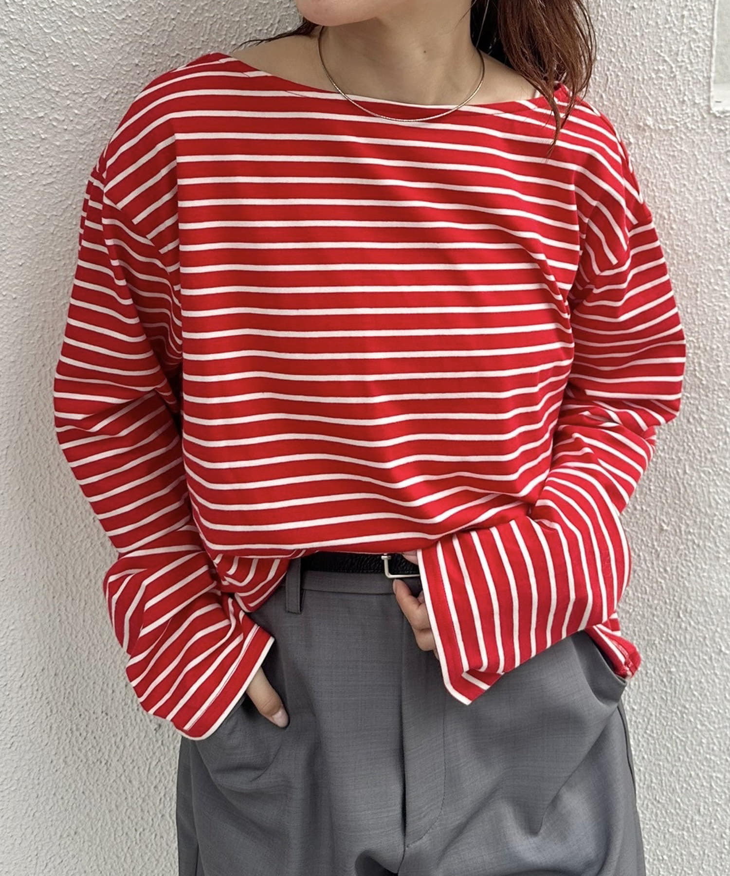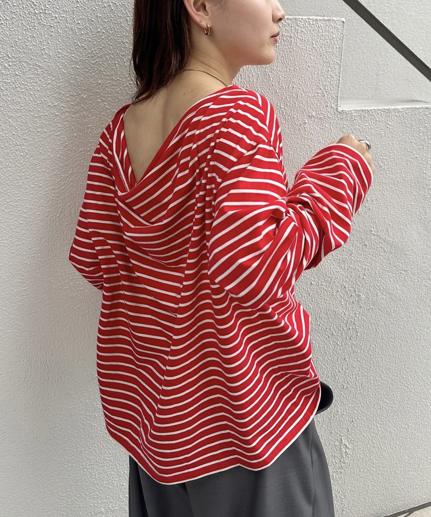 ジャケットとデニム合わせのコーデを見て、欲しくて店頭まで見に行きました!背中と肩まわりの開き具合が最高です!ボーダーでカジュアルですが、女性らしさのあるデザインなのでキレイめにも着れます。