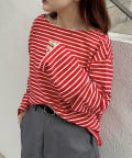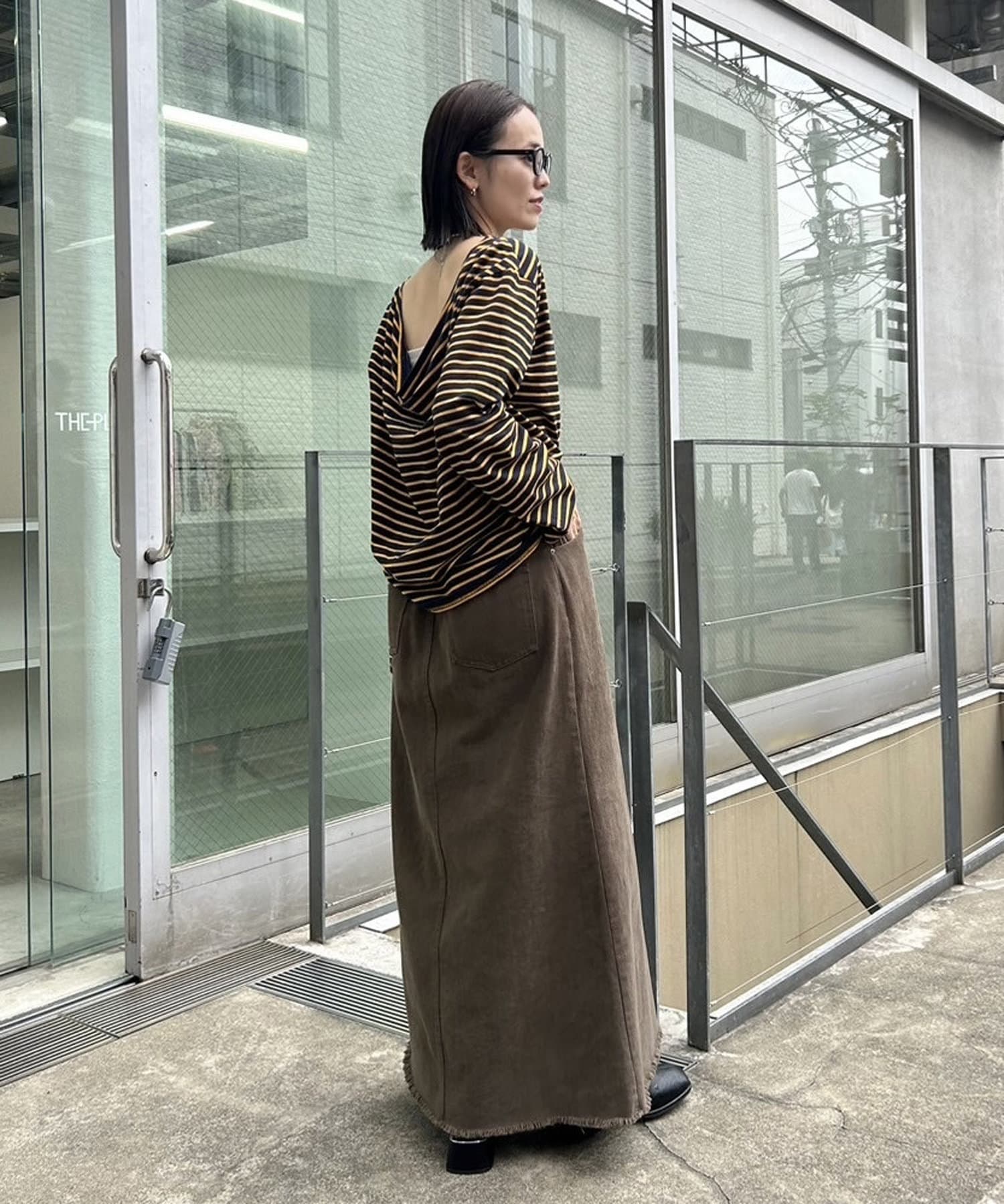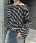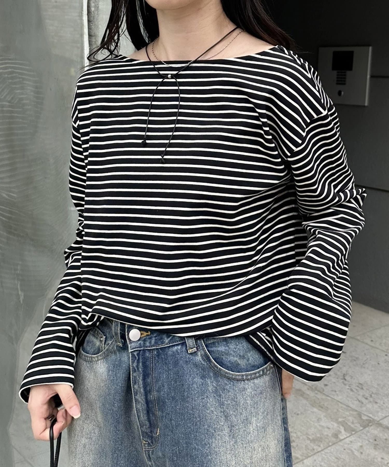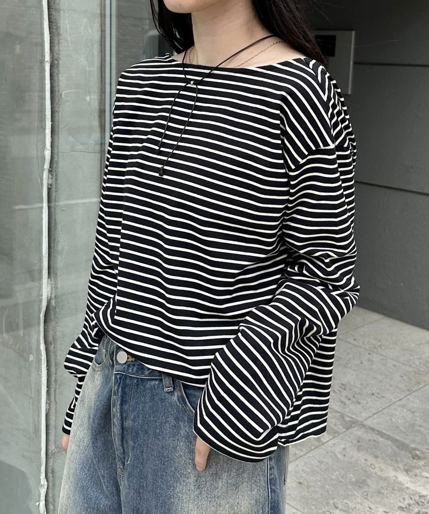 ジャケットとデニム合わせのコーデを見て、欲しくて店頭まで見に行きました!背中と肩まわりの開き具合が最高です!ボーダーでカジュアルですが、女性らしさのあるデザインなのでキレイめにも着れます。