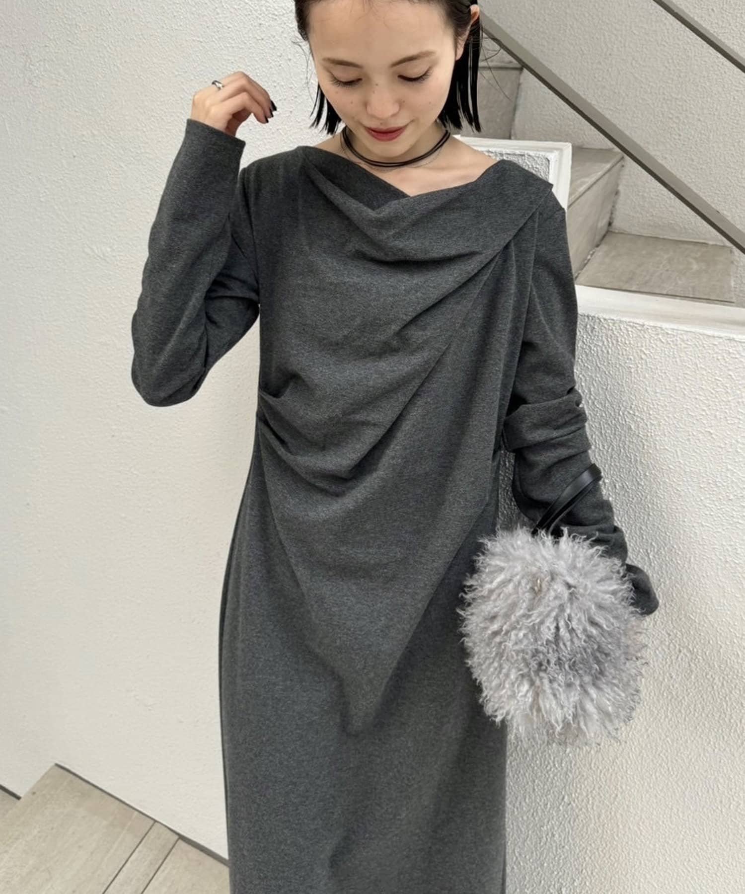 ・首回りのデザインがアクセントになり一枚で決めてくれるワンピース。