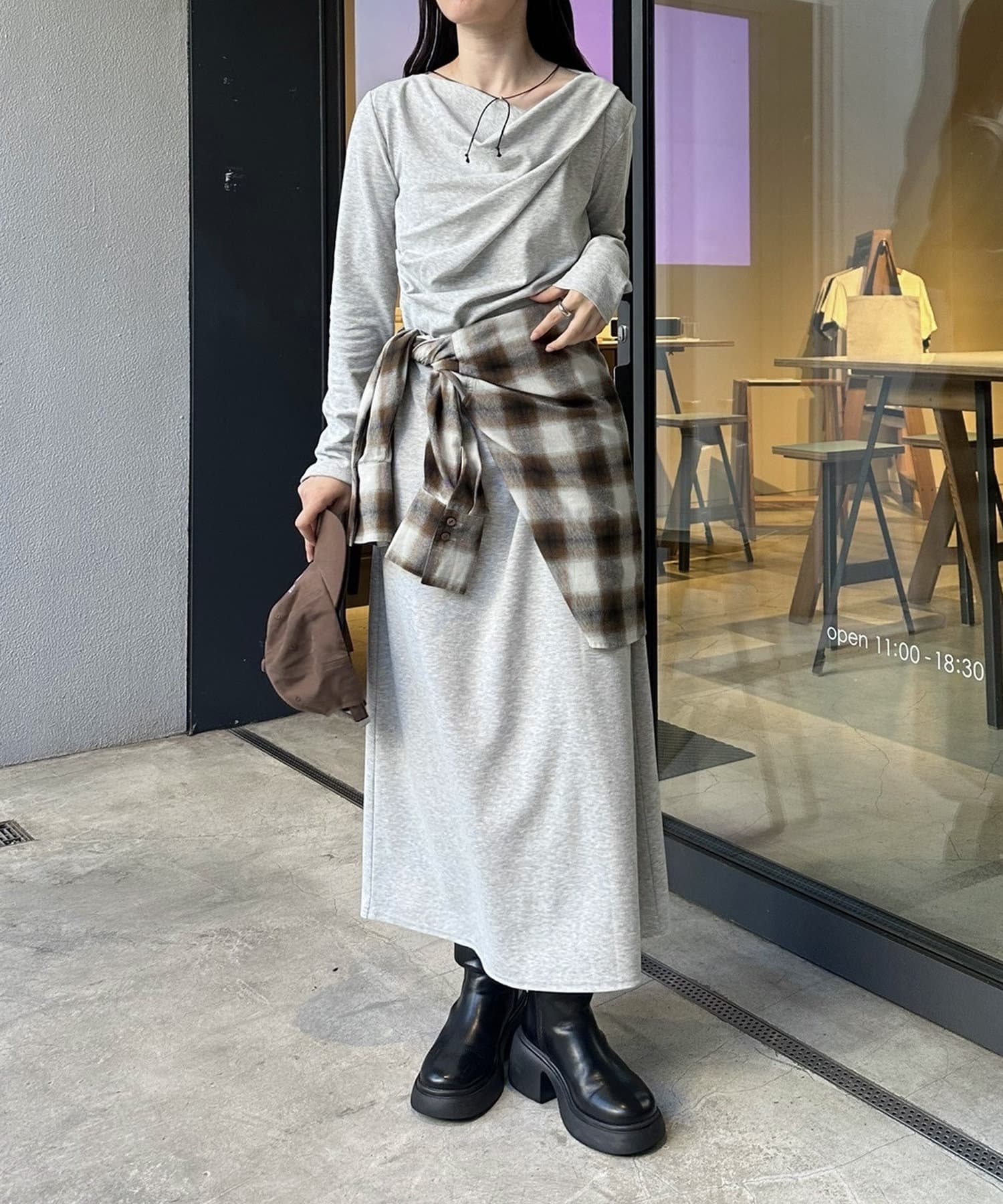 ・スニーカー合わせからパンプスまで、足元で印象を変えて着ていただくのがおすすめ。