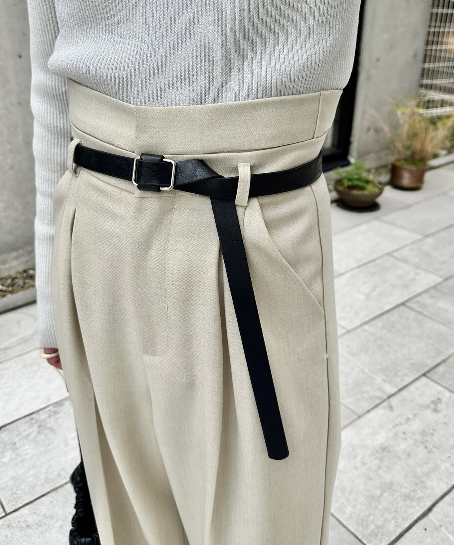 ・ベルトは穴がなくフリーサイズになっているので、やや厚めのニットもタックインしやすくなっております。