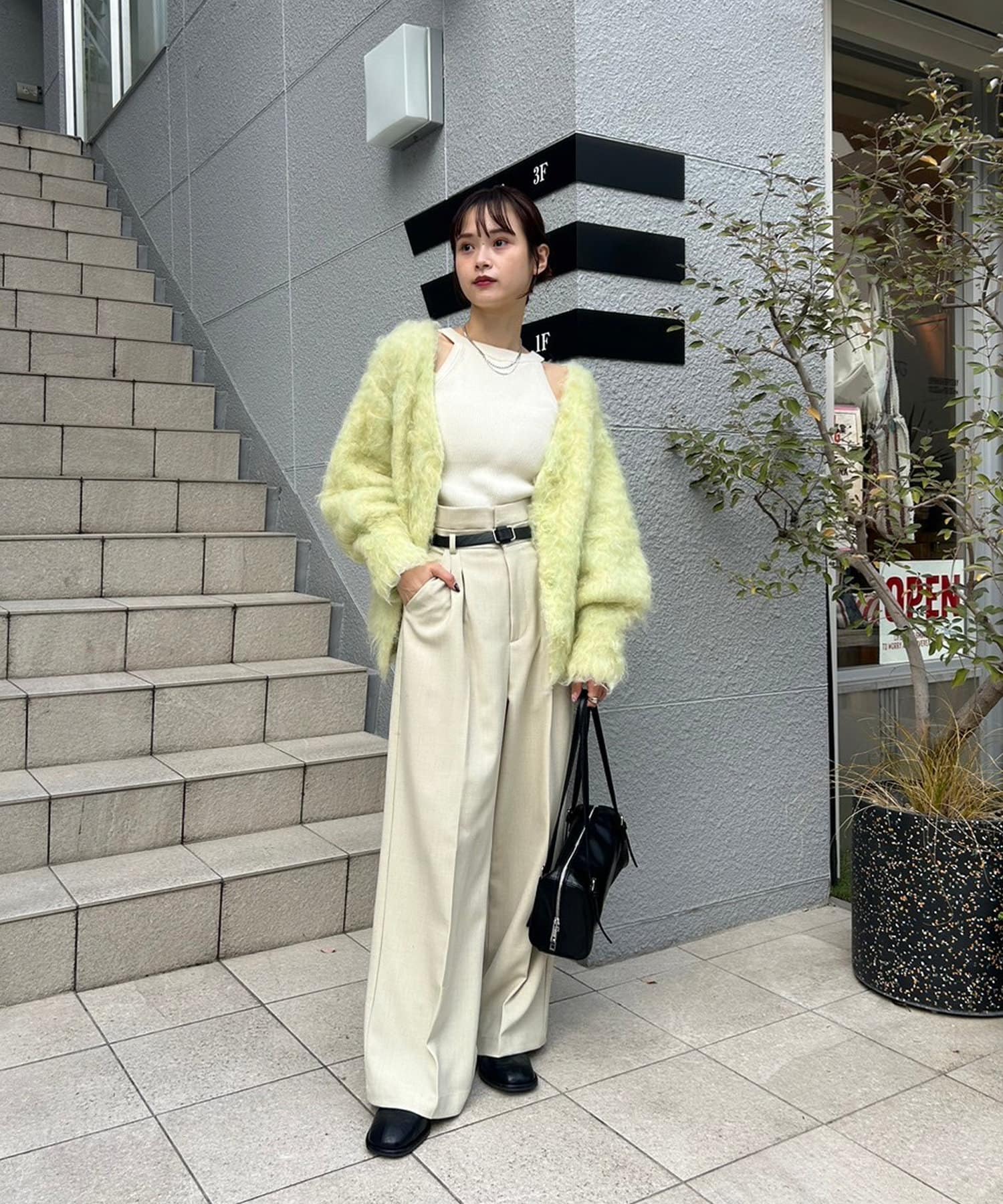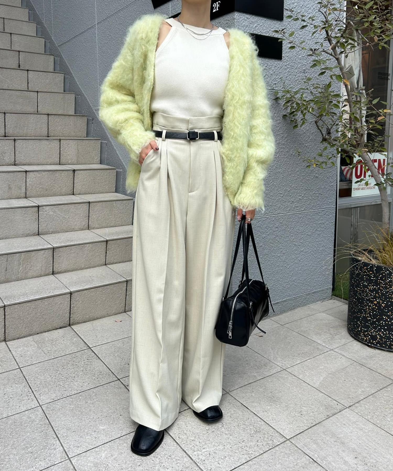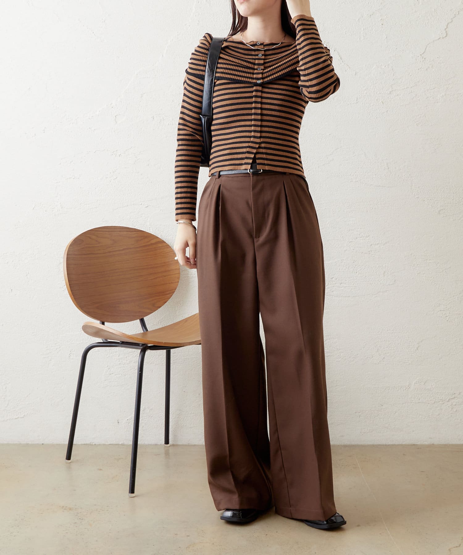 ・ハイウエストなボトムに、タックが入ったより美脚見えする1枚。