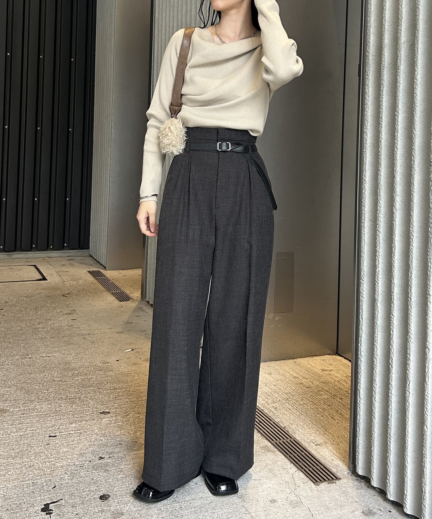 購入場所:パルクローゼットタックが入っているので脚が細く見えるうえに、ハイウエストなので脚長効果も抜群です!