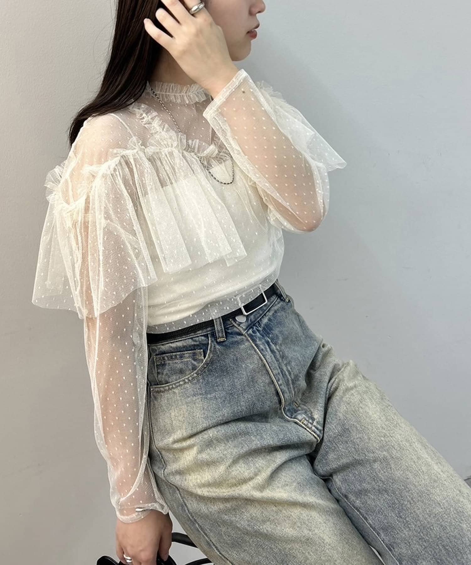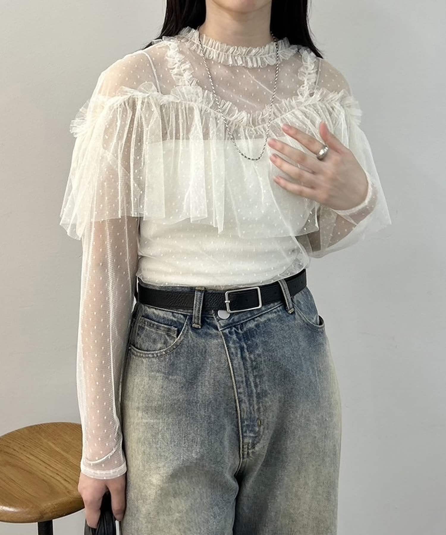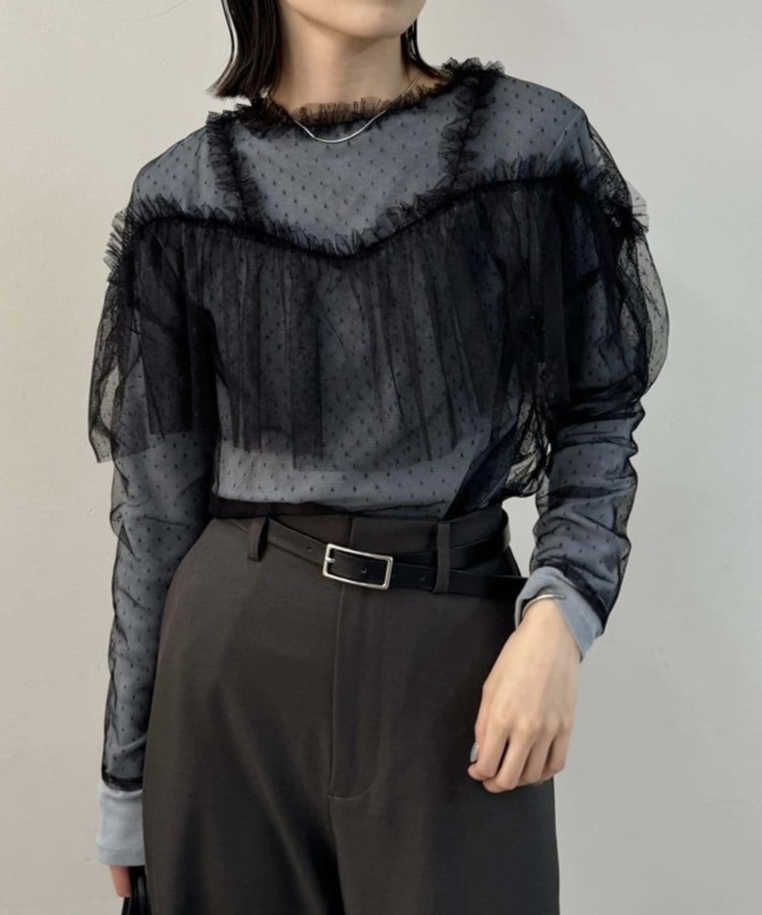 ドットチュールブラウス