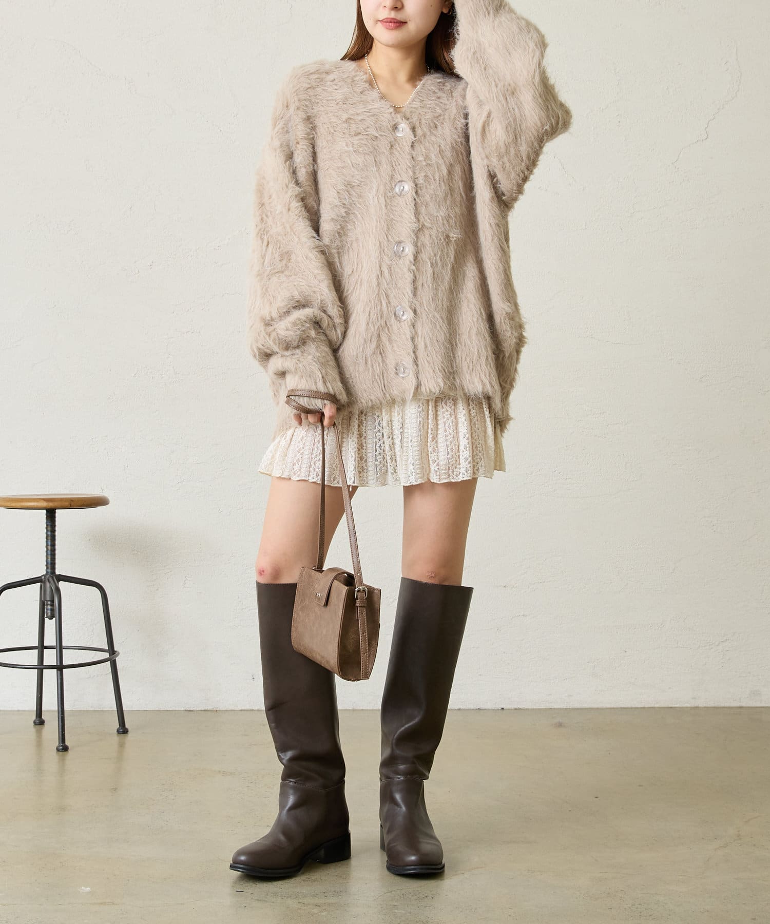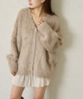 ・表面感のある柔らかなシャギーが目を惹く華やかなカーディガン。