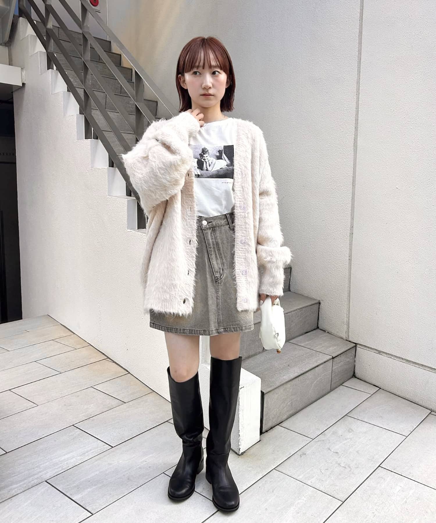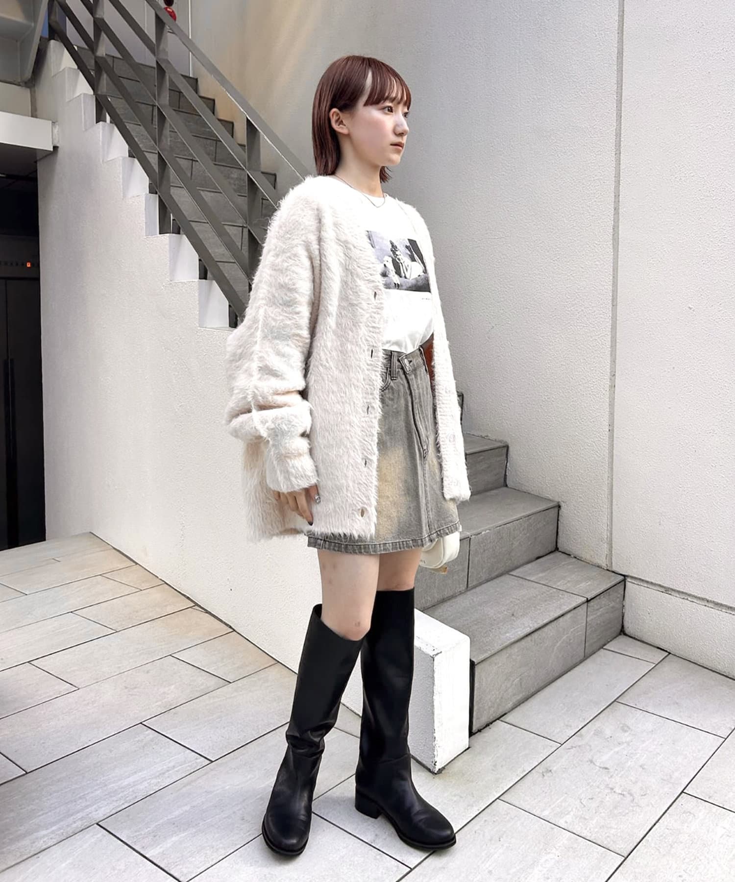 ・ミニ丈ボトムスとロングブーツ合わせでトレンドな着こなしに◎