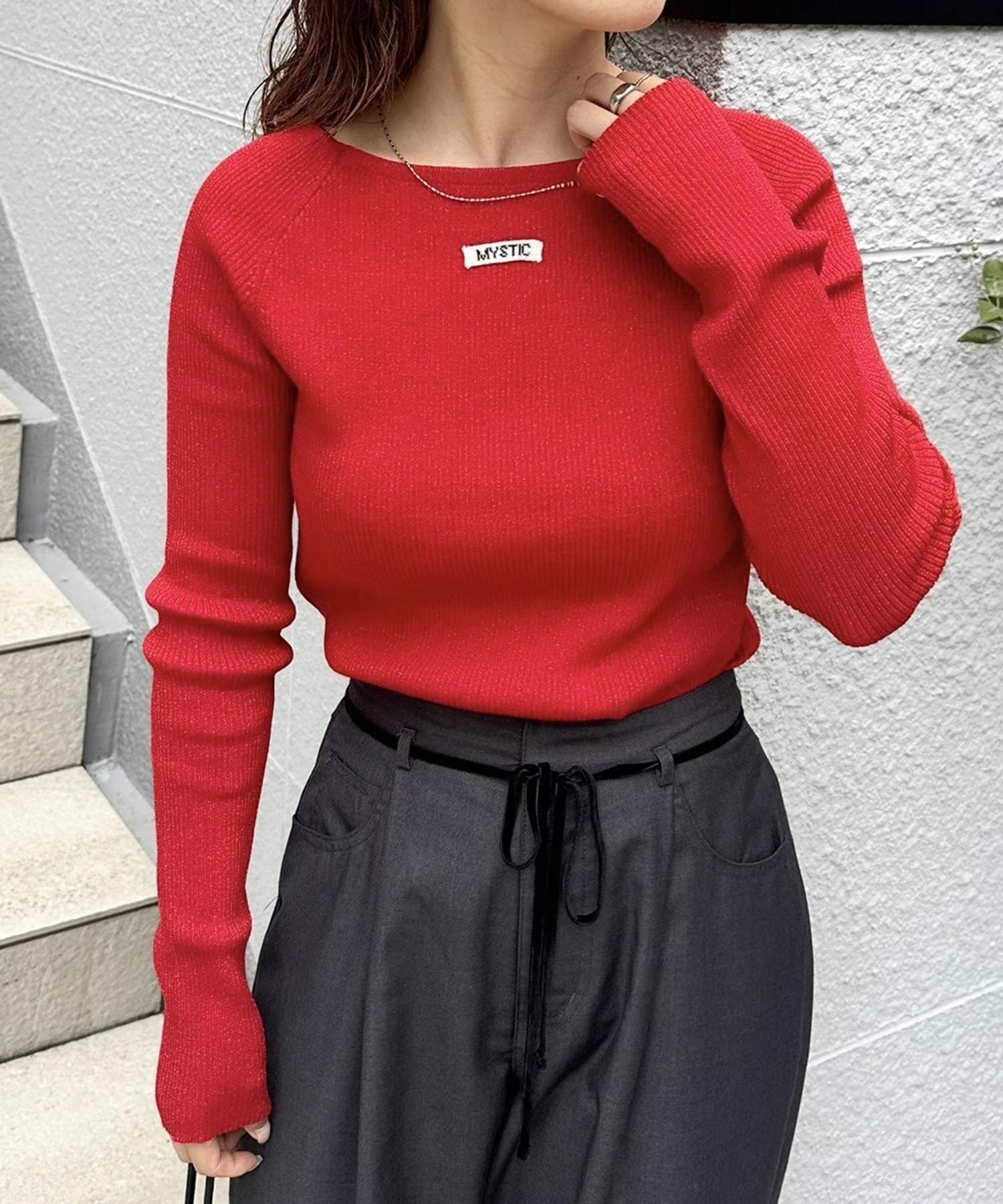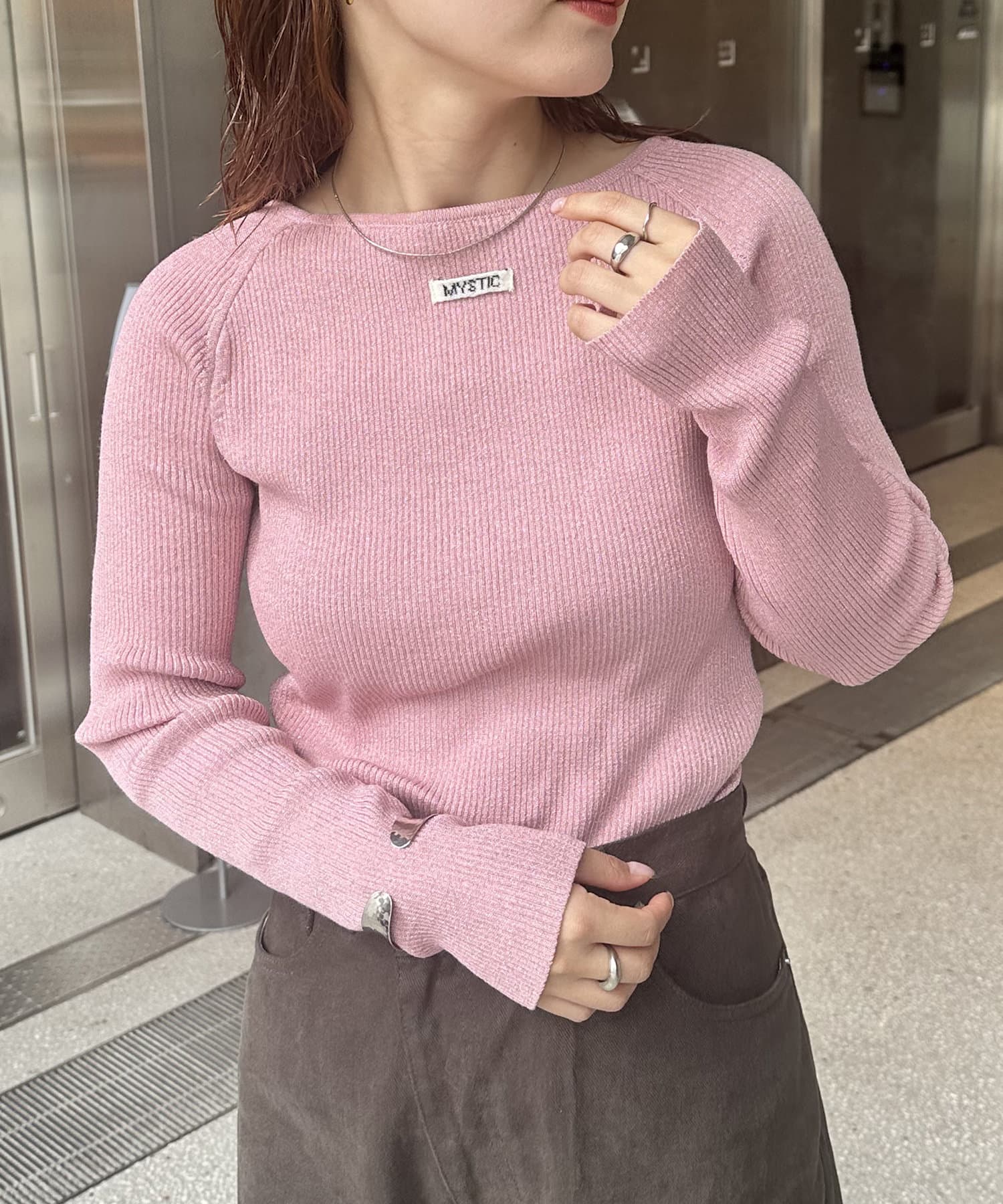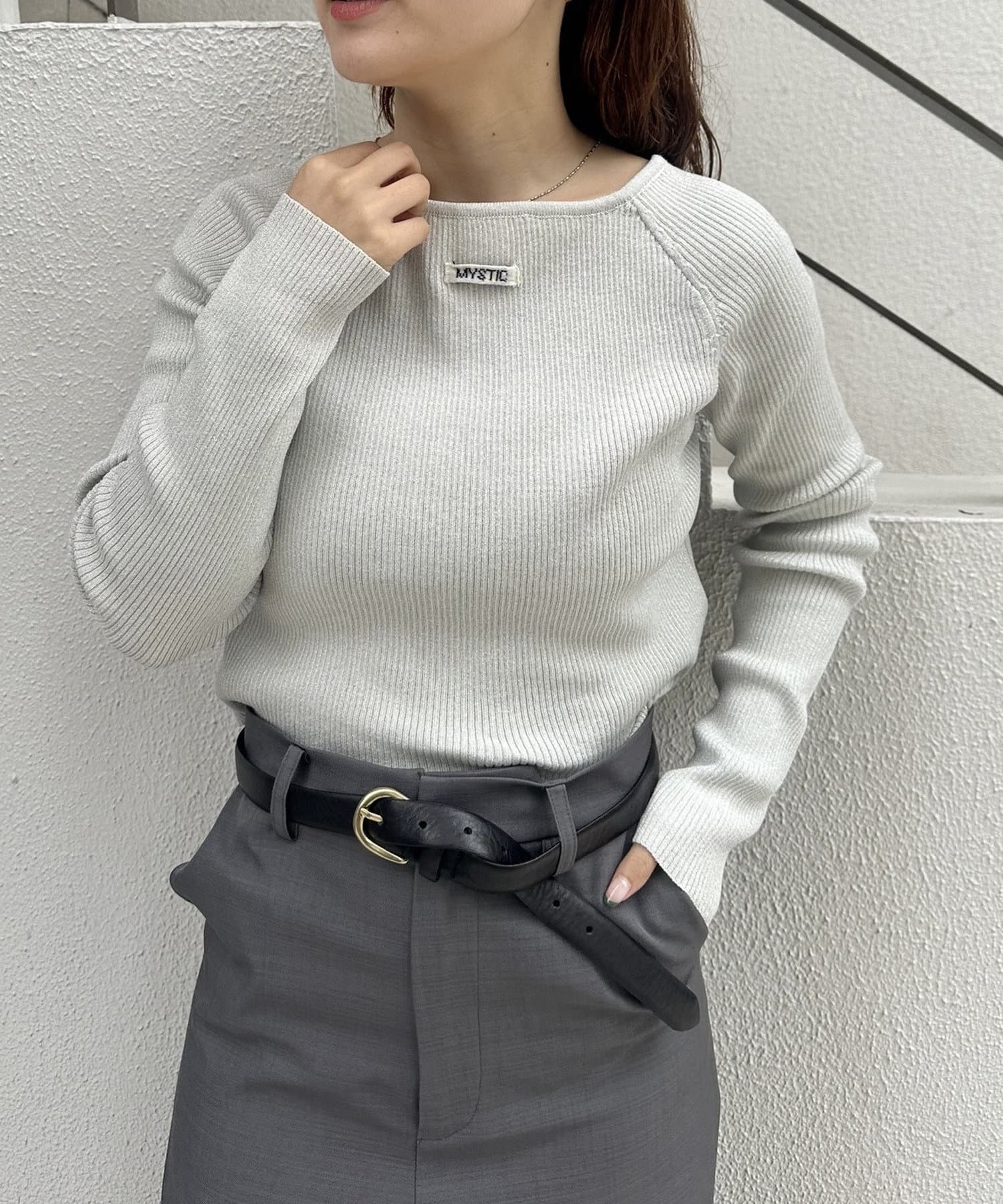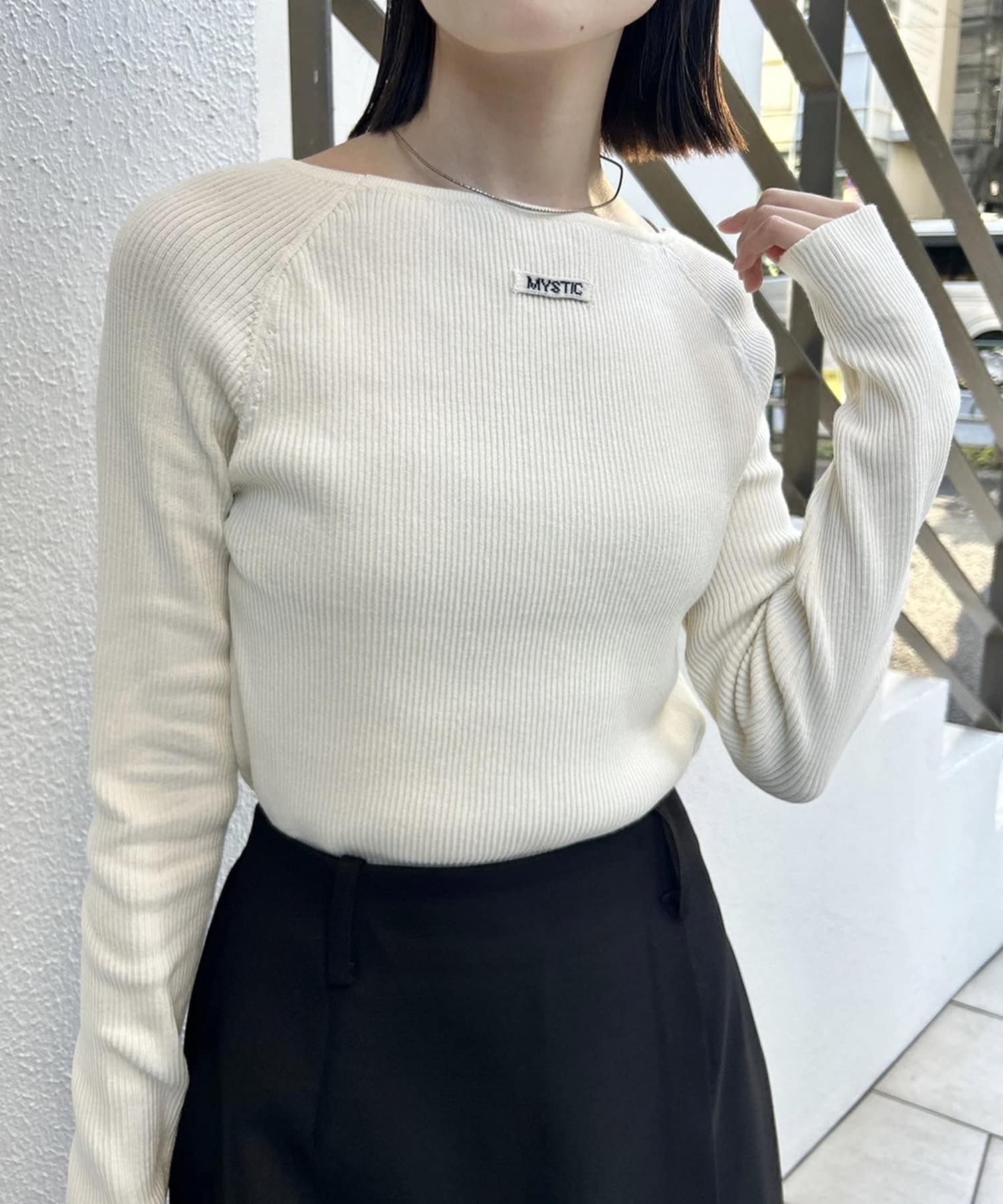 ・襟元に【mystic】のロゴ入りのタグが付いたトレンドライクなトップスが登場!