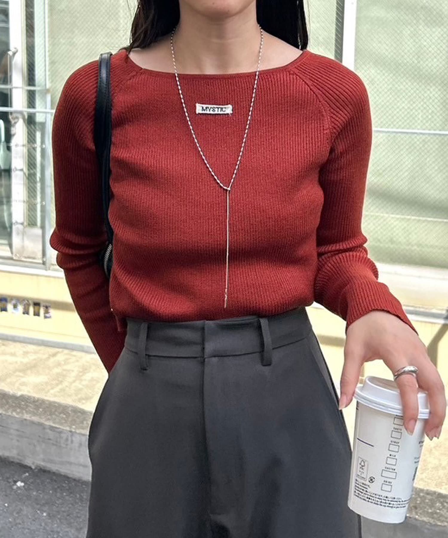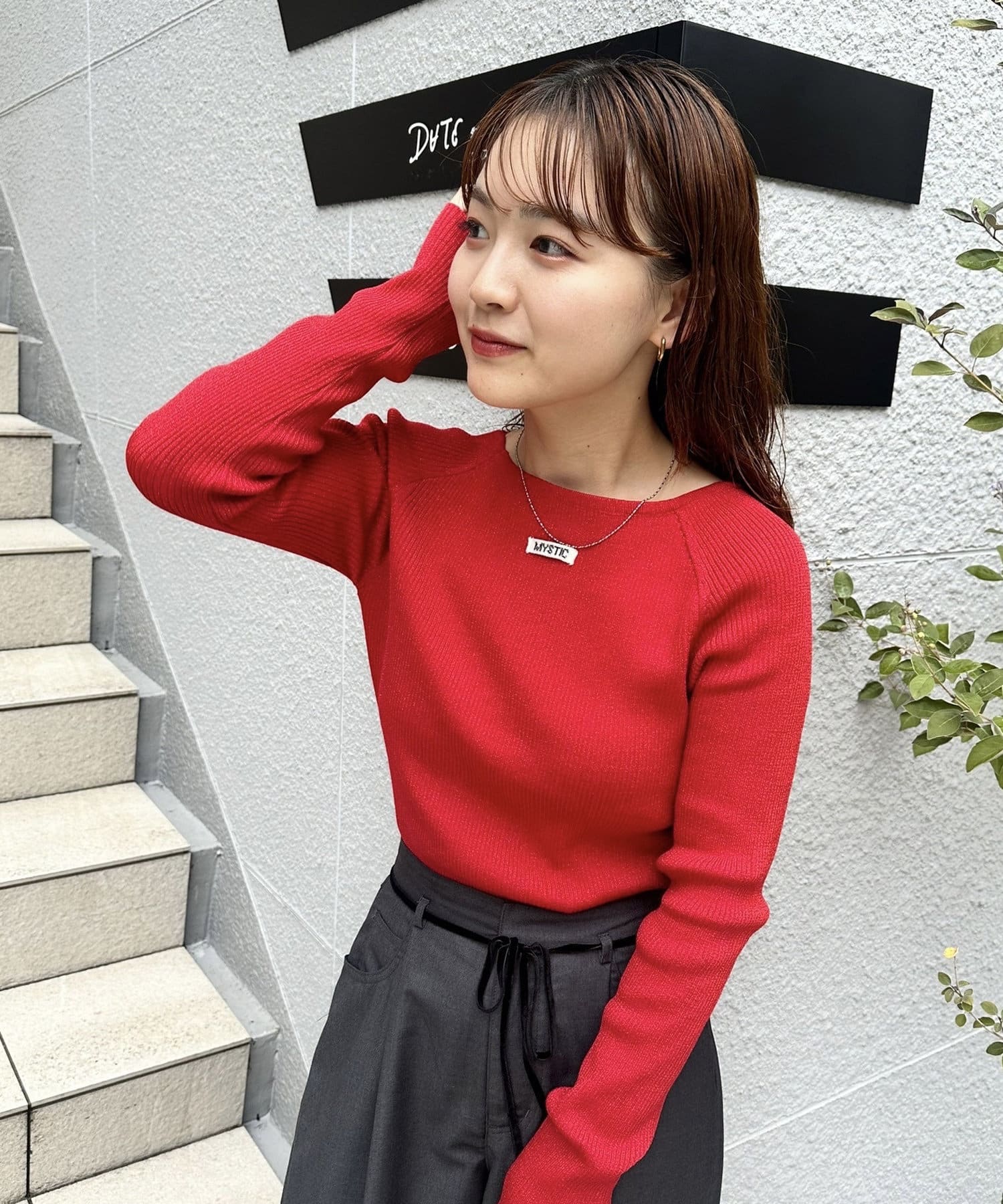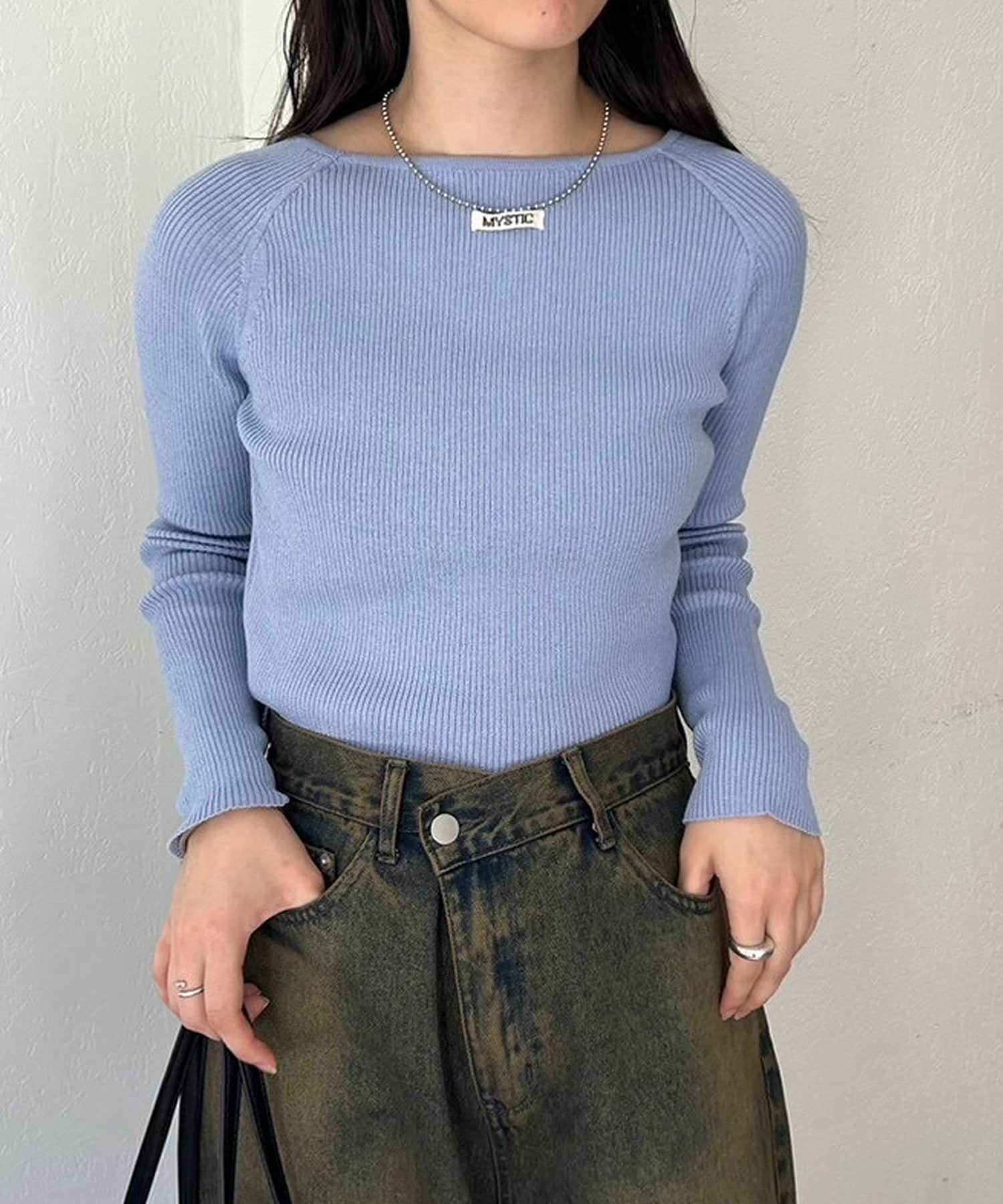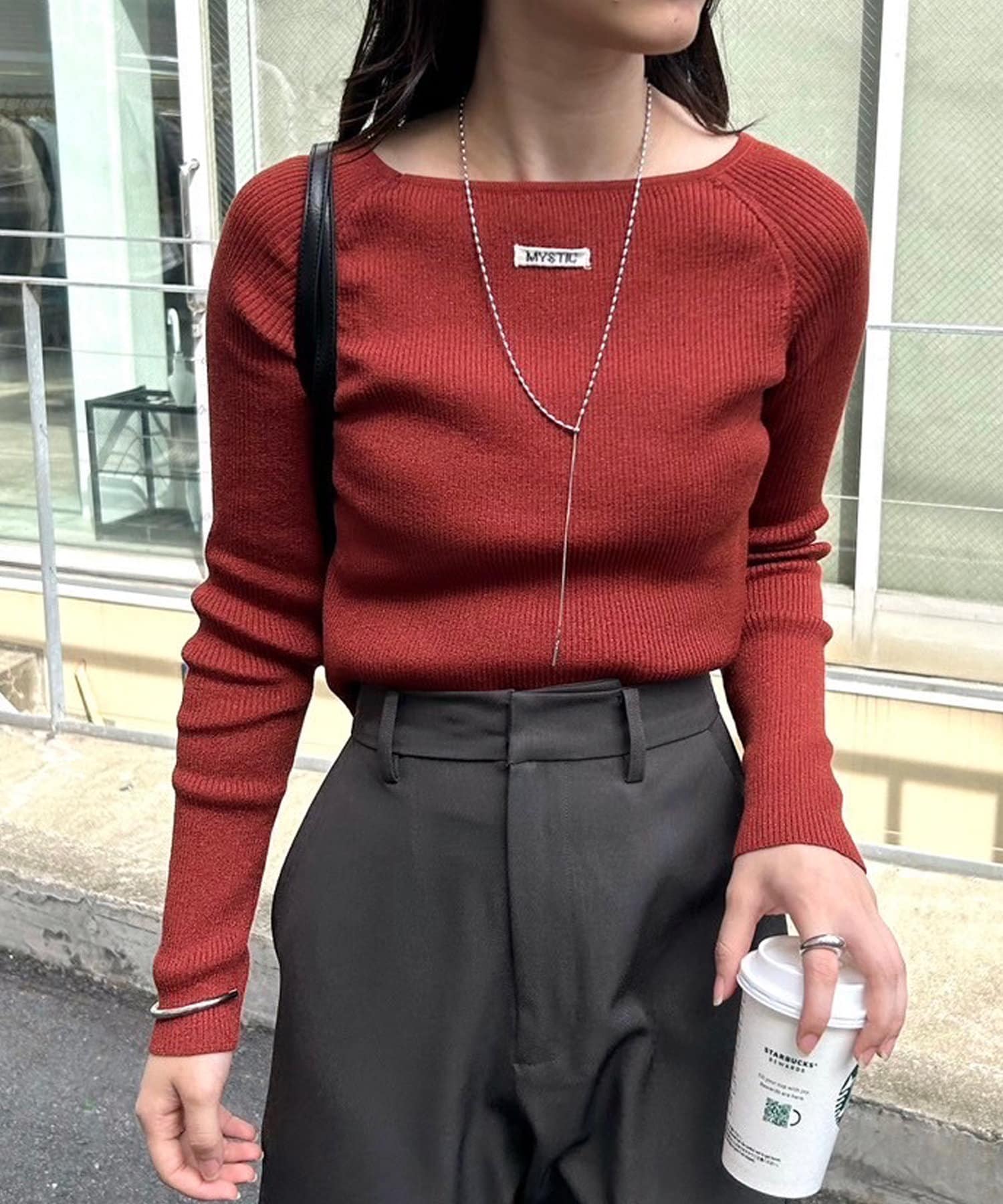 ・襟元に【mystic】のロゴ入りのタグが付いたトレンドライクなトップスが登場!