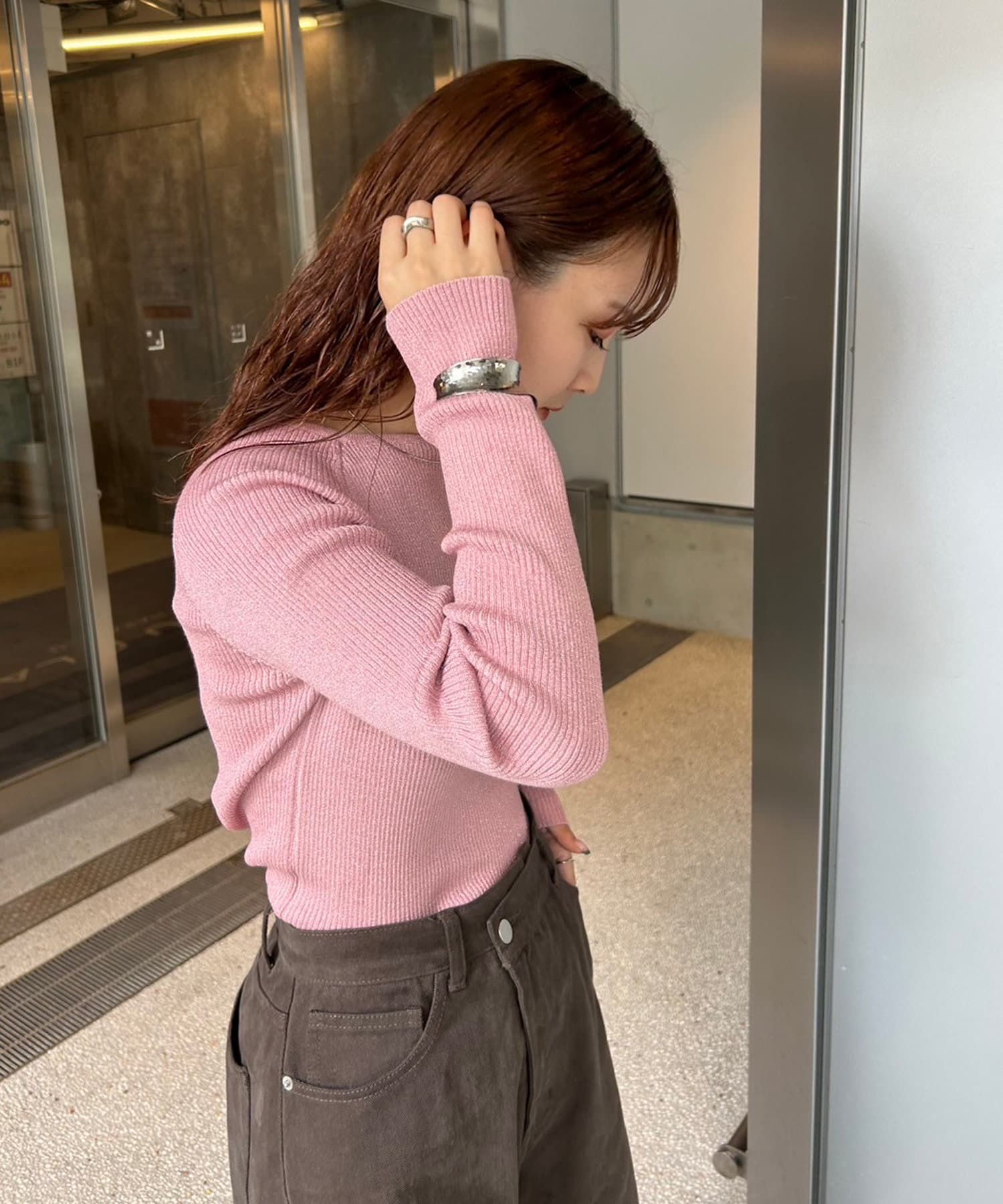 購入場所:パルクローゼット多色買いしたいくらい可愛いです!ラメが入っていて去年のラメニットも2色買いしていてお気に入りです!首周りが広く開いてるのも綺麗に見えます!