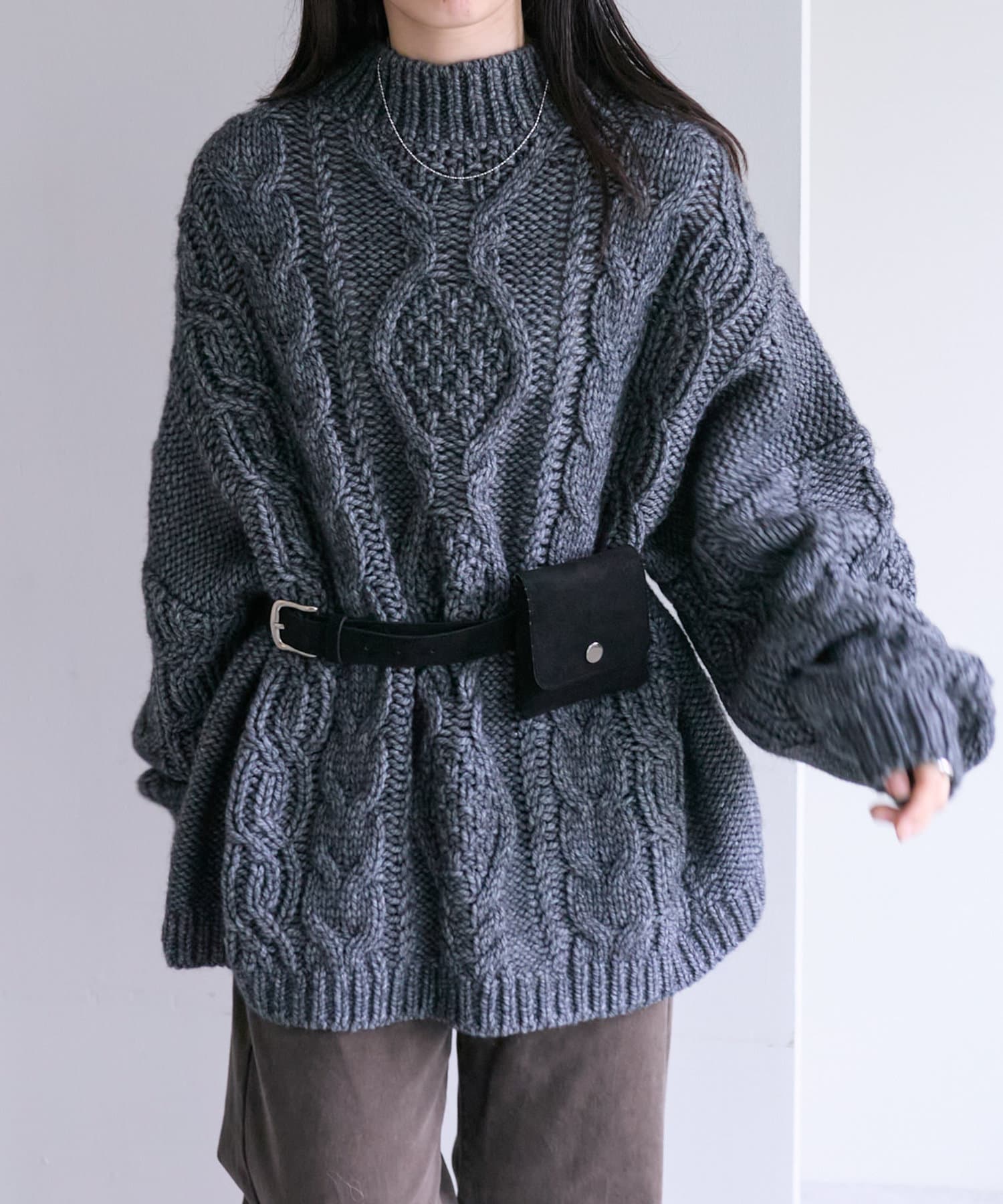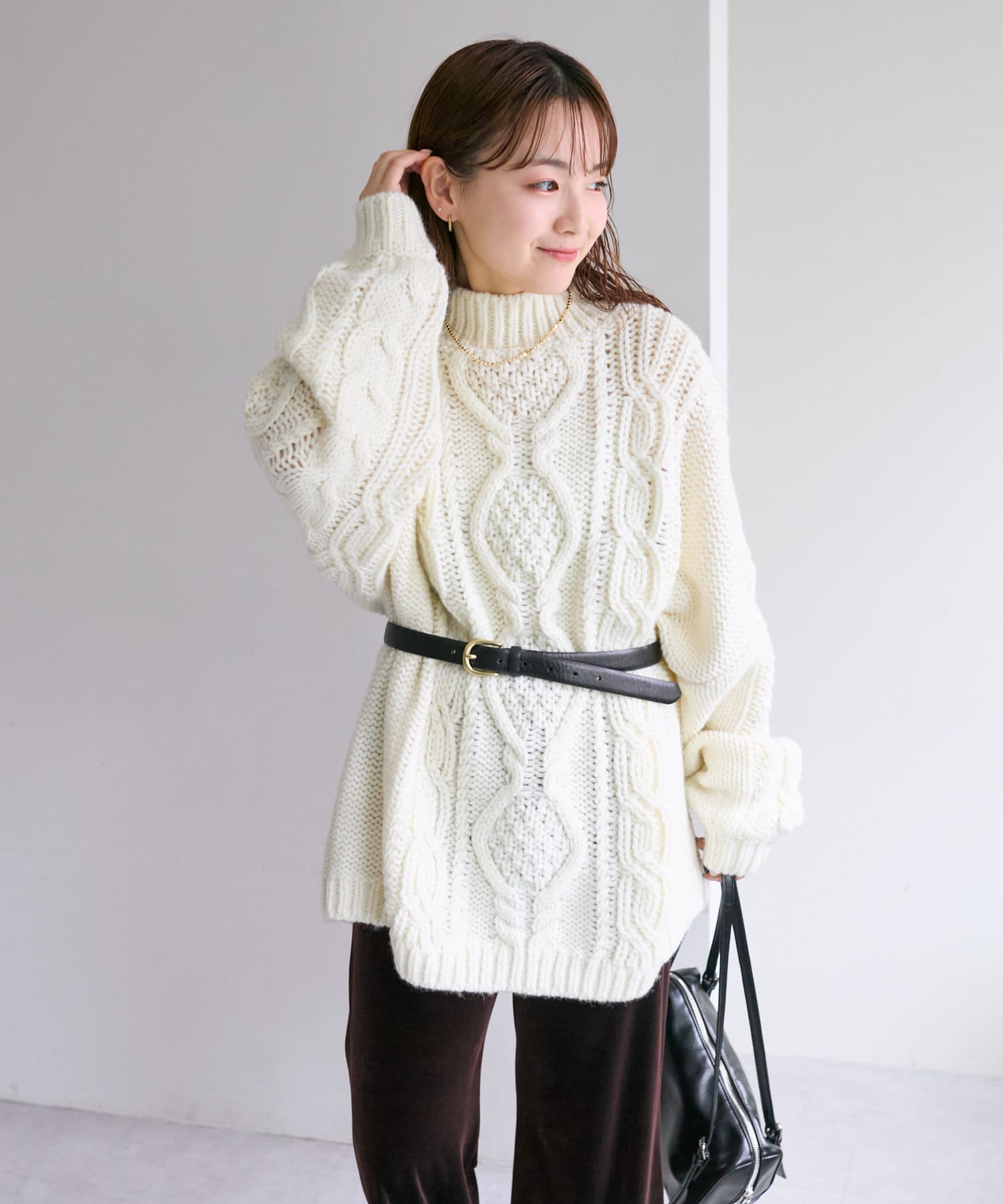 存在感ある手編み風のザックリとしたケーブルニットが登場!