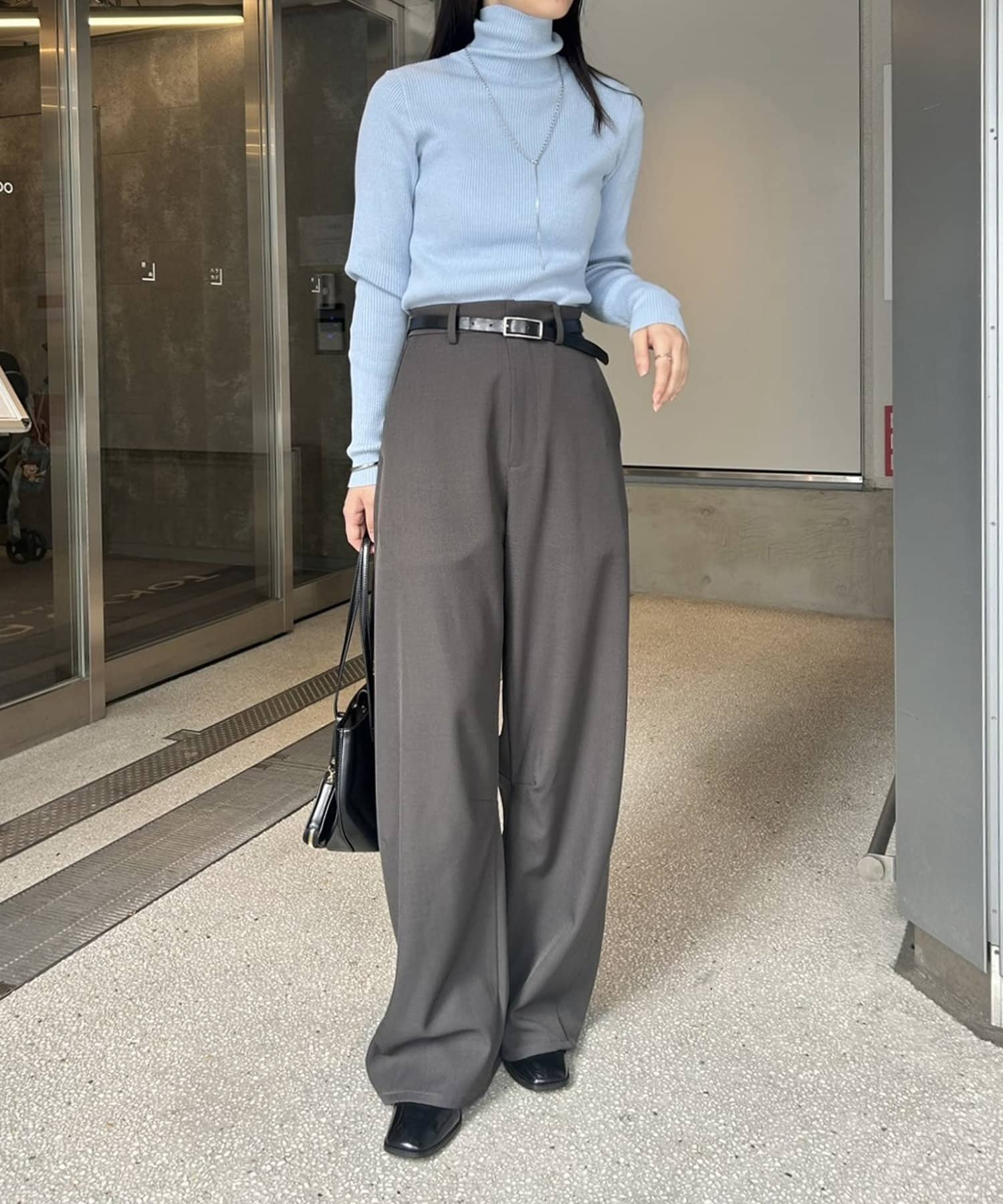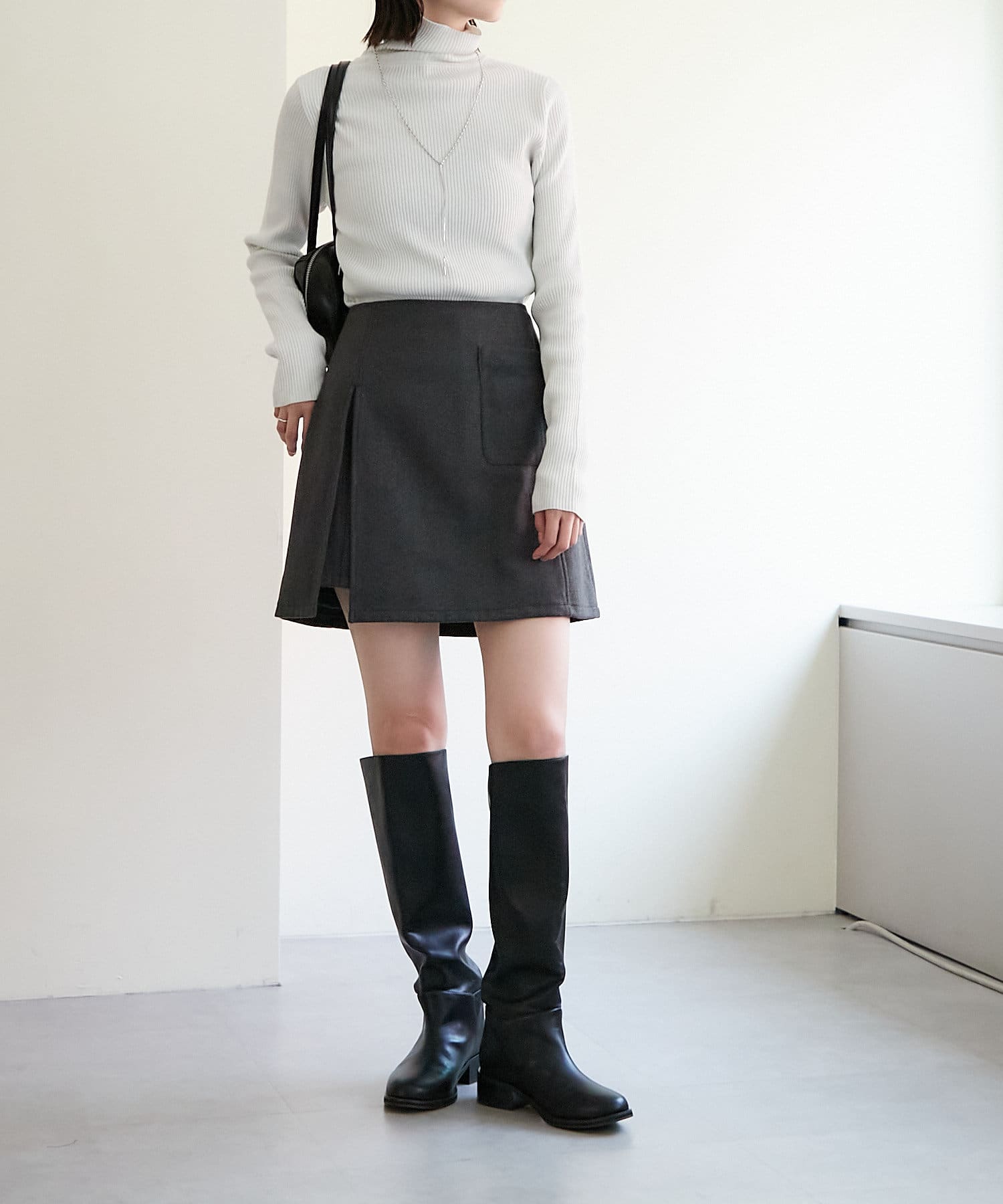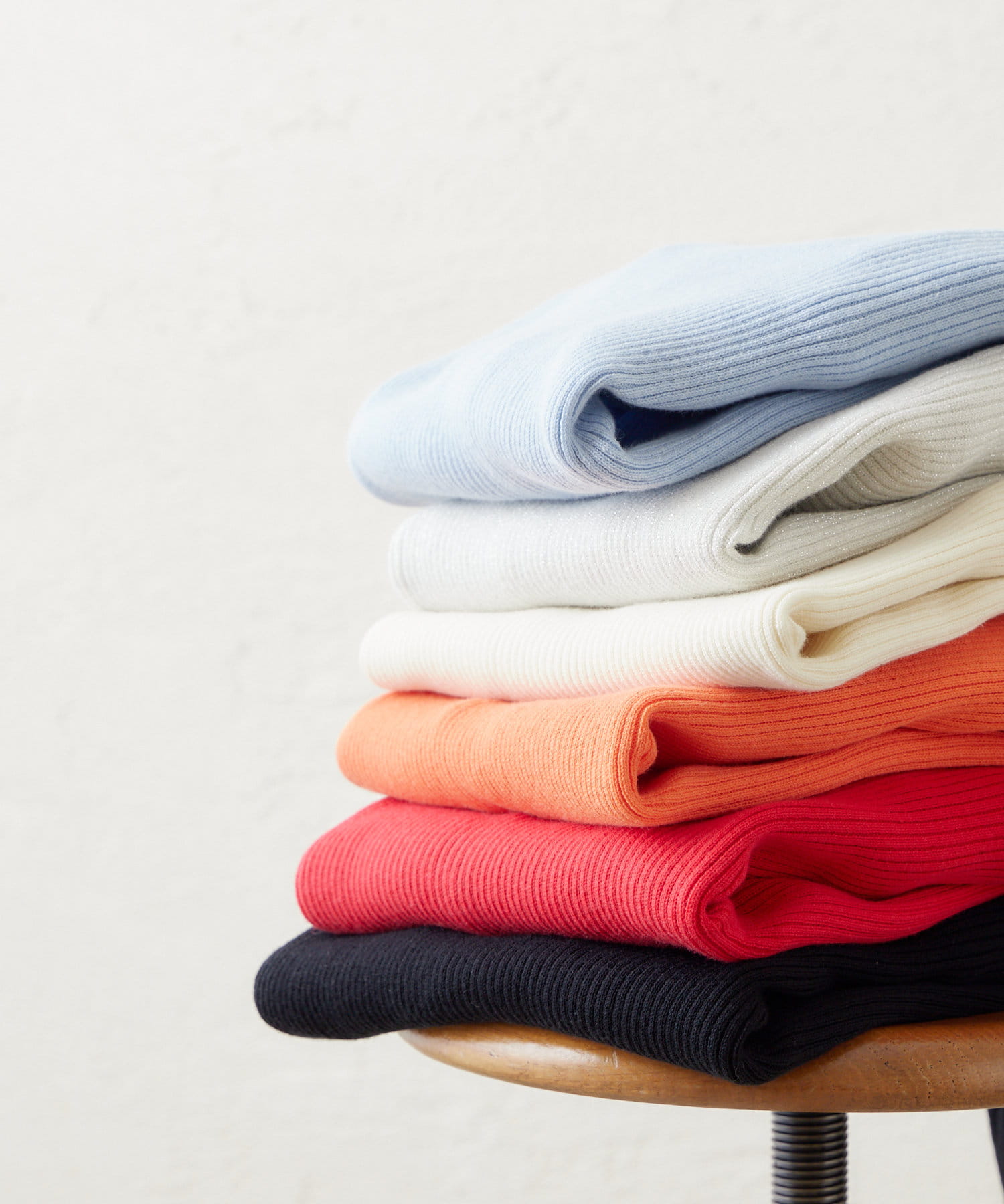 ・細めのリブでIラインが強調され、すっきりシルエットに見せてくれます◎
