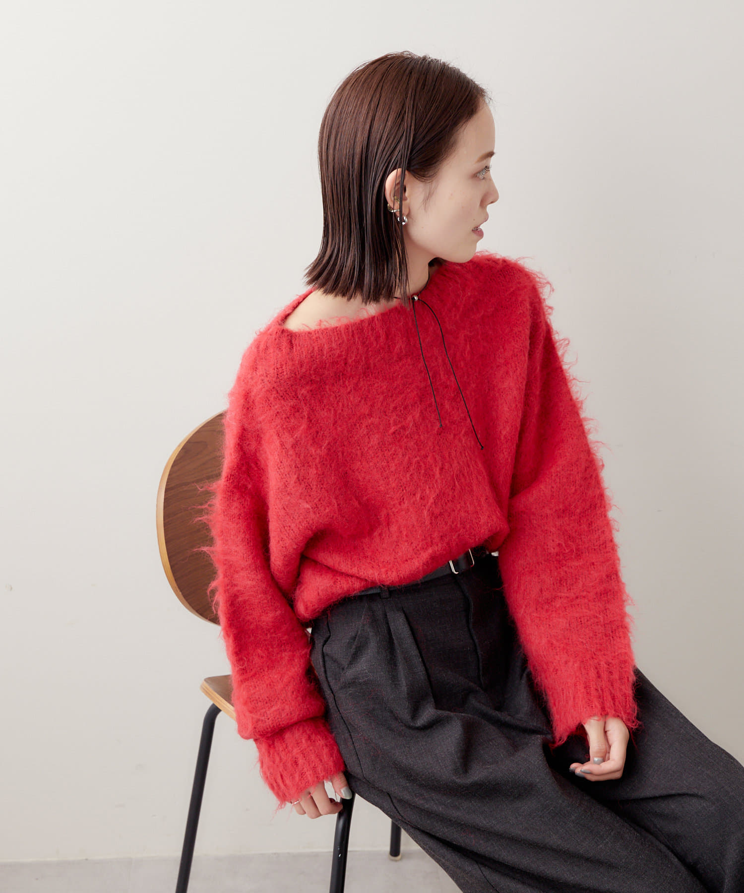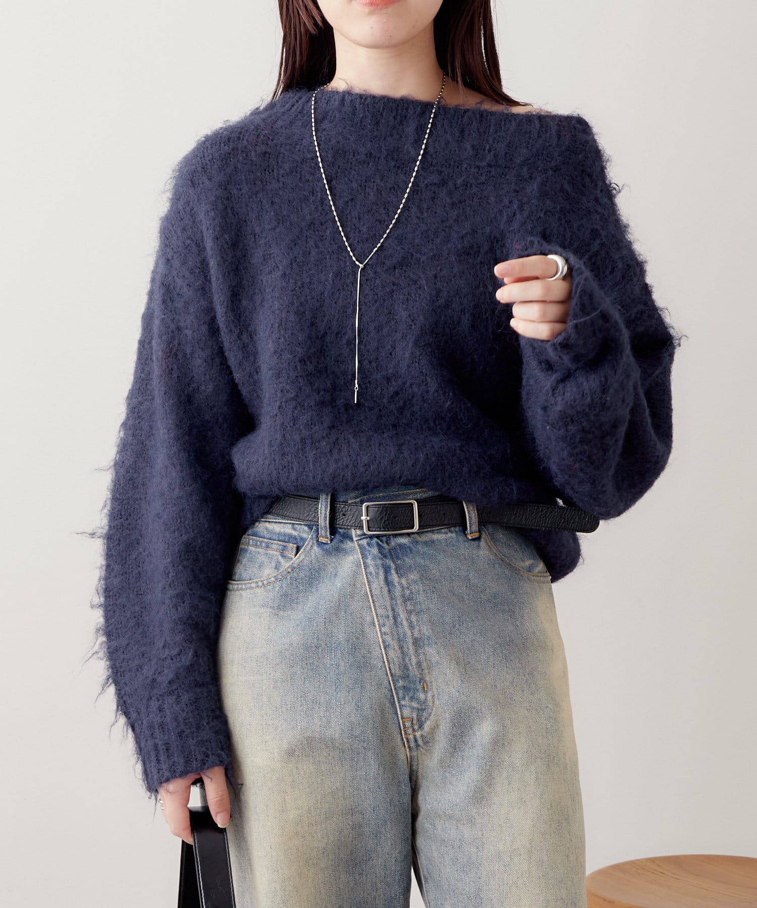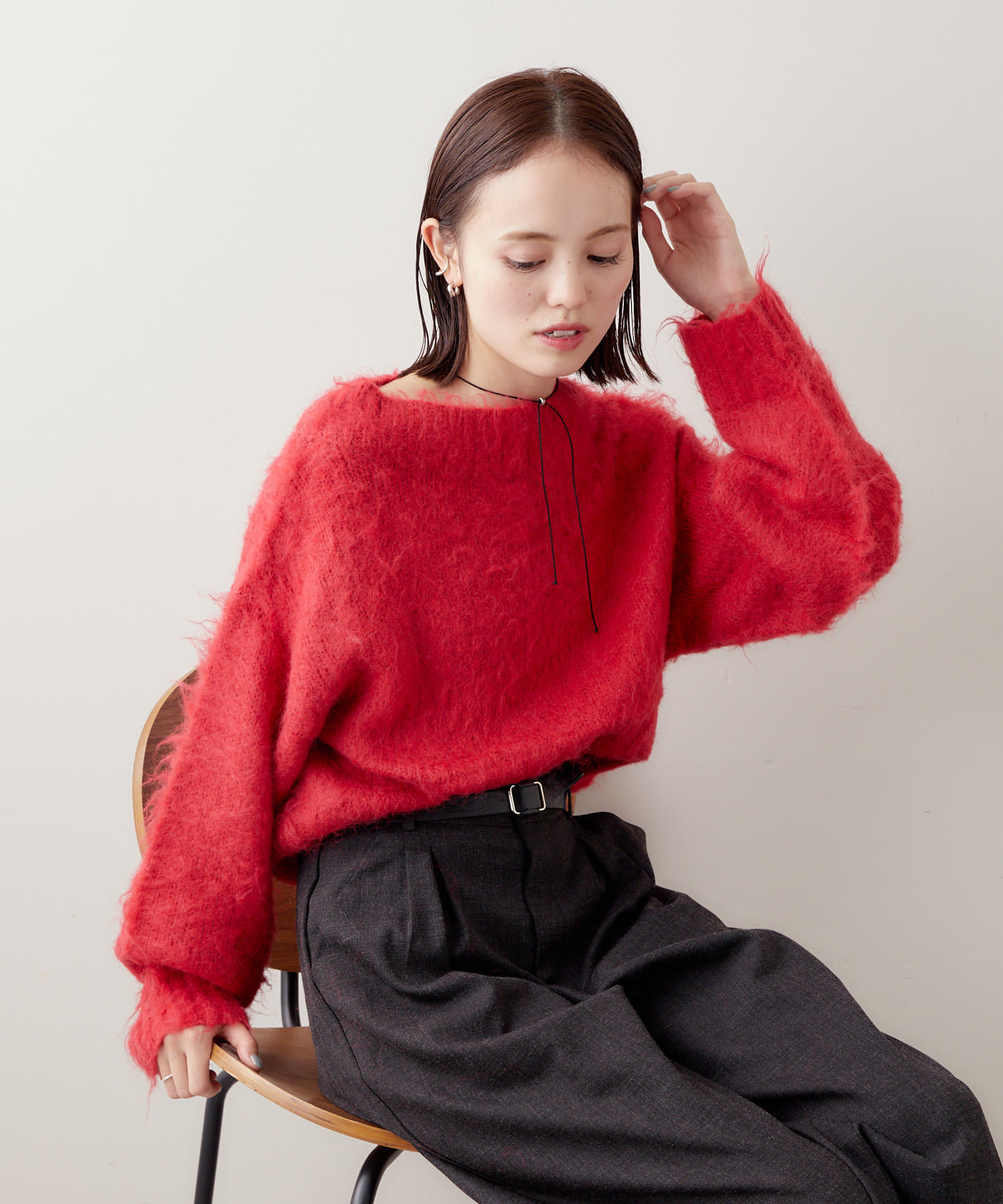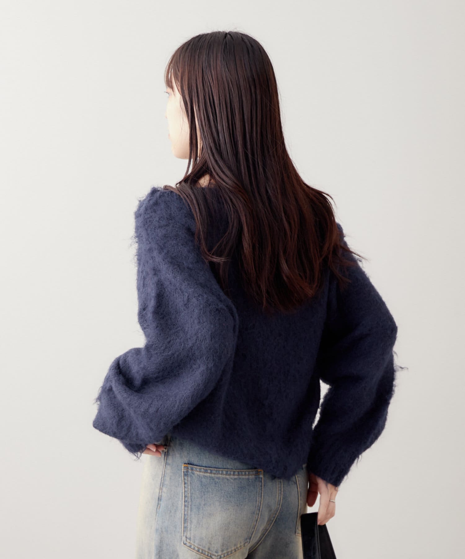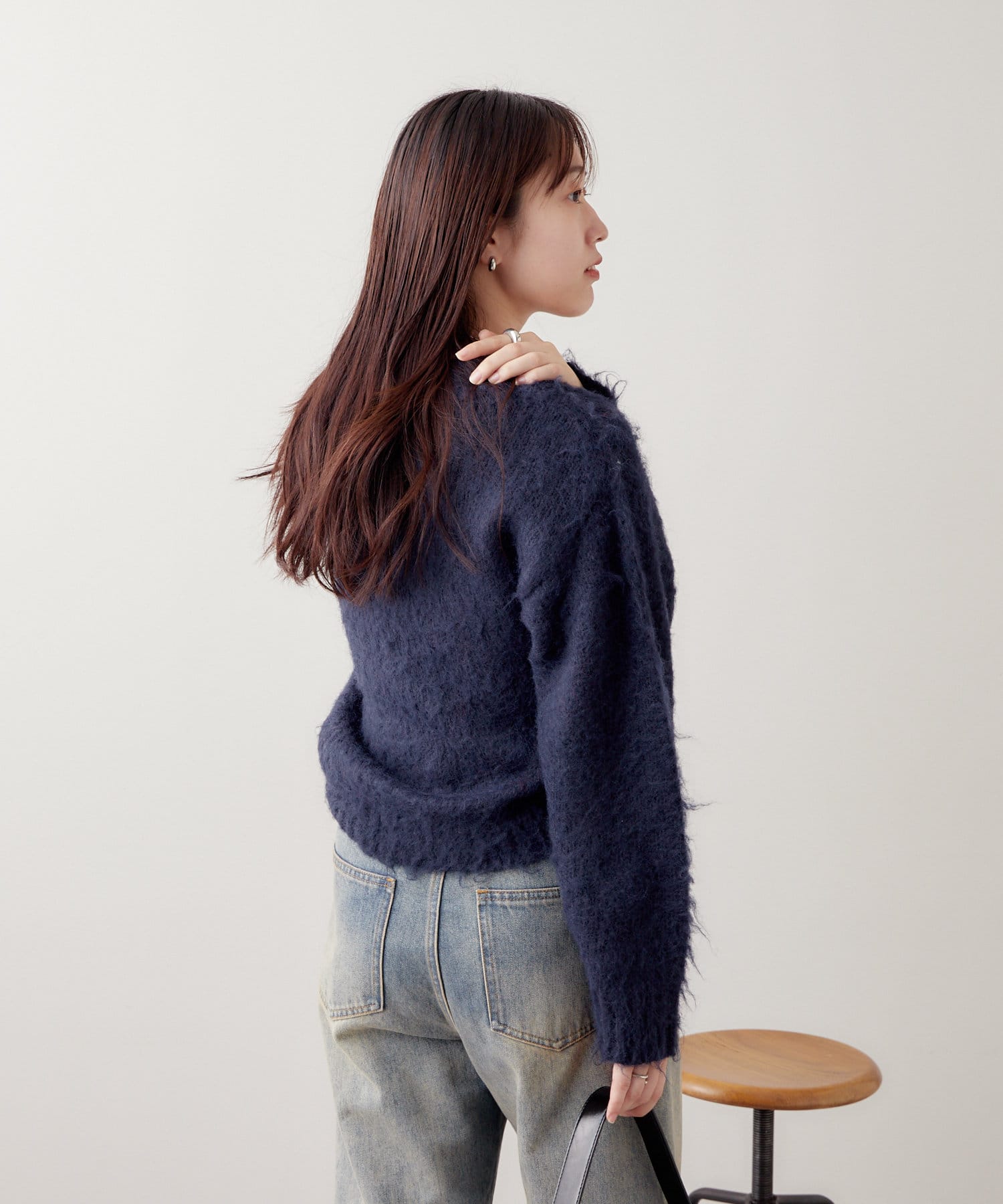 ・毛足が長く触り心地も抜群のモヘアライクニット。