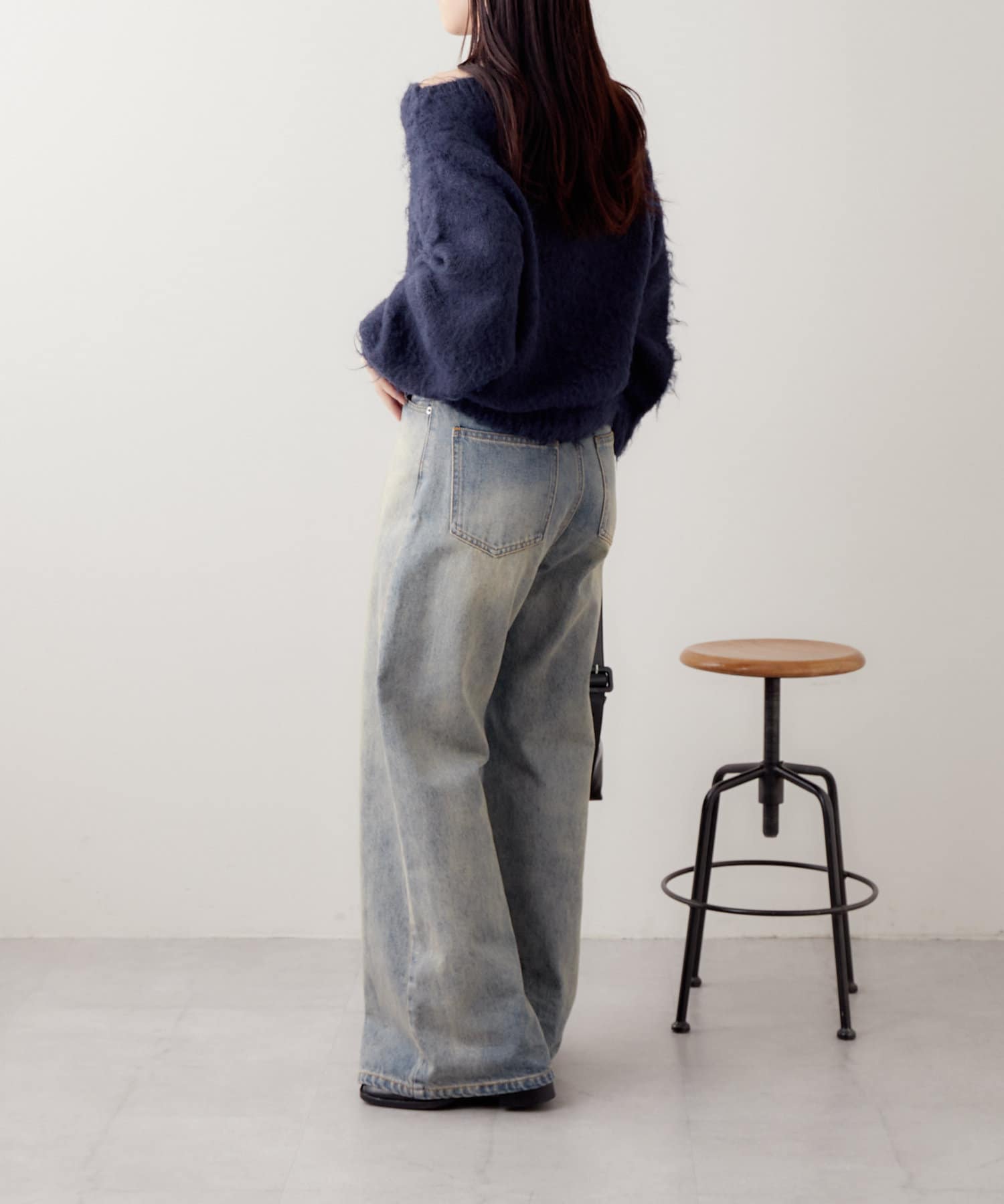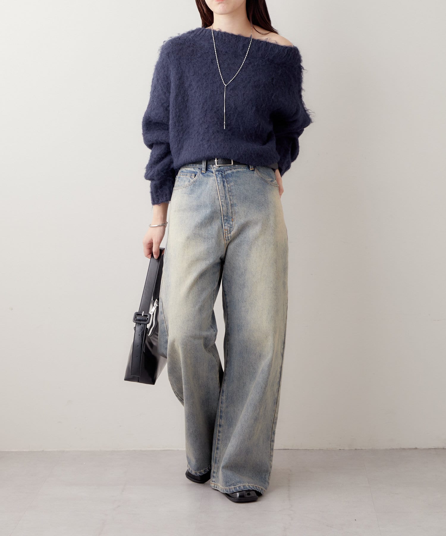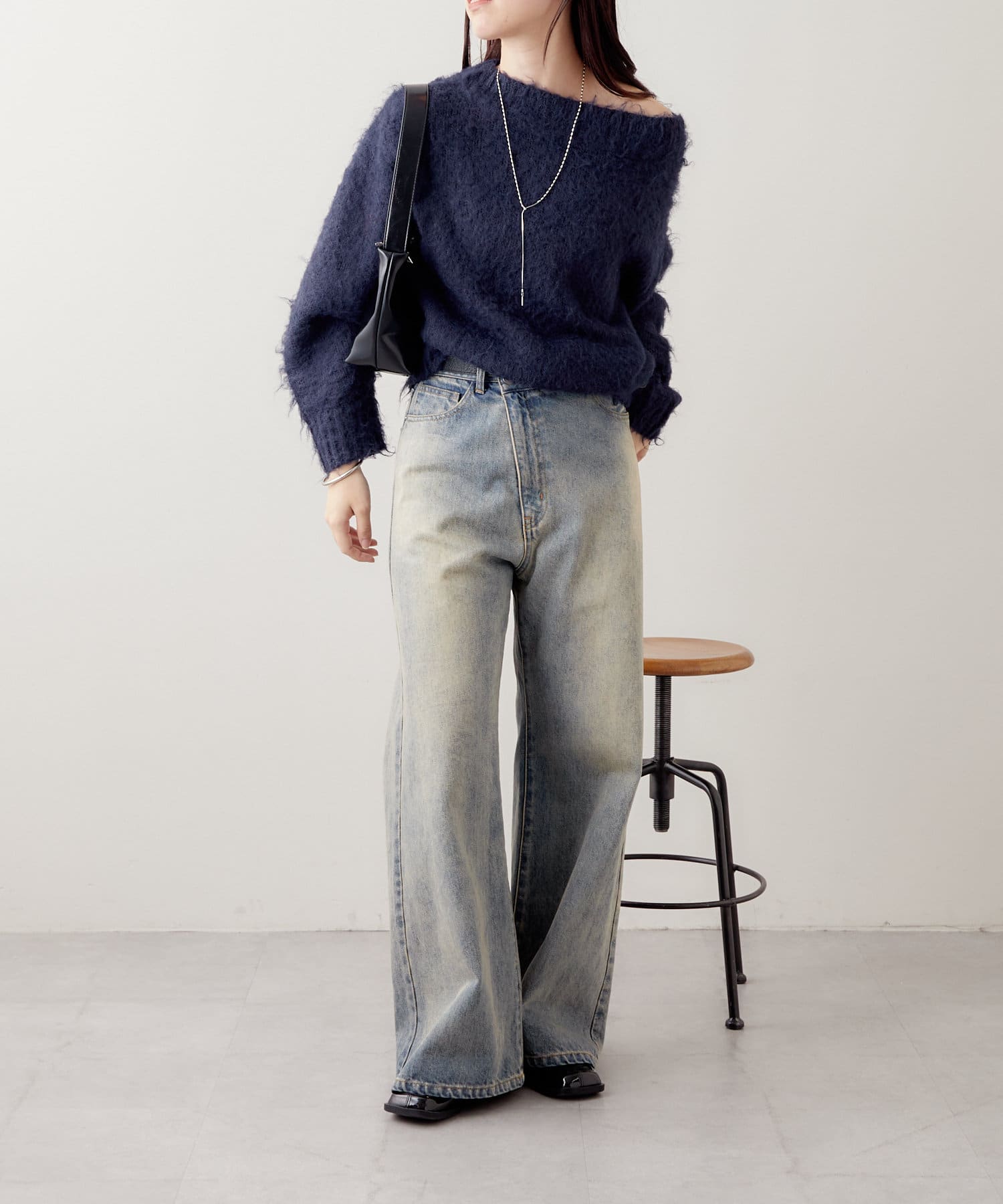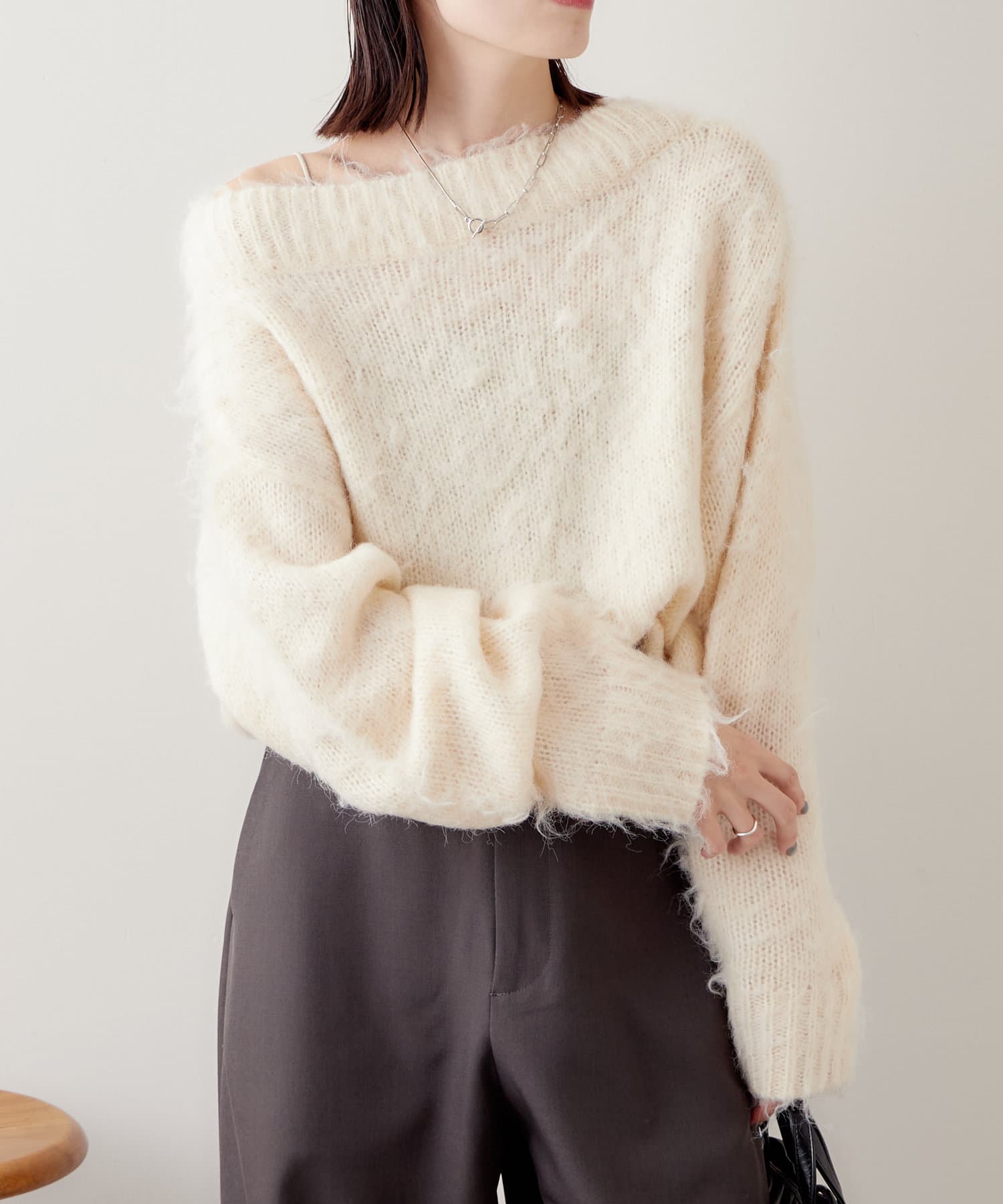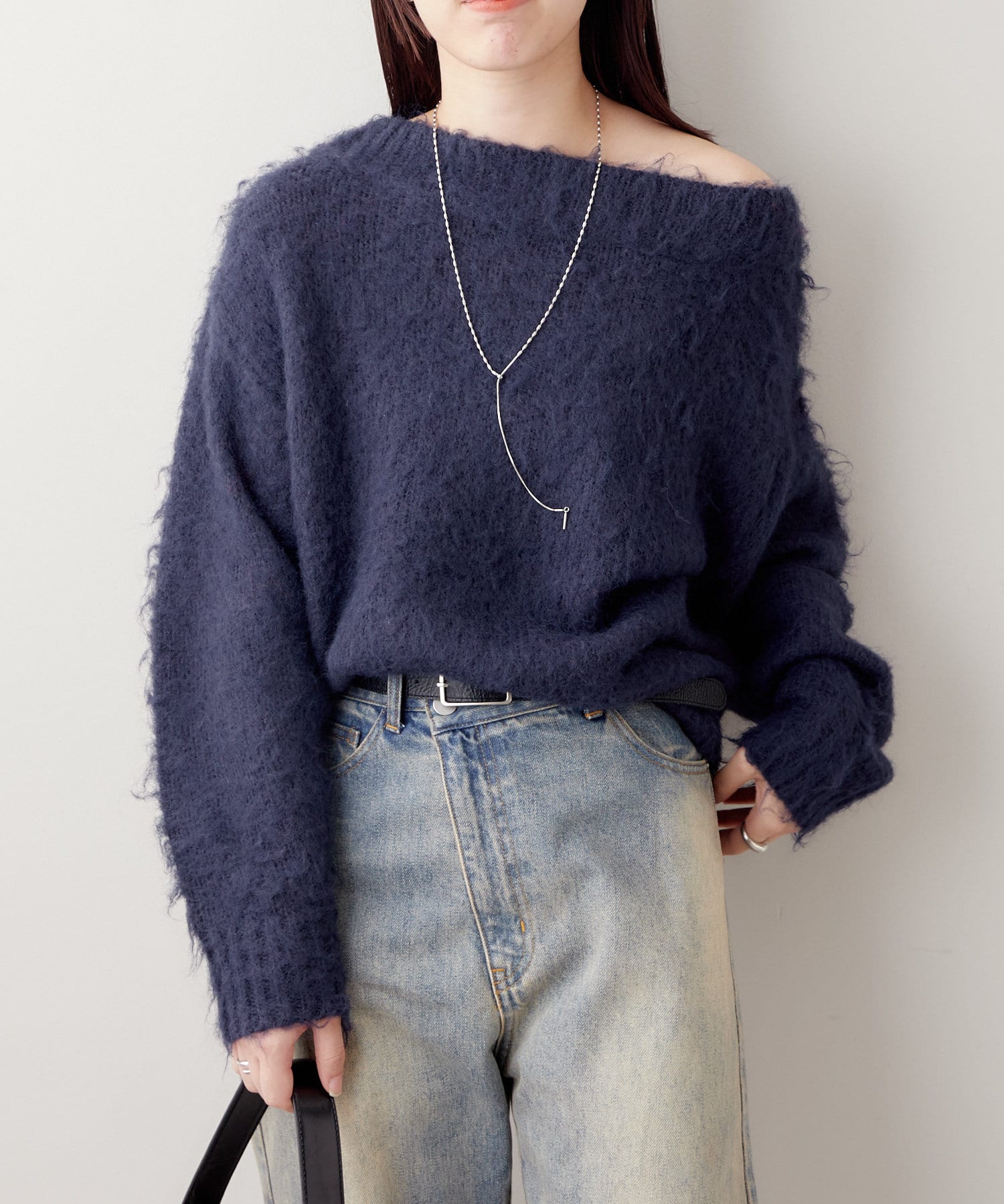 ・毛足が長く触り心地も抜群のモヘアライクニット。