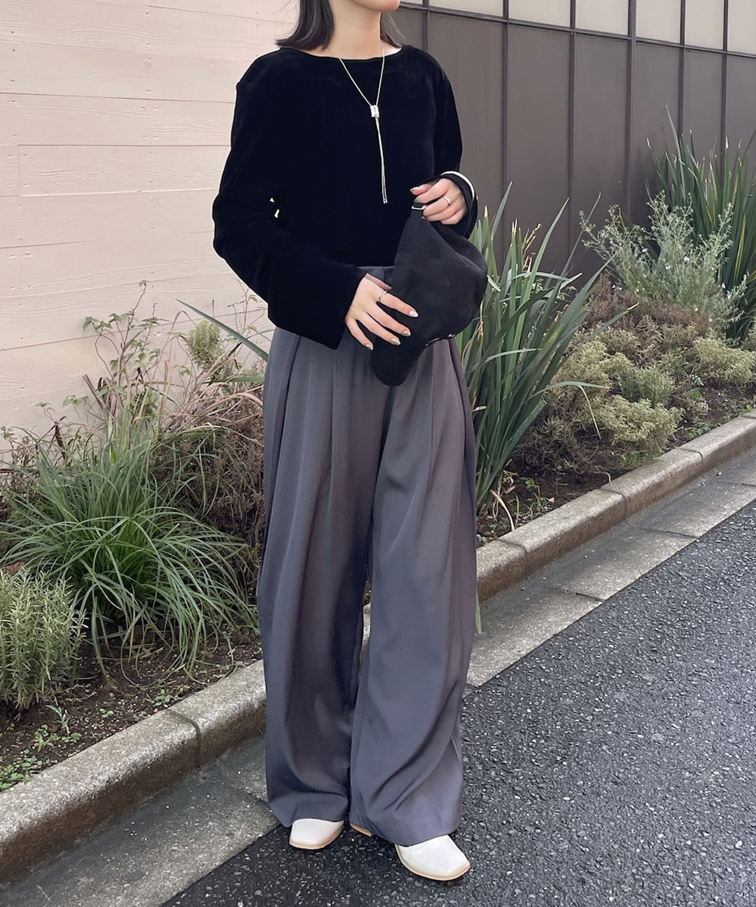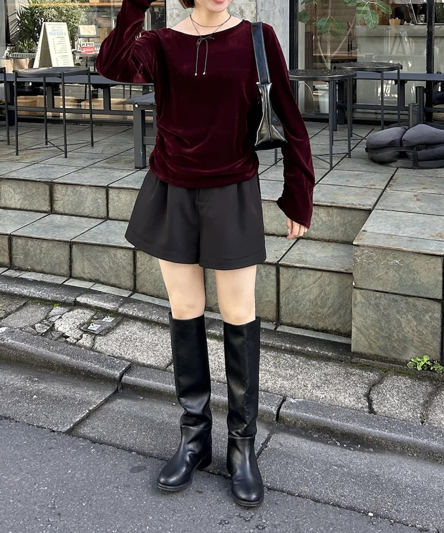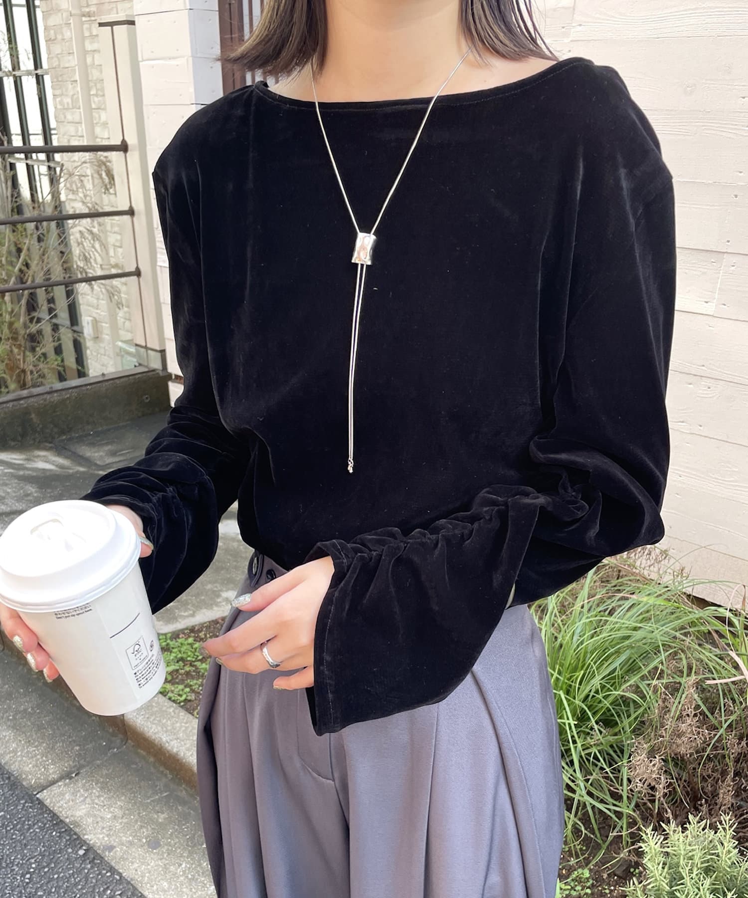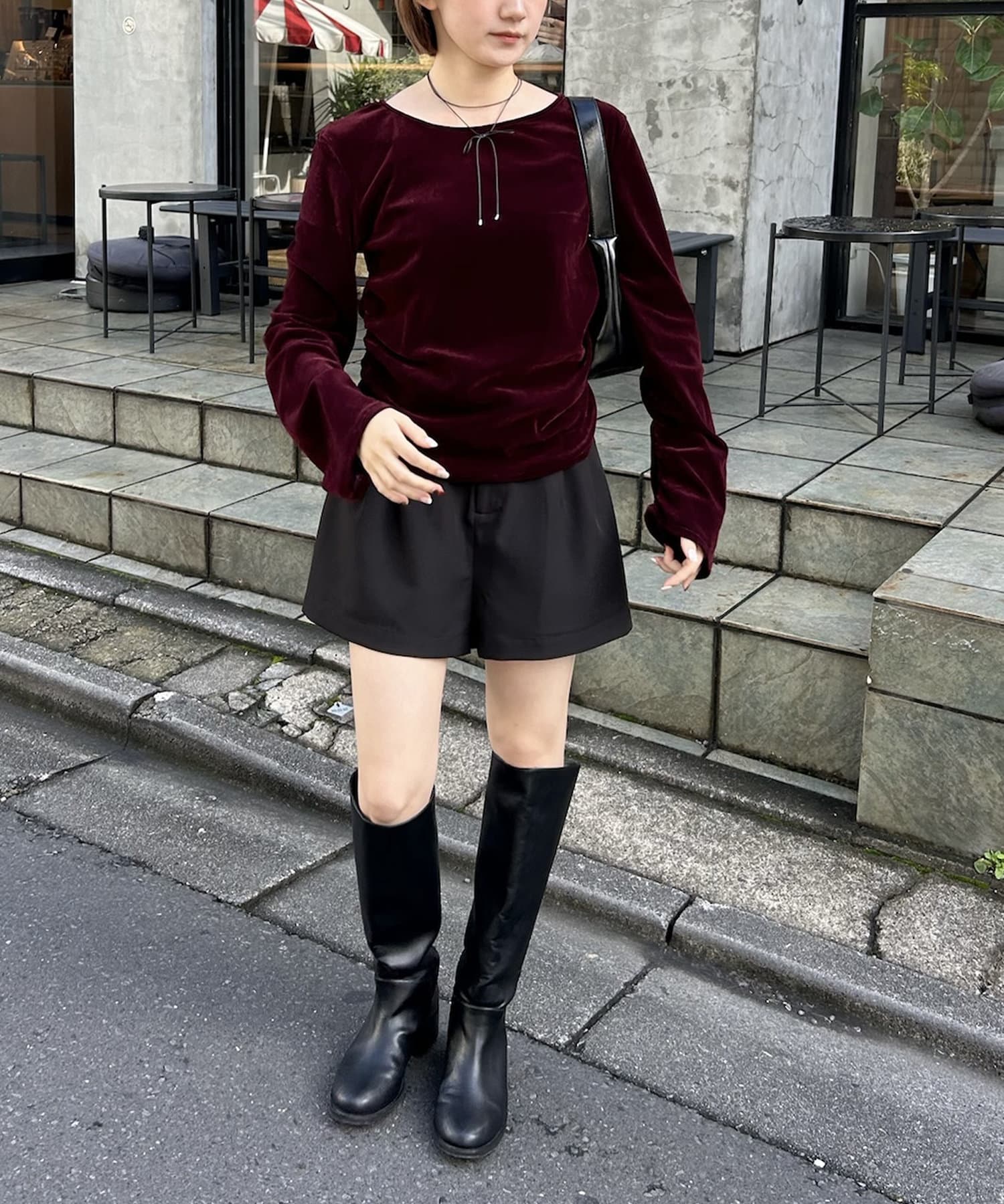 ・光沢感のあるベロアがシーズンライクなスタイリングに叶えてくれるトップス!