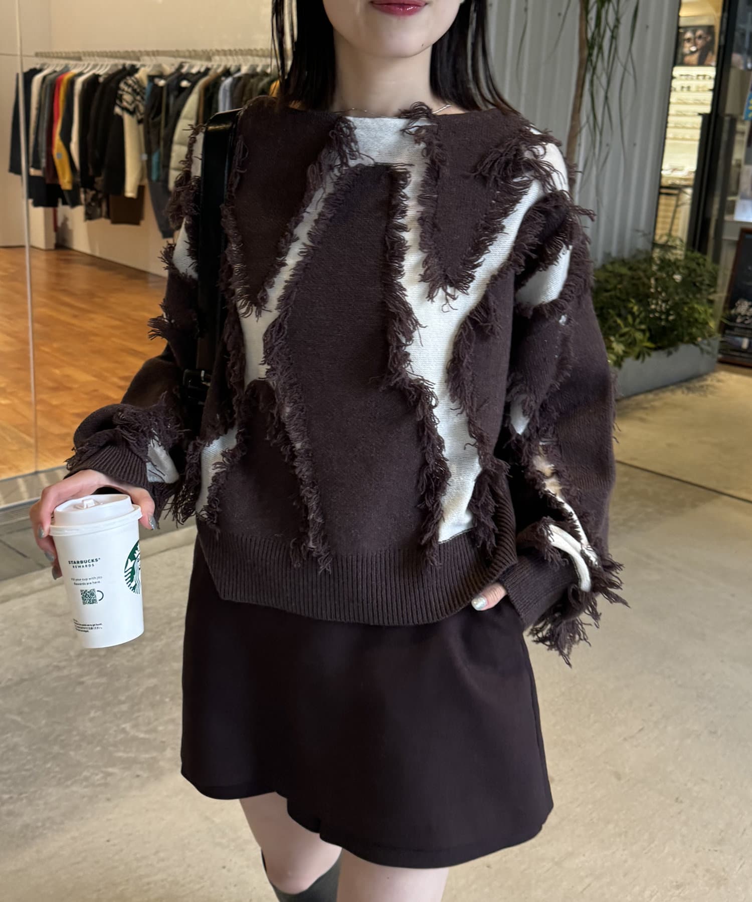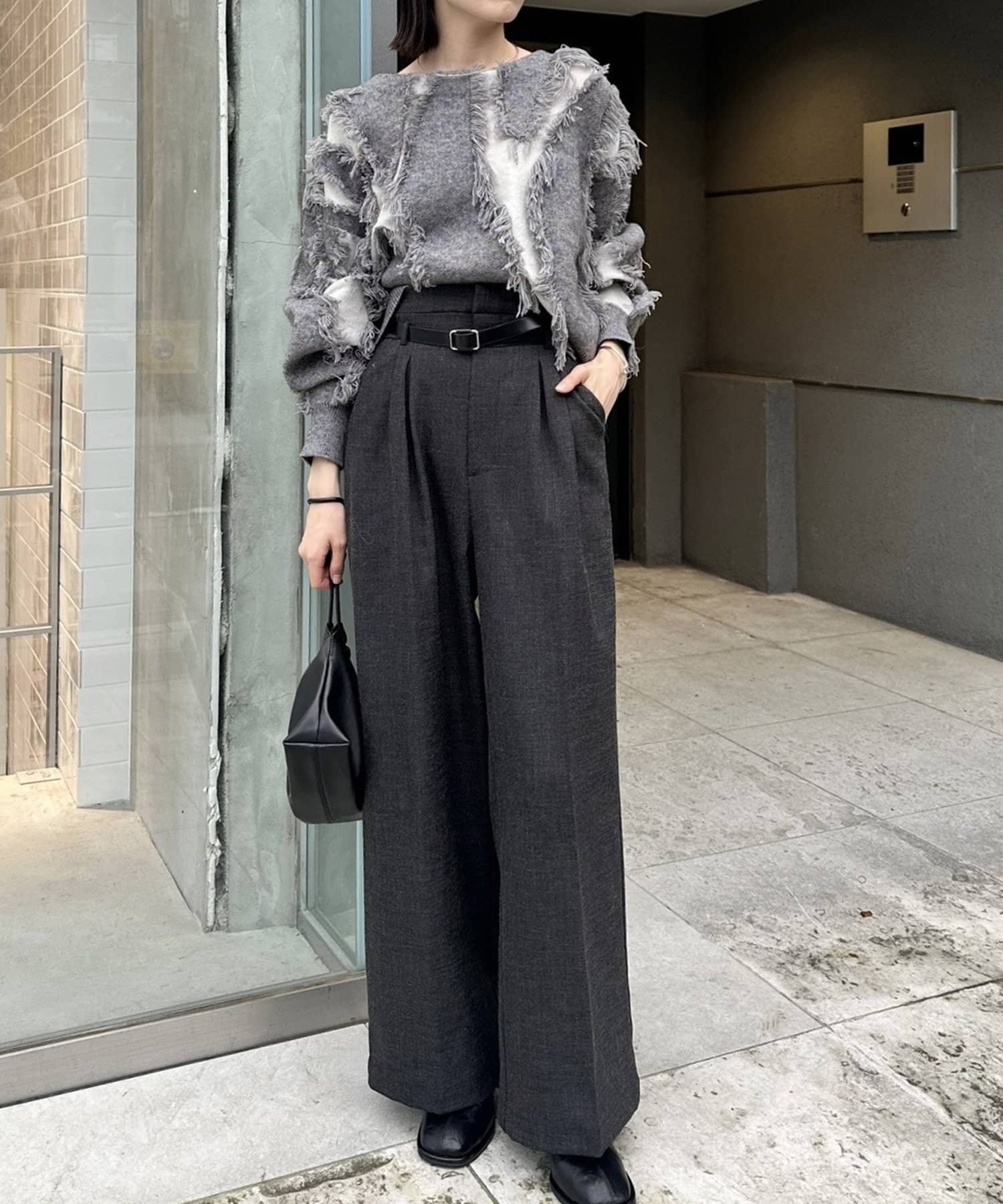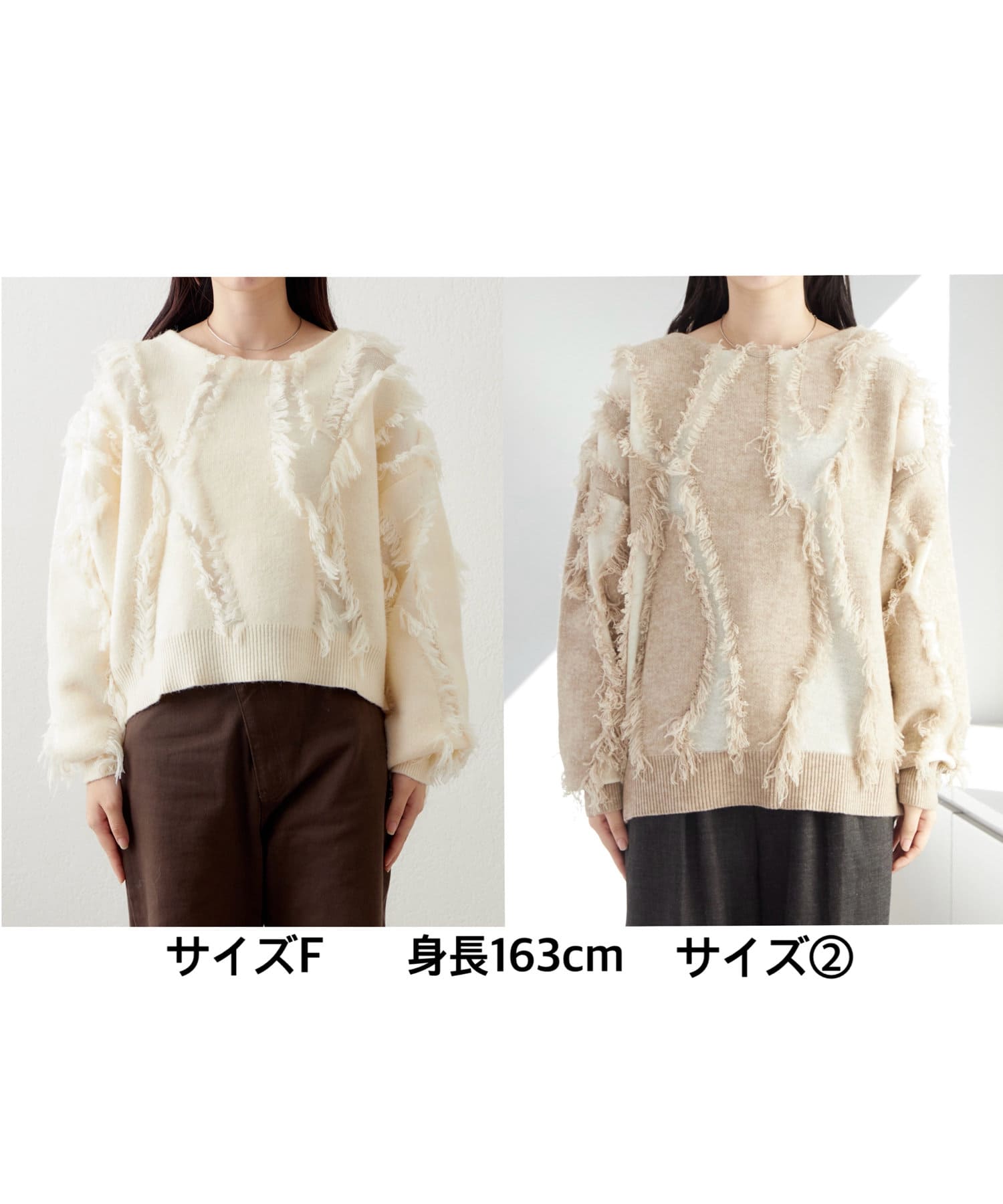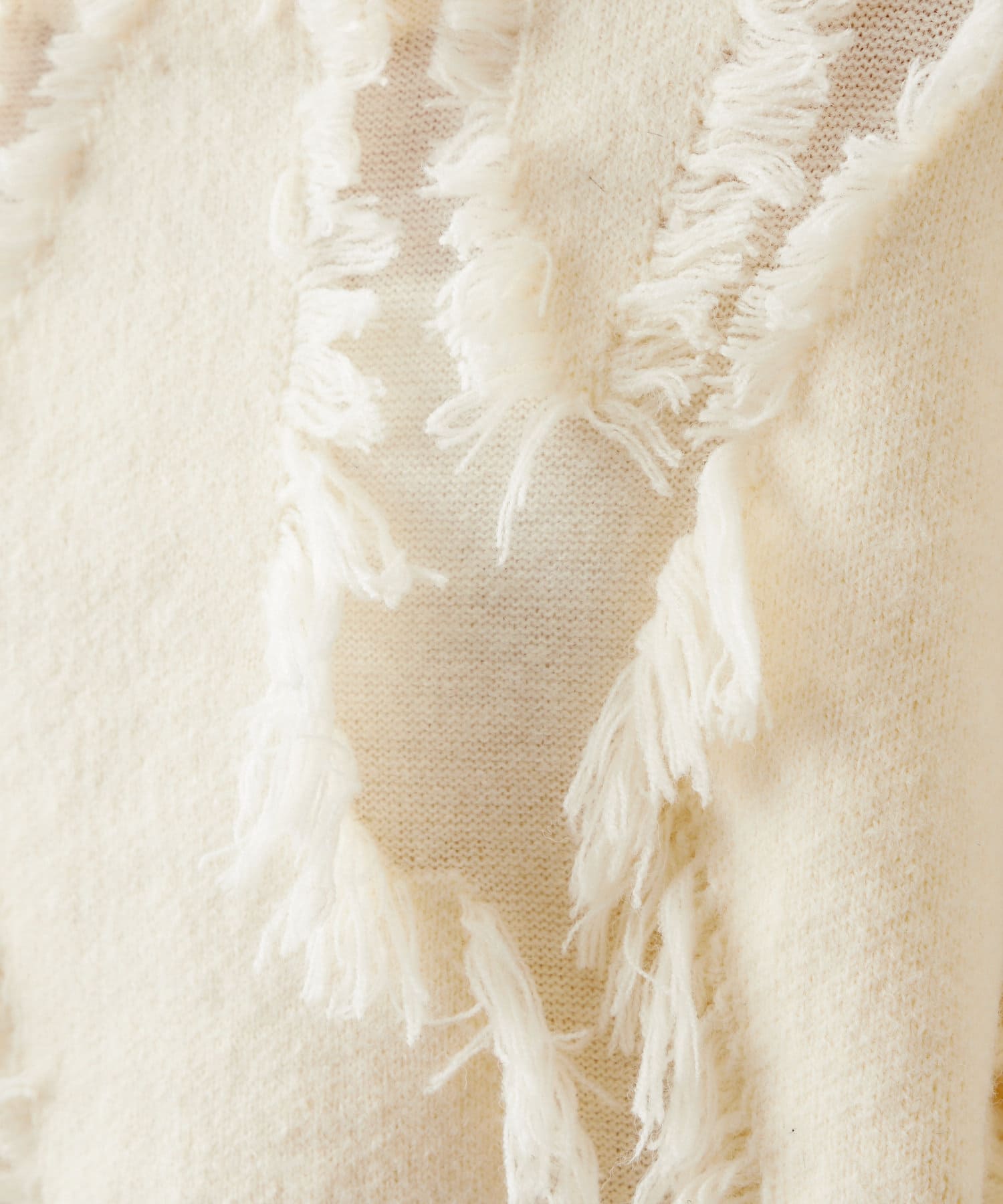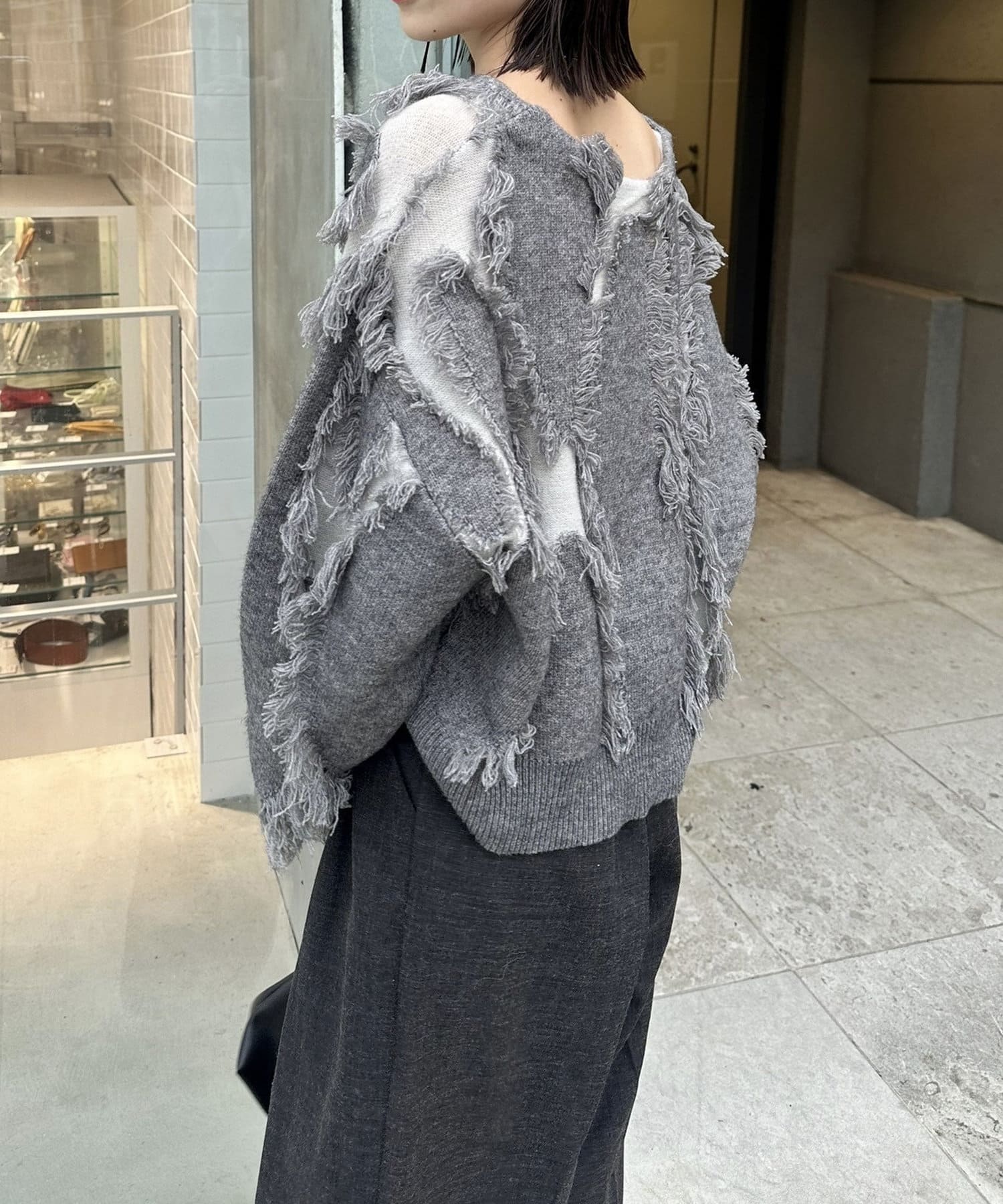 ・フリンジの部分は程よい透け感があり、ニットで重くなりがちですが抜け感あるスタイリングに!