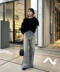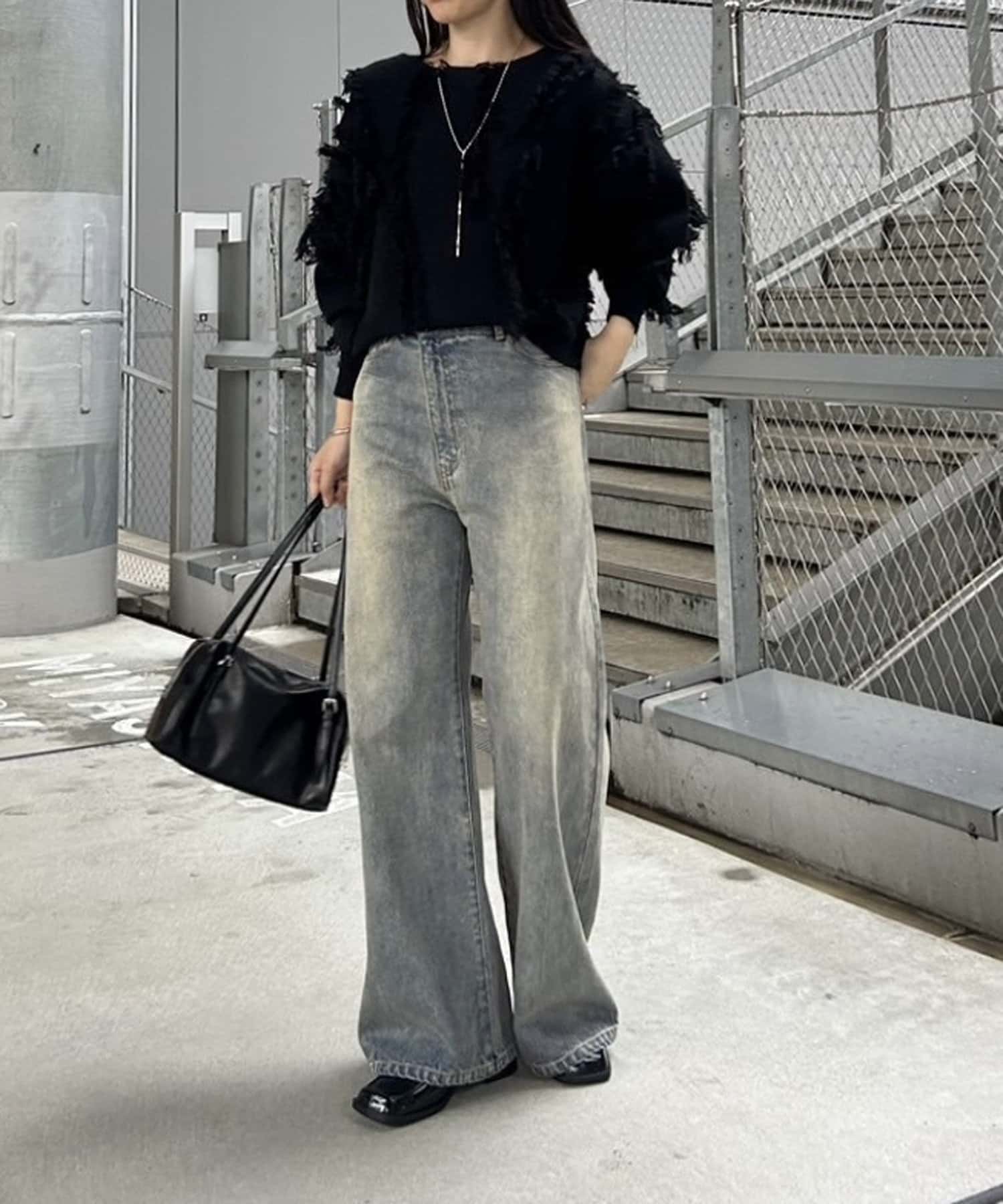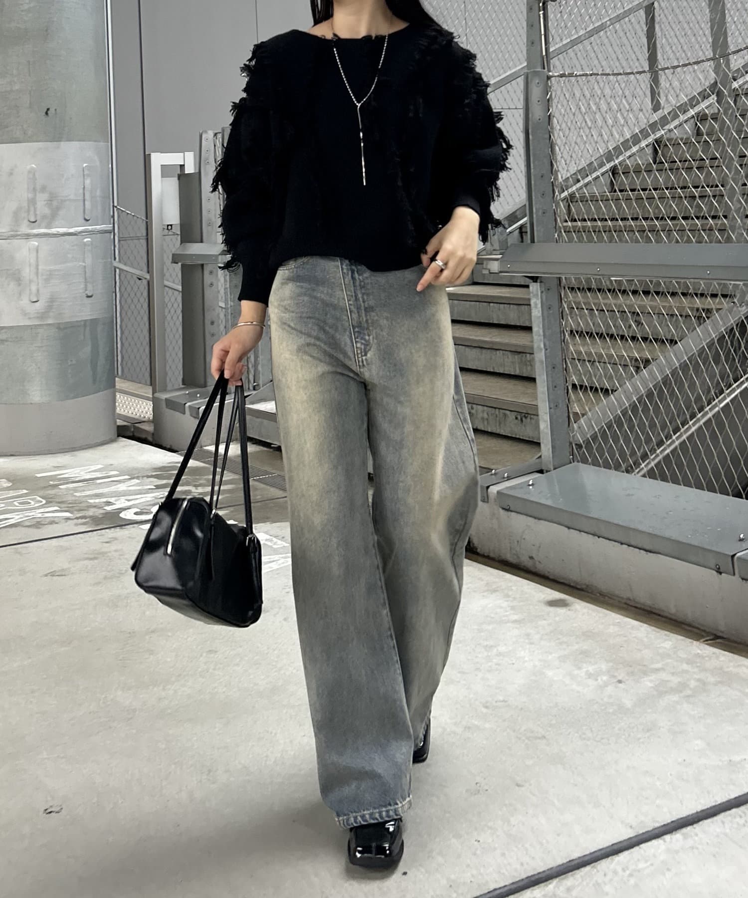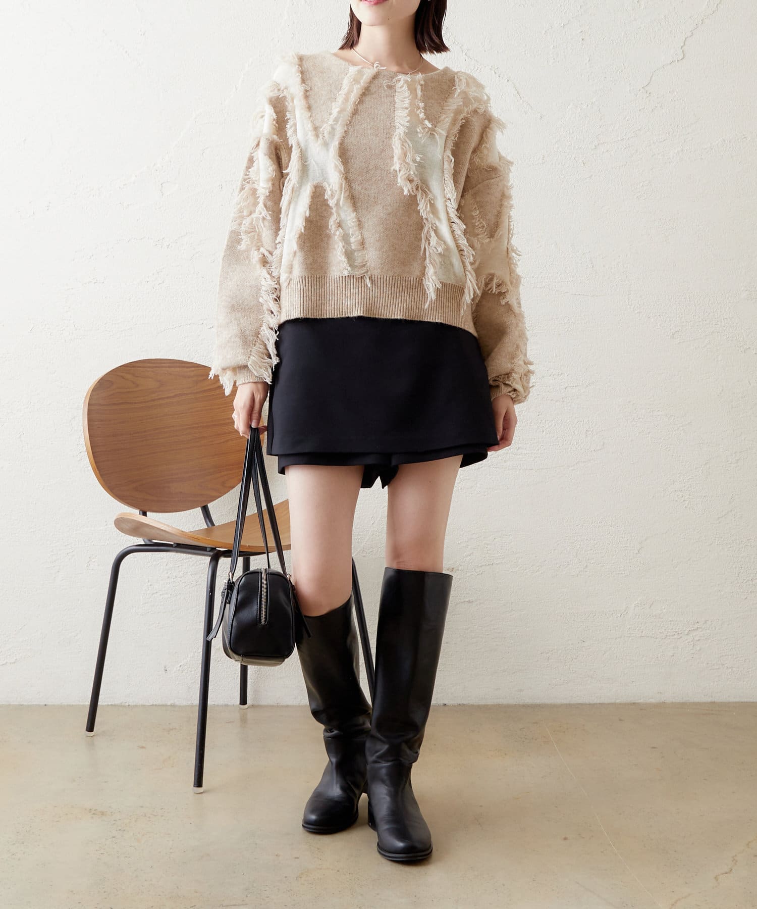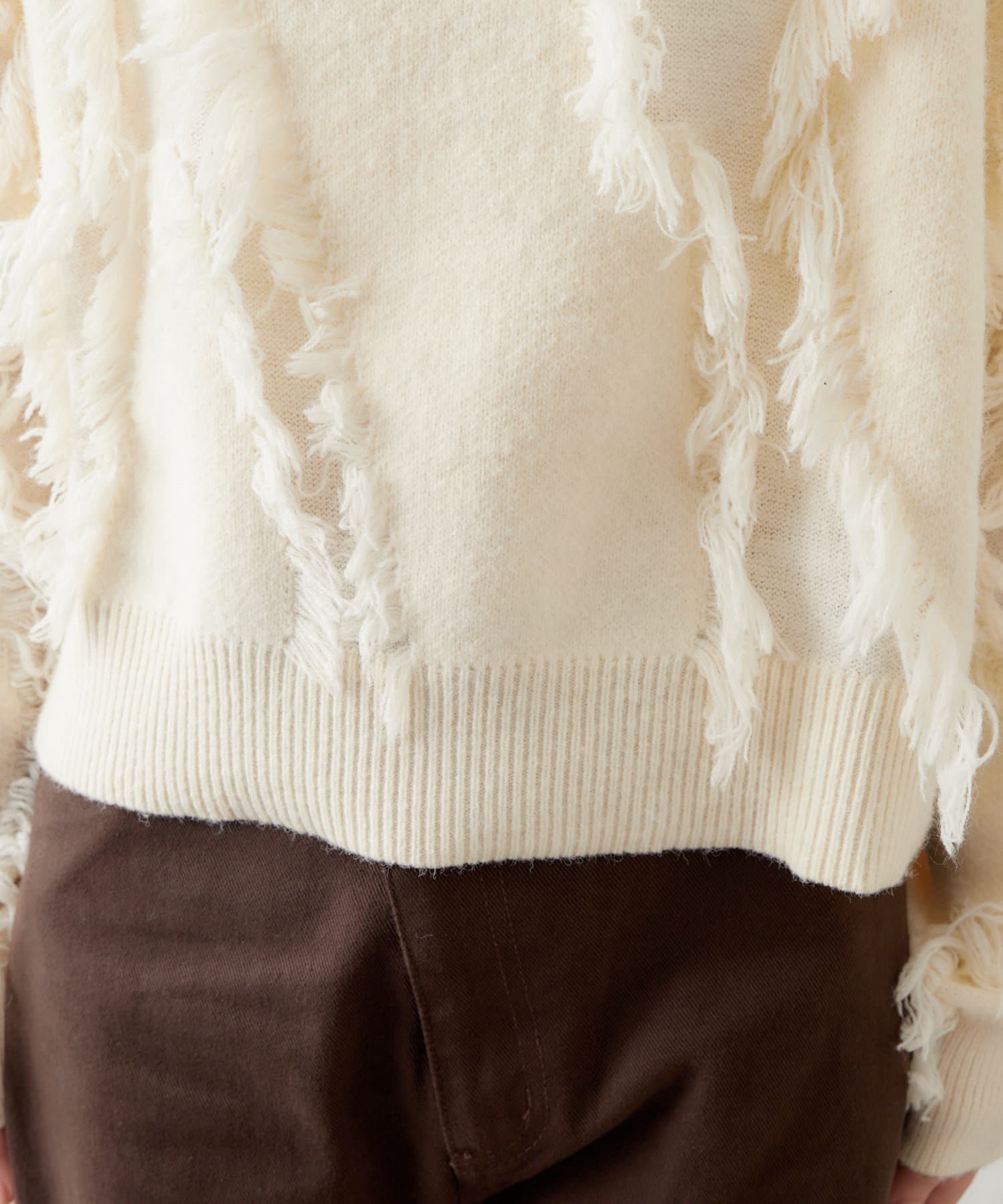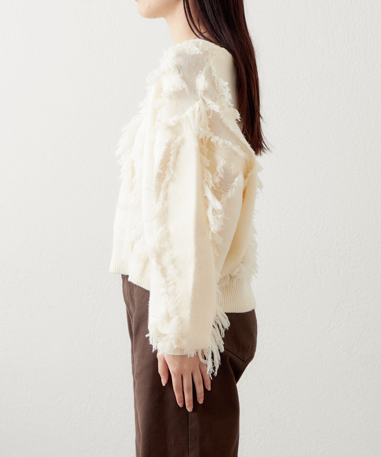 ・フリンジの部分は程よい透け感があり、ニットで重くなりがちですが抜け感あるスタイリングに!