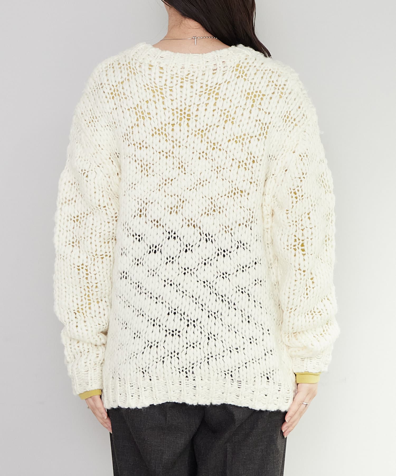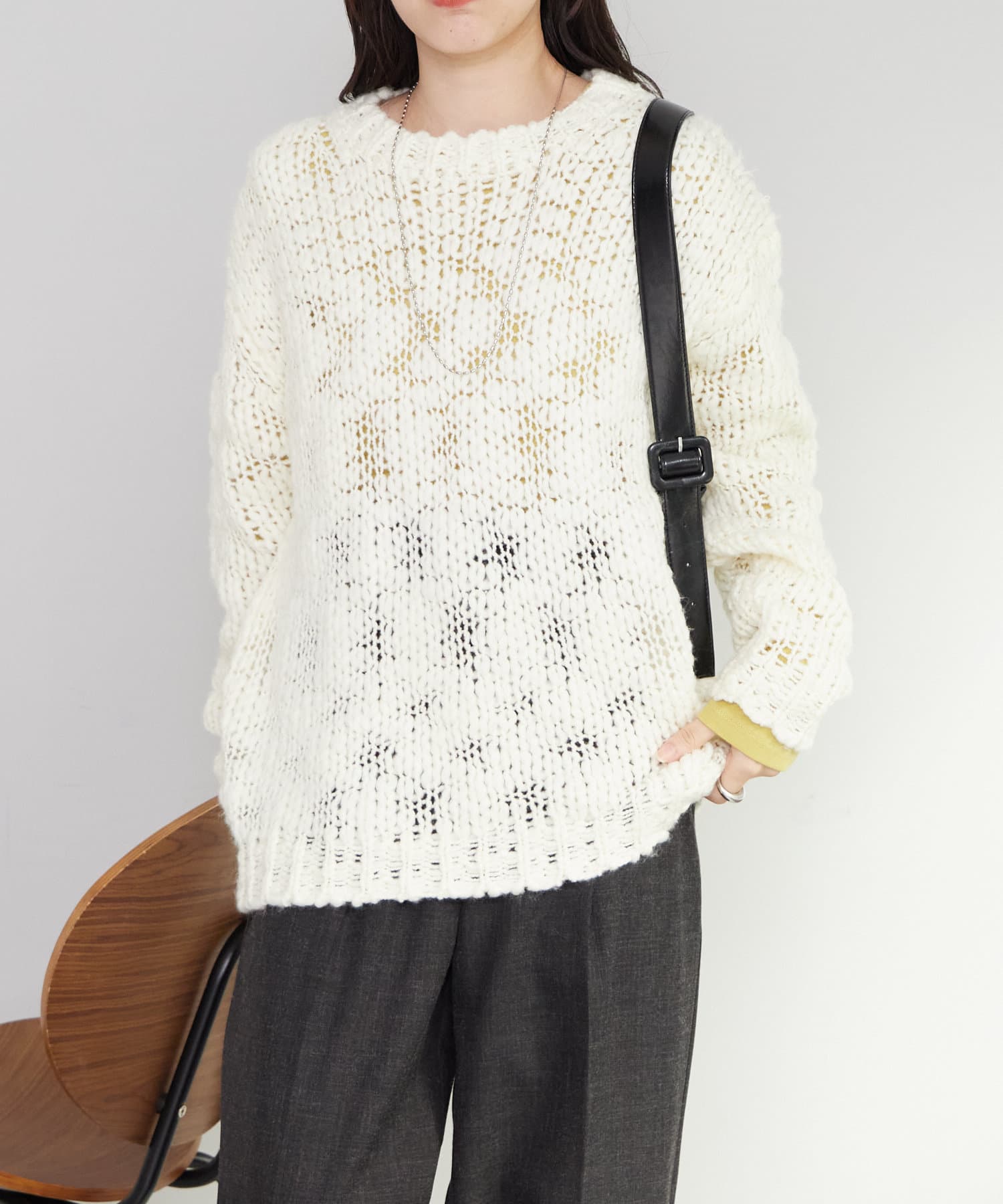 ・ポコポコした編み目がカジュアルさを出しながら、程よい肌見せが叶うニット。