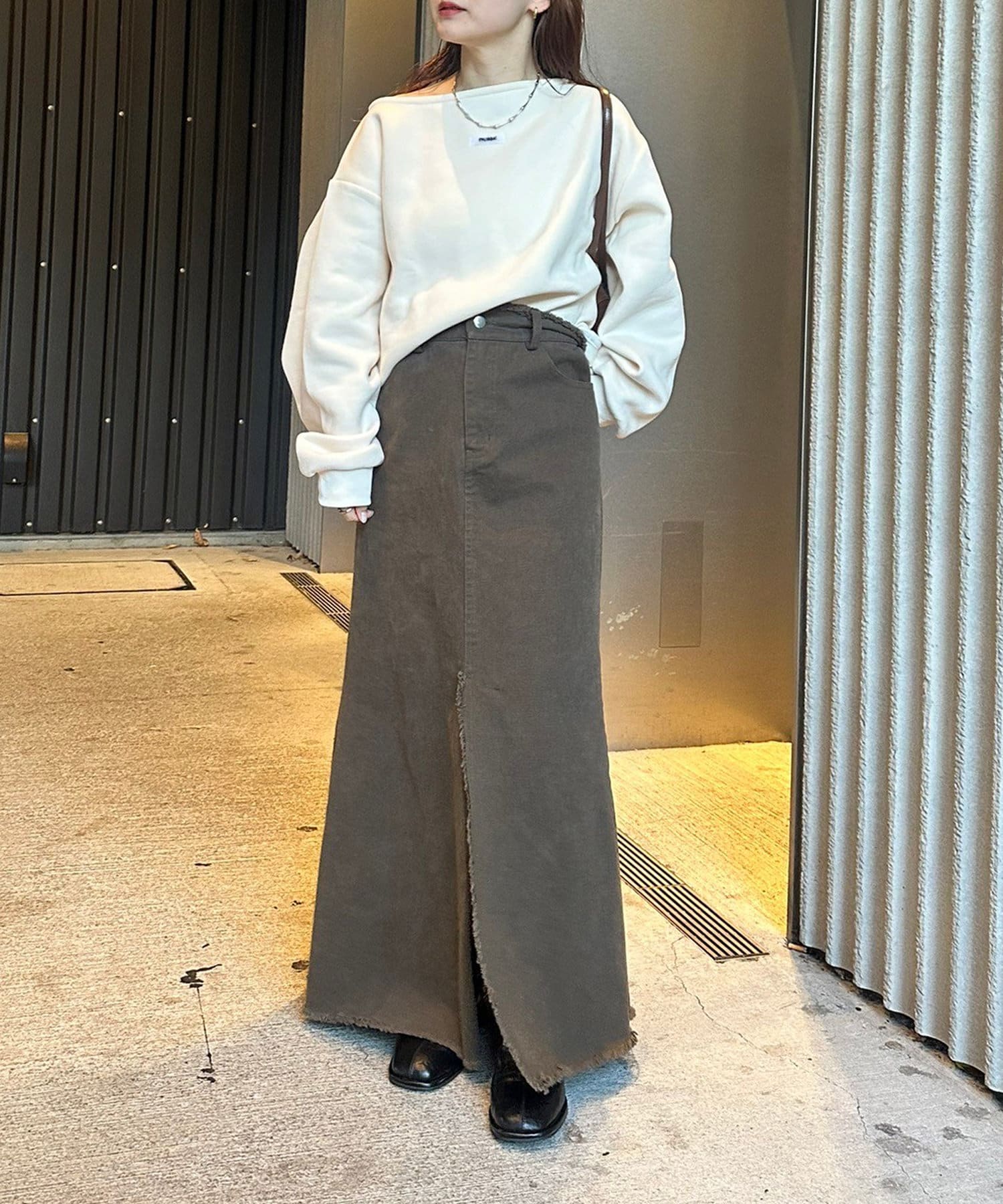 ・ミニ丈ボトムス×ロングブーツ合わせでトレンドライクな着こなしに!