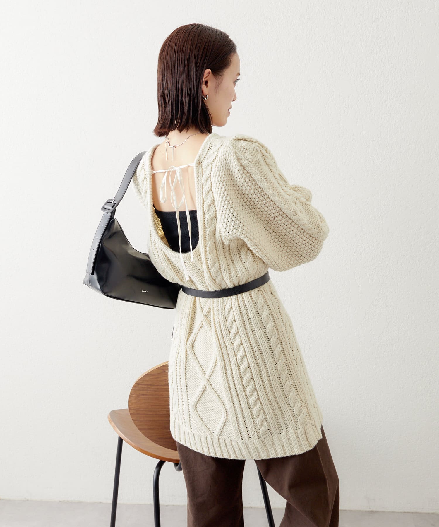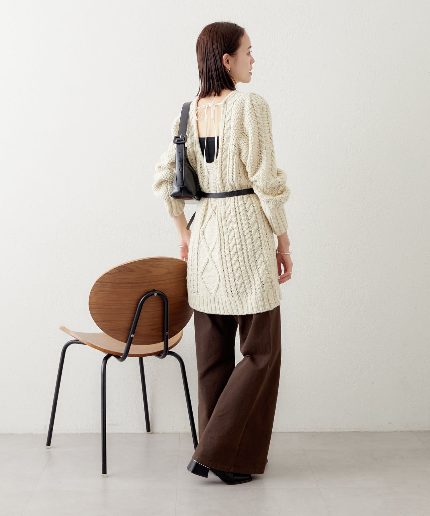 後ろのリボンが目を惹く◎ケーブル編みのミニワンピースが登場!