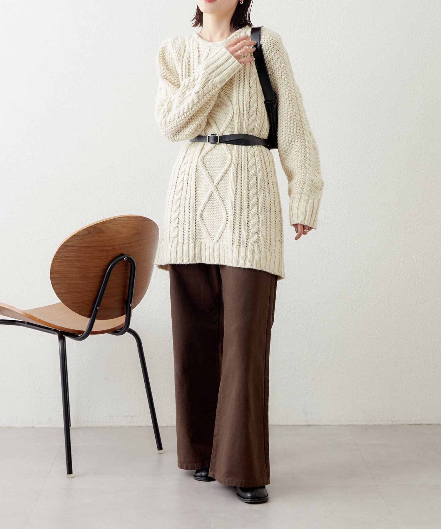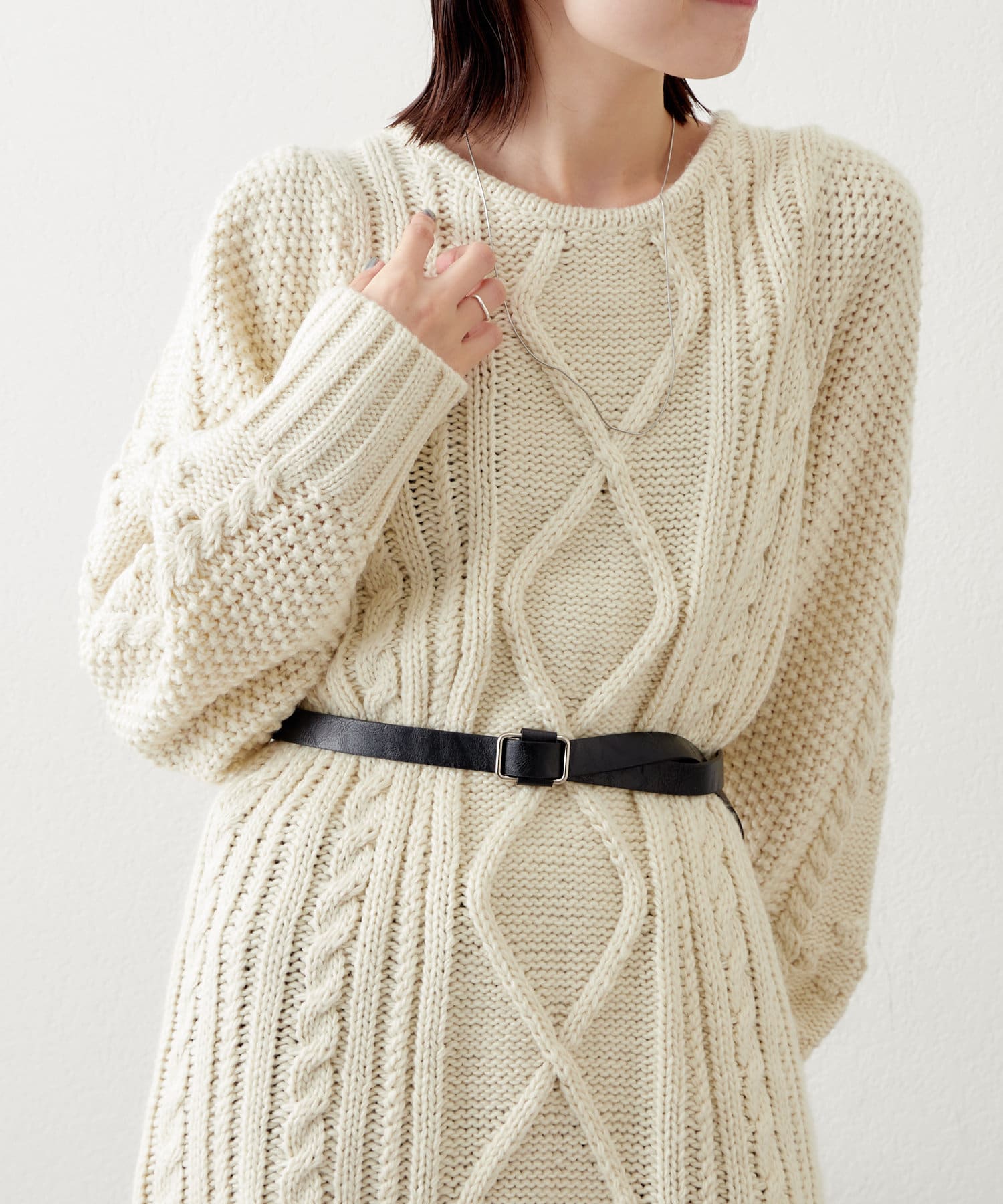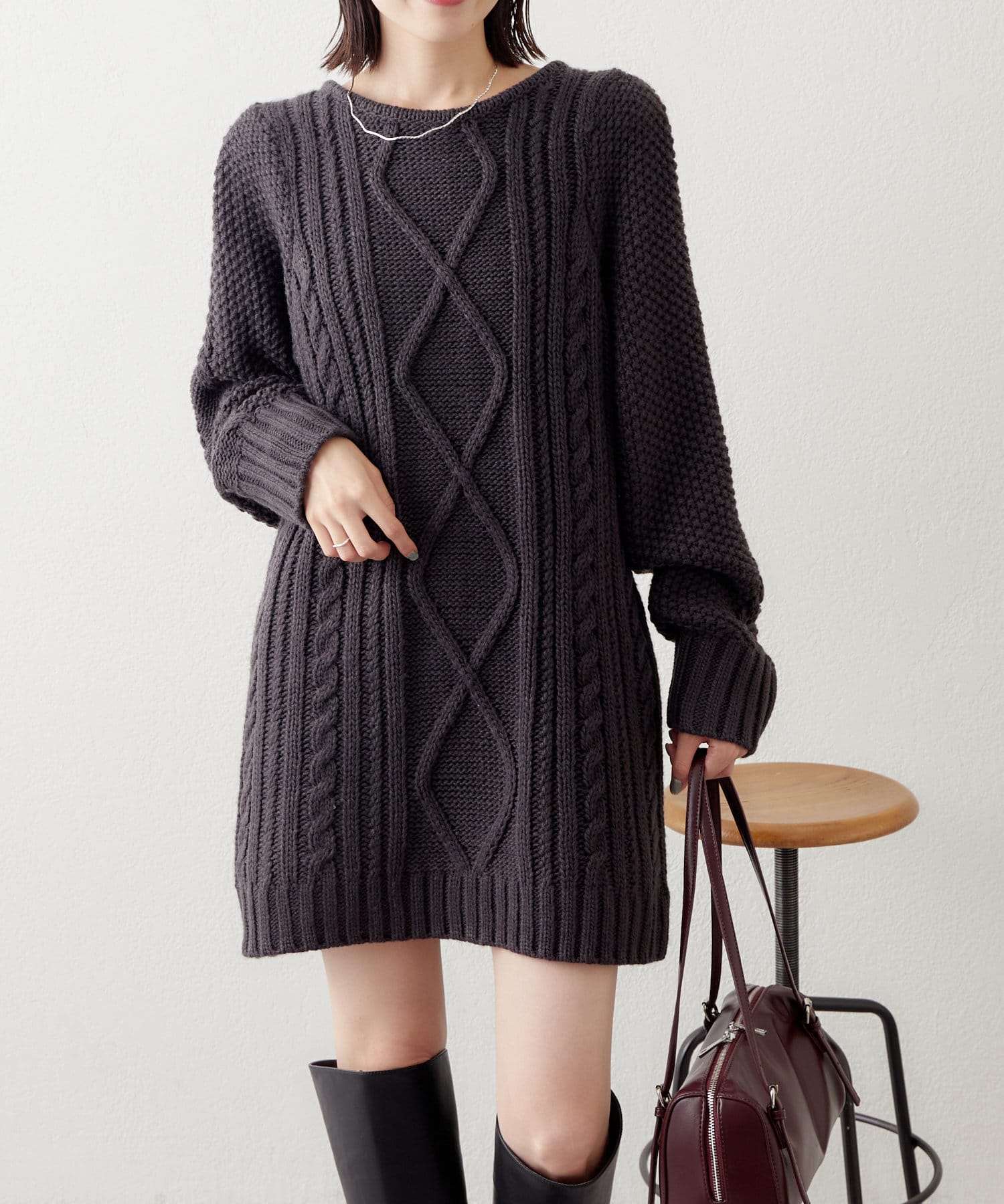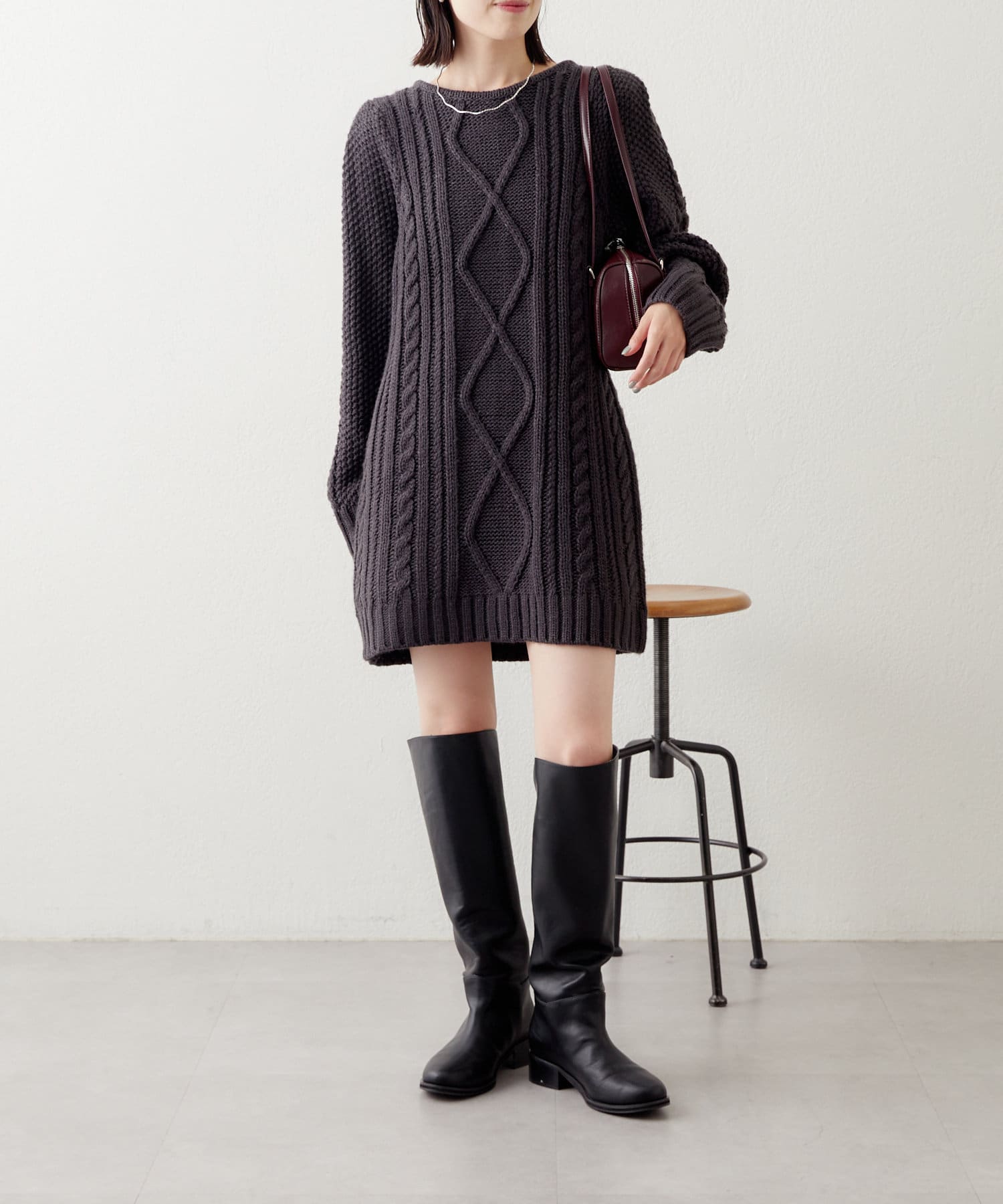 ・ケーブル編みが一気にシーズンライクな雰囲気に仕上げてくれるミニワンピース。