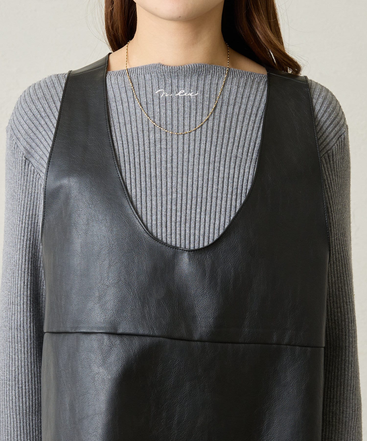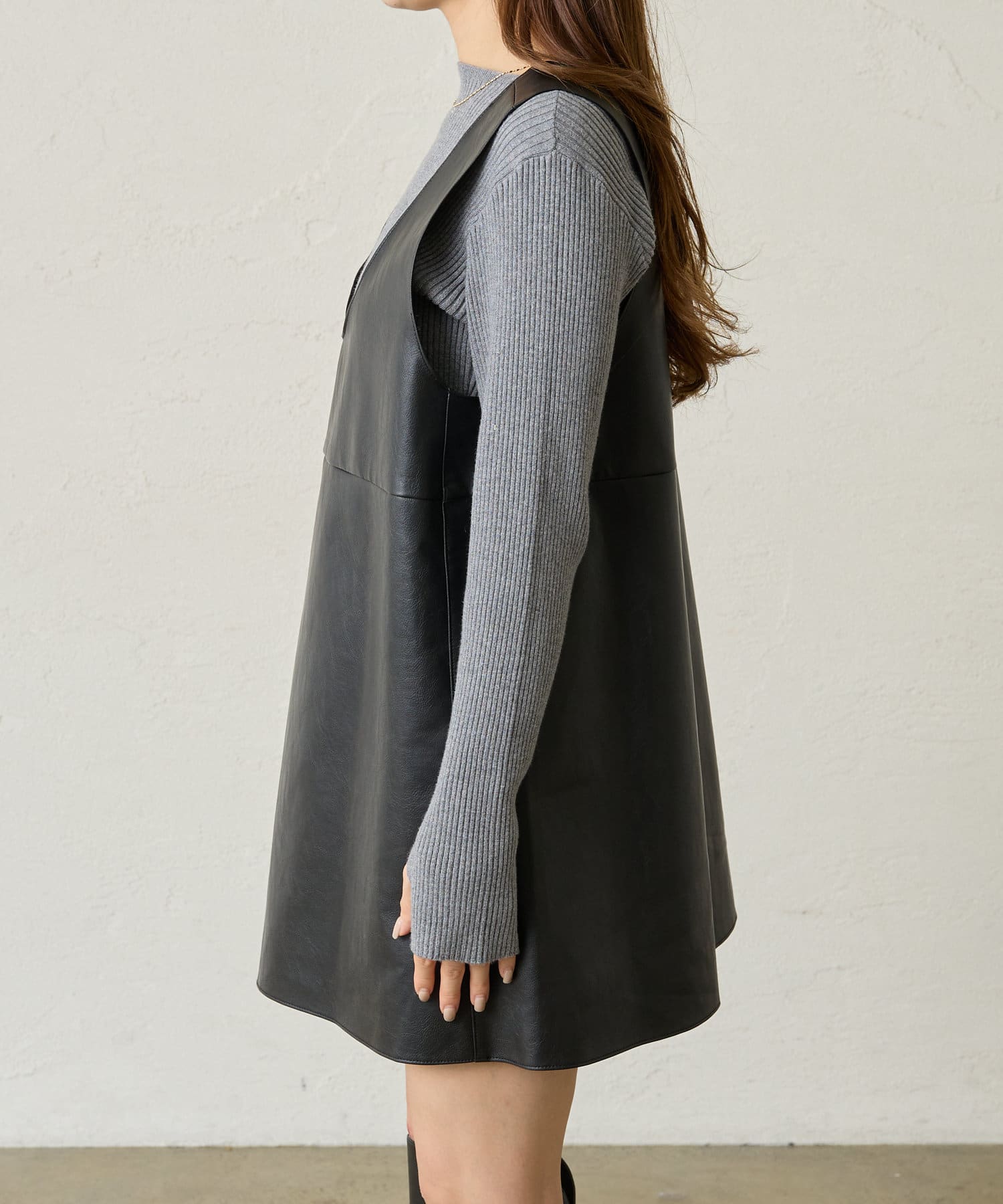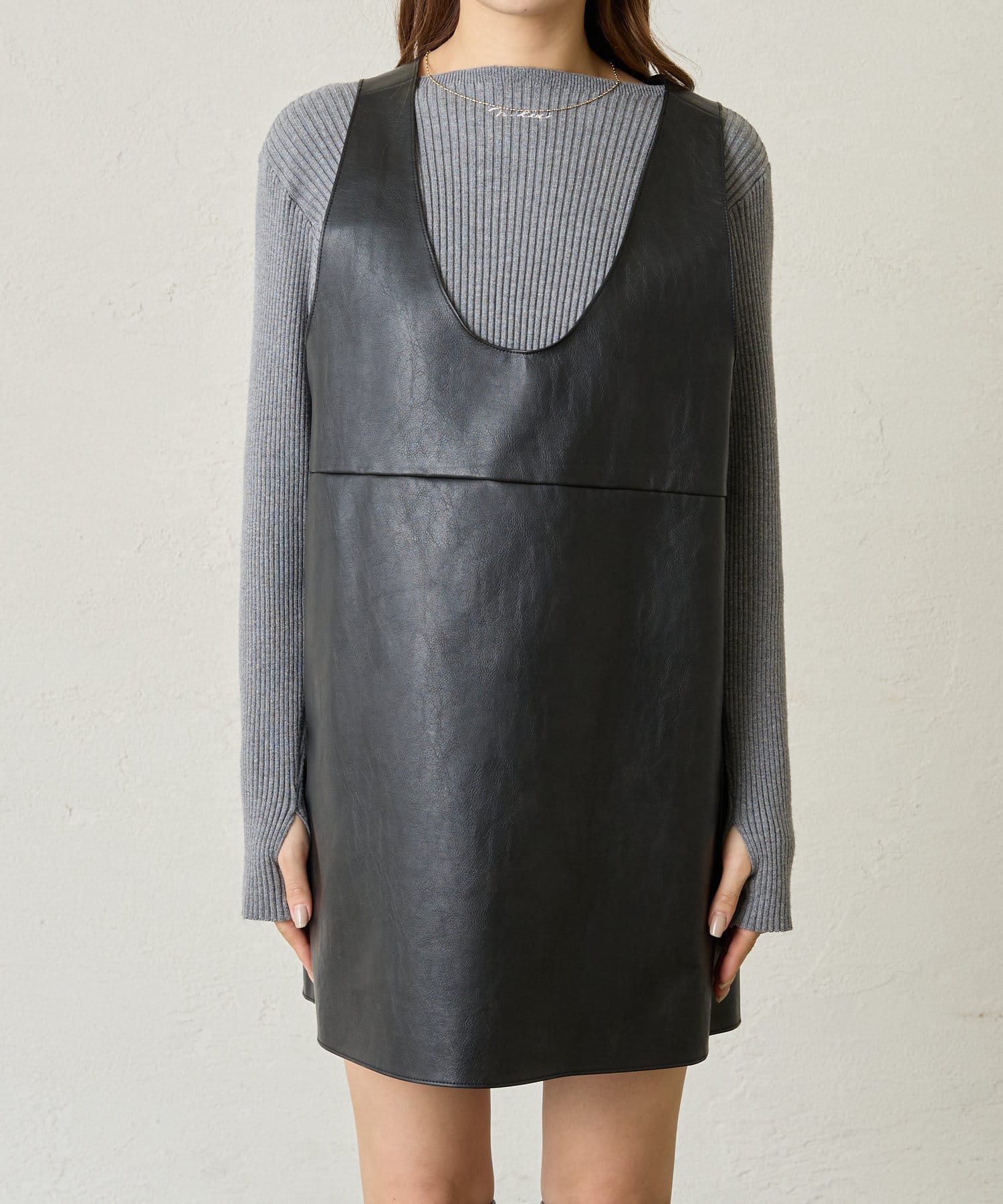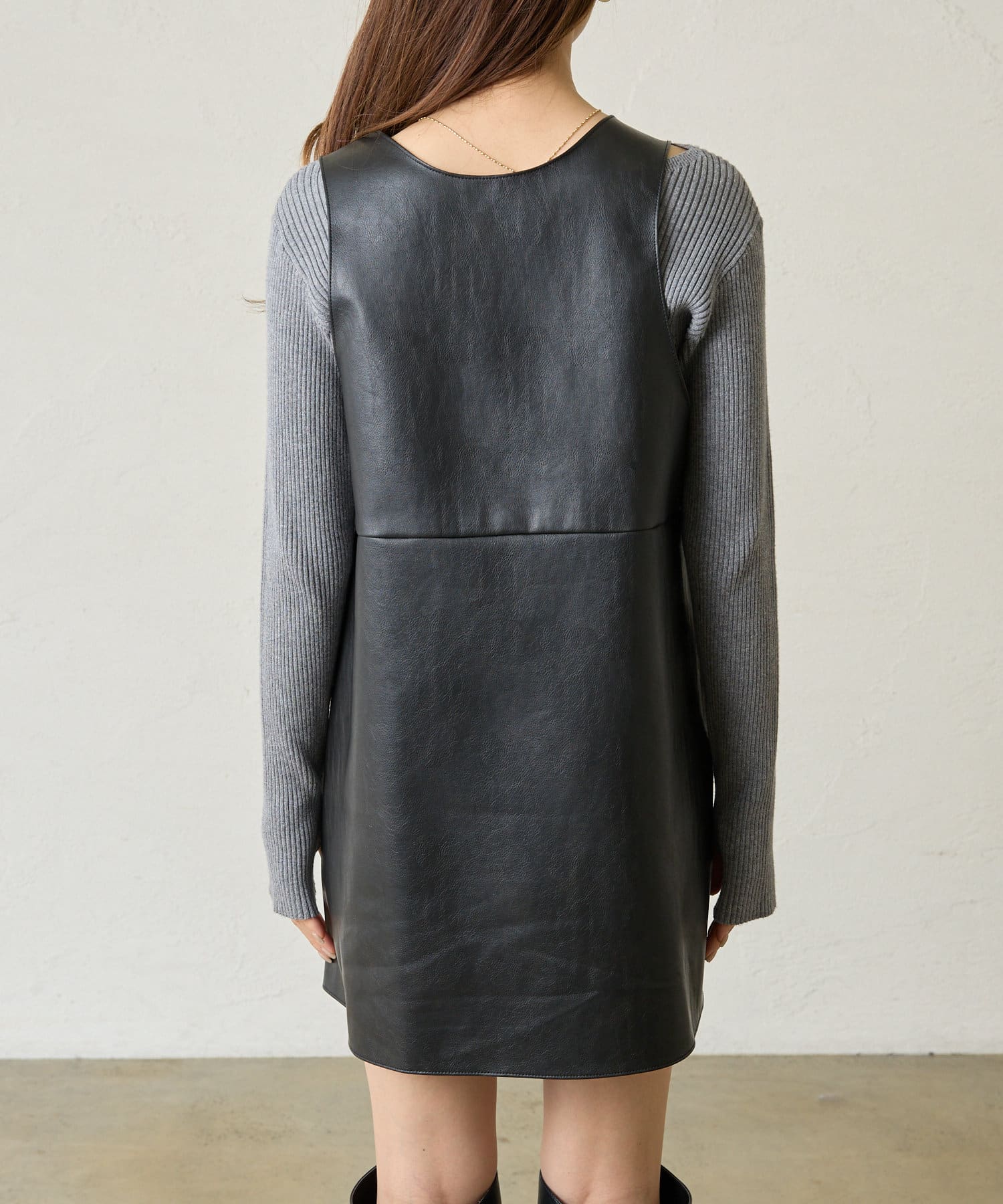 [mline]レザーVミニワンピ