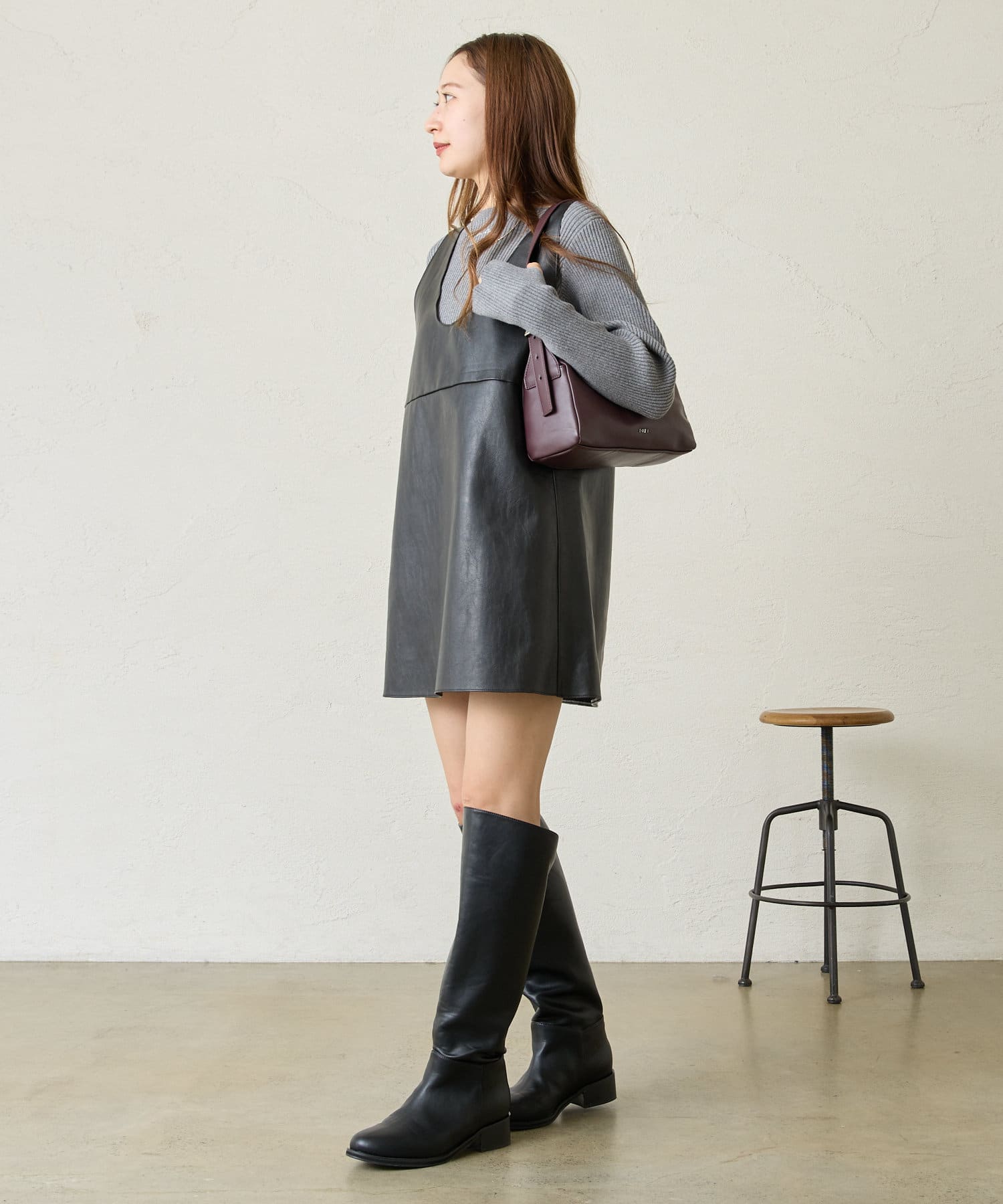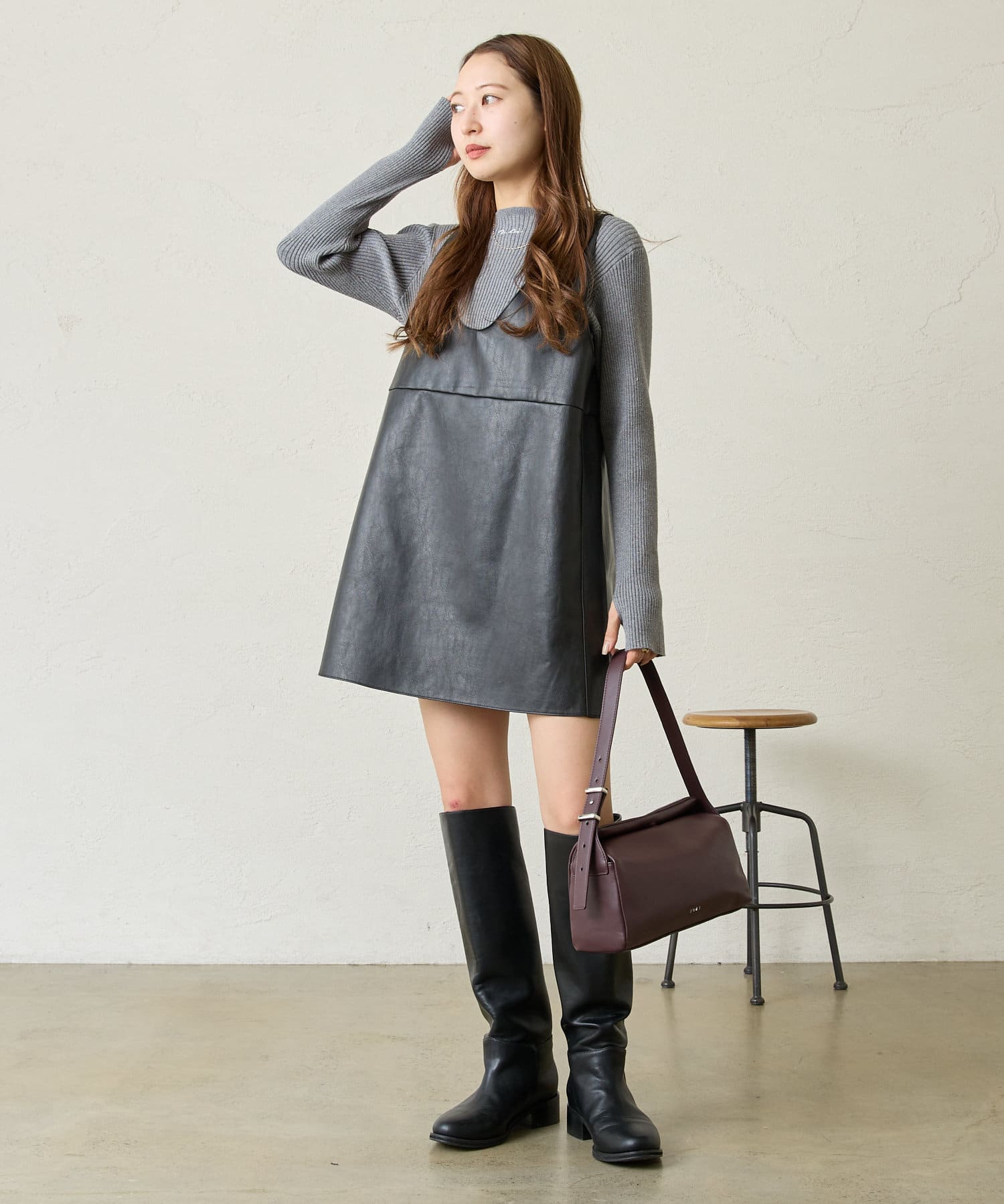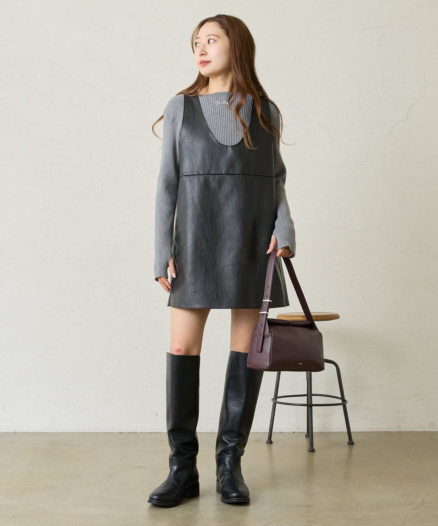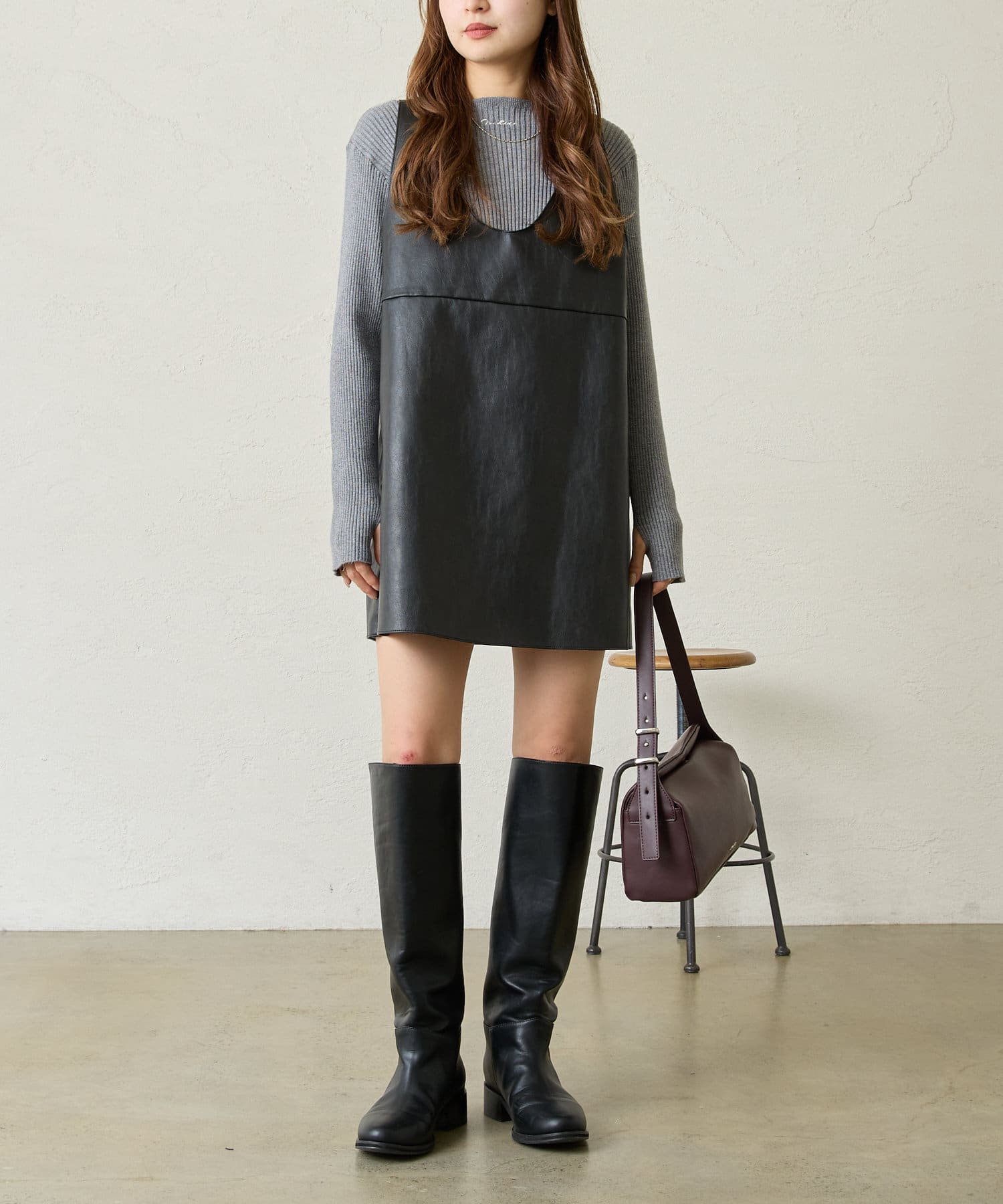 ・ミニ丈ボトムスとロングブーツ合わせでトレンドな着こなしに◎