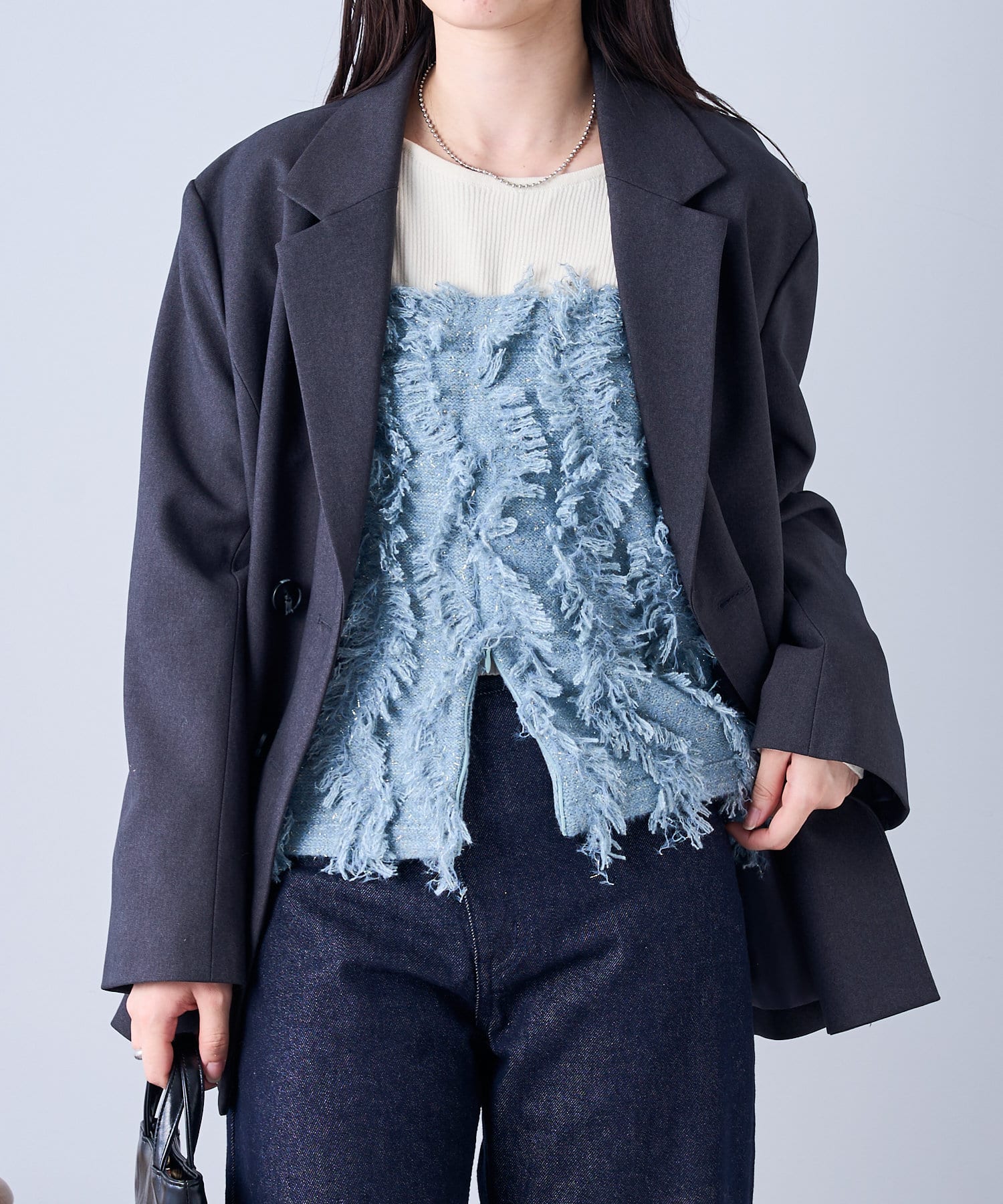 ・ビスチェとしてカットソーや薄手のニットの上に重ねるスタイリングもおすすめです◎