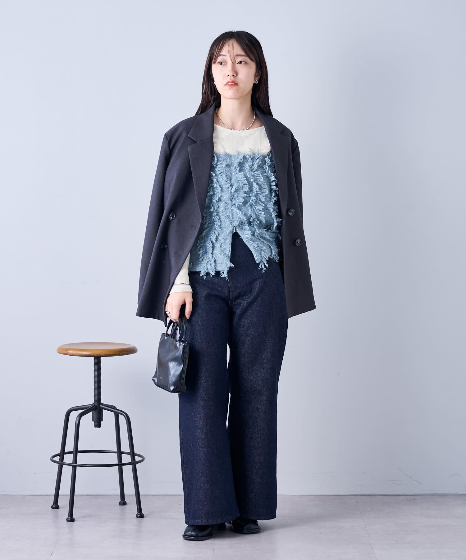 ・デニムにレイヤードしてこなれ感のあるスタイリングに◎