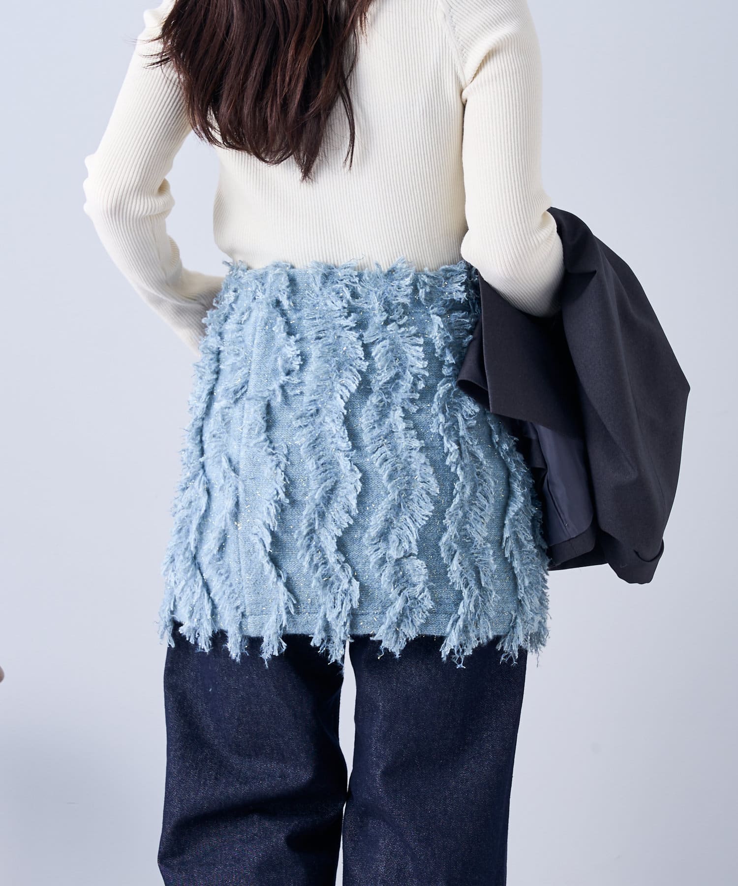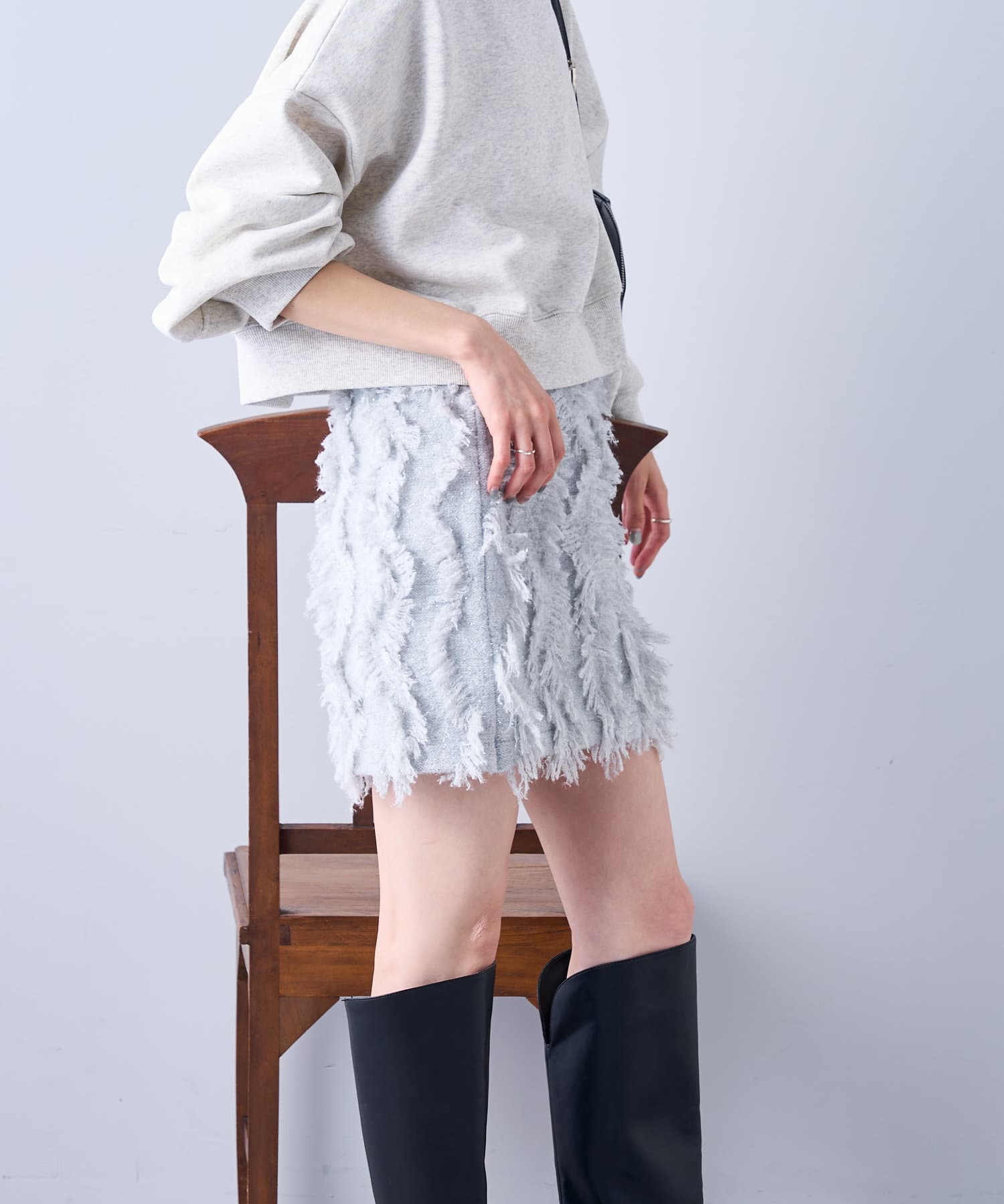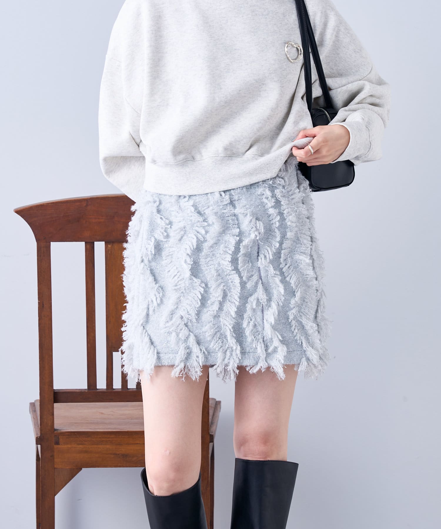 ・フリンジデザインとさり気ないラメ感が華やかで着映えするミニスカート。