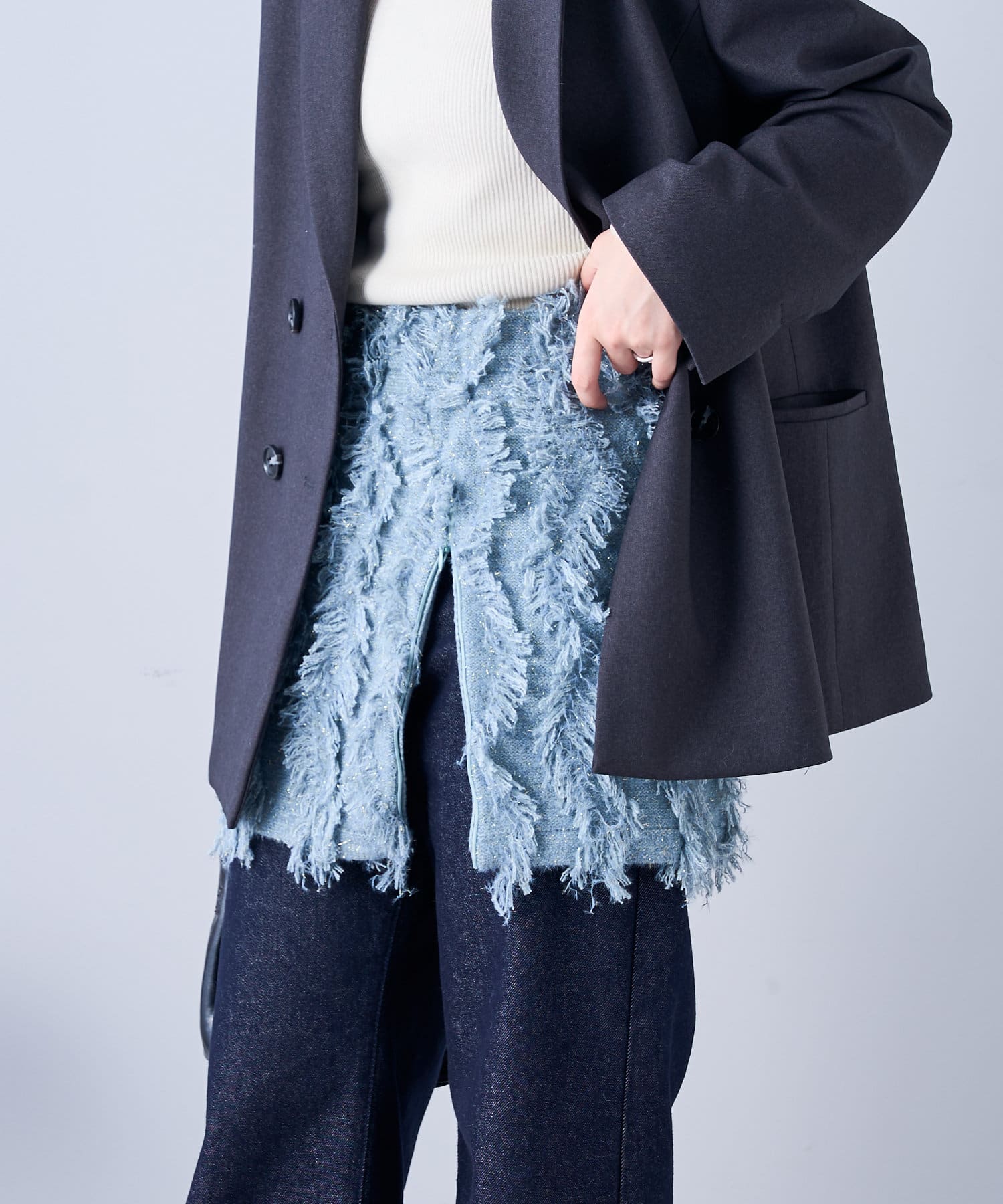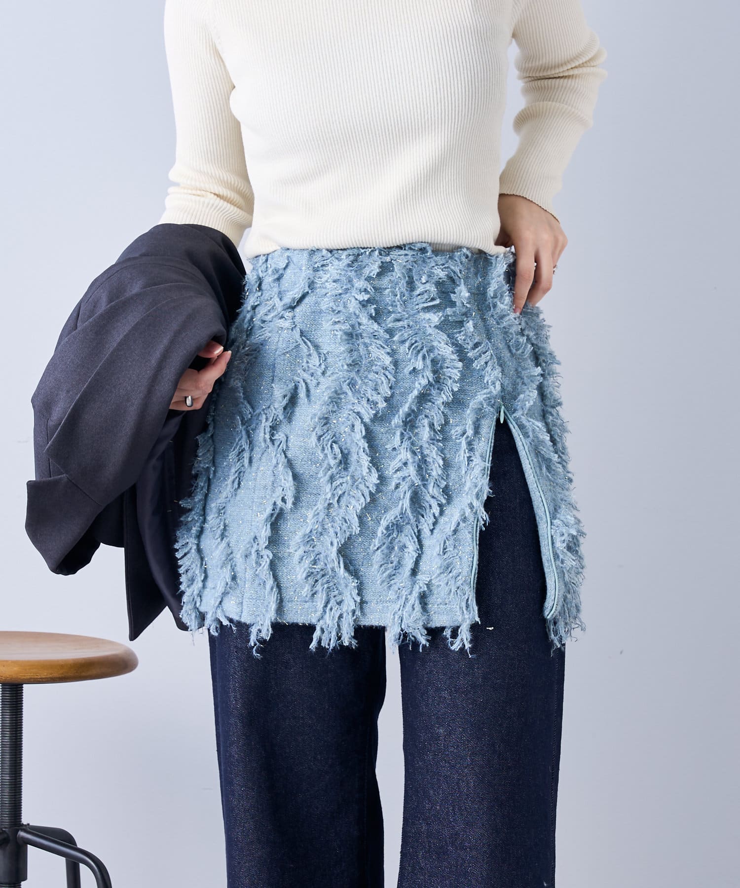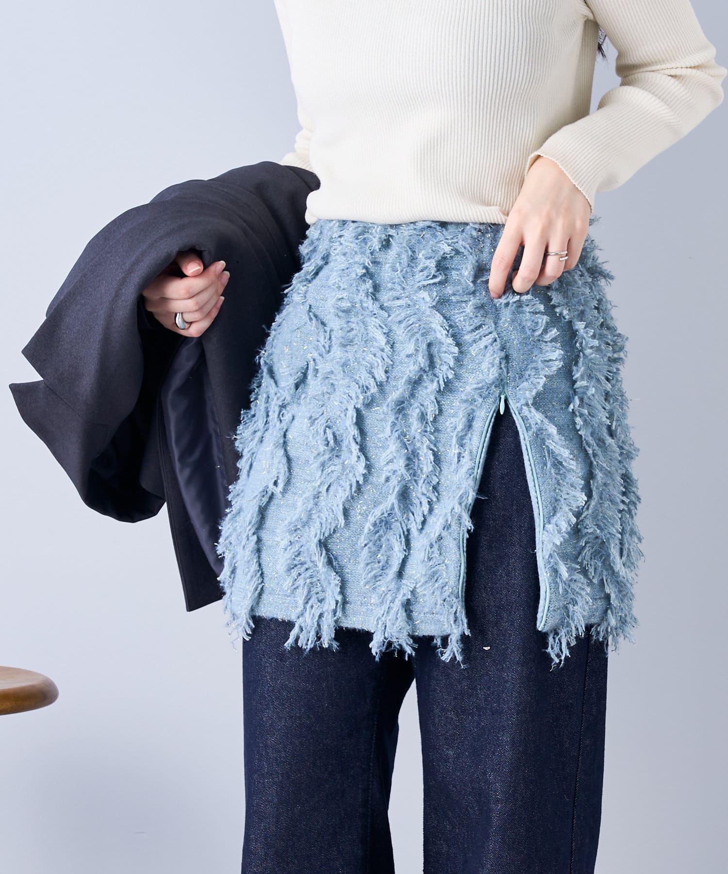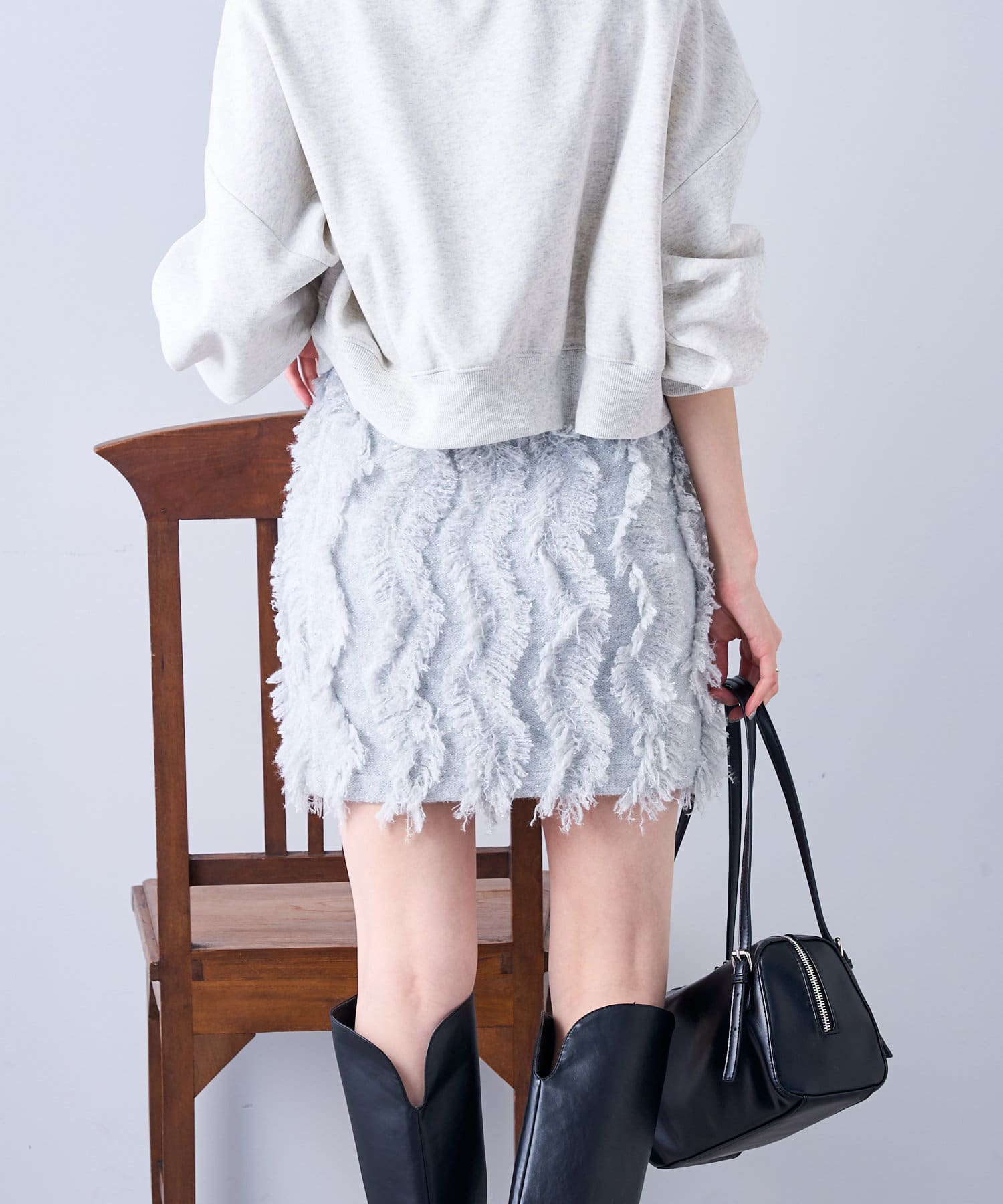 ・フリンジデザインとさり気ないラメ感が華やかで着映えするミニスカート。