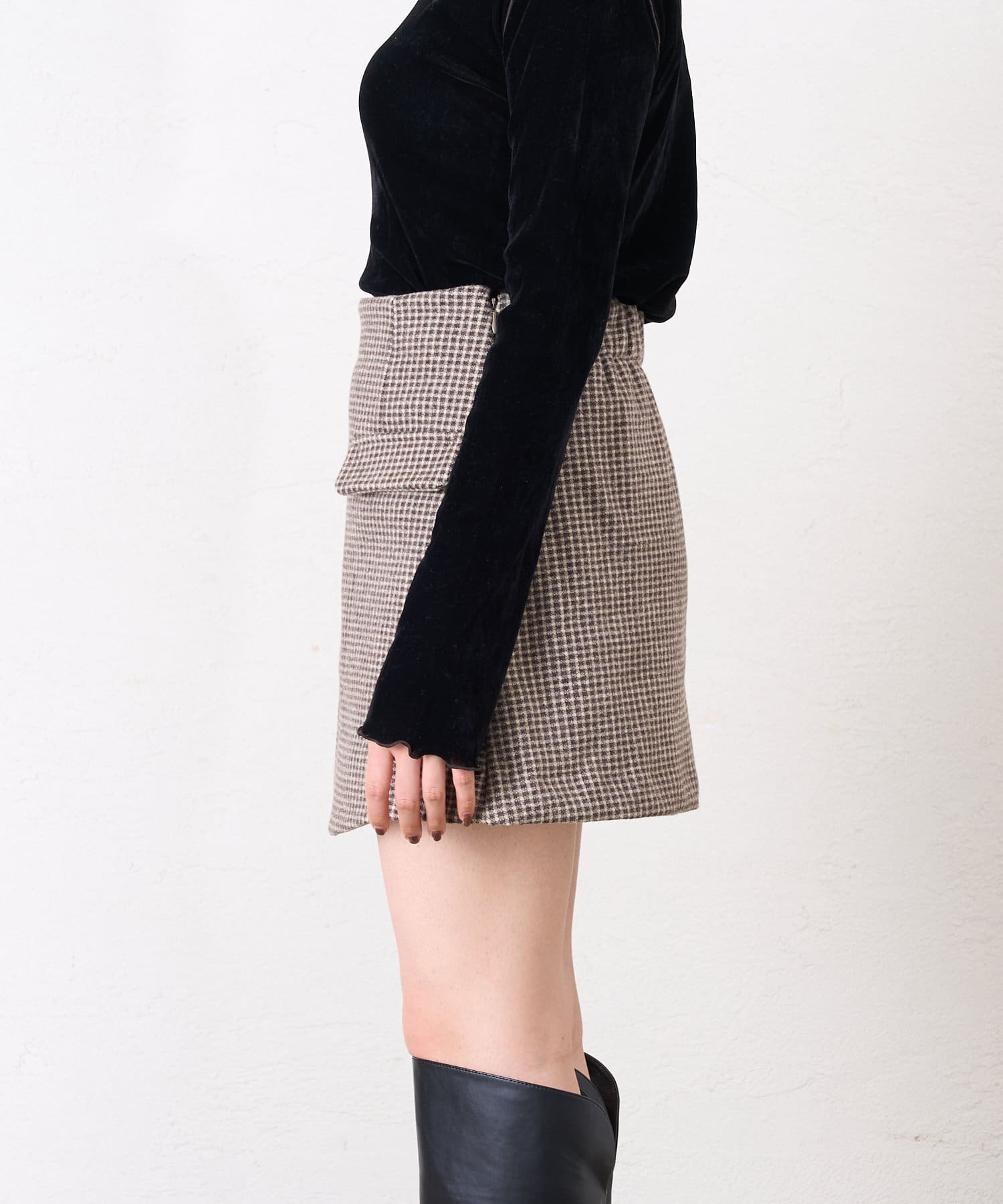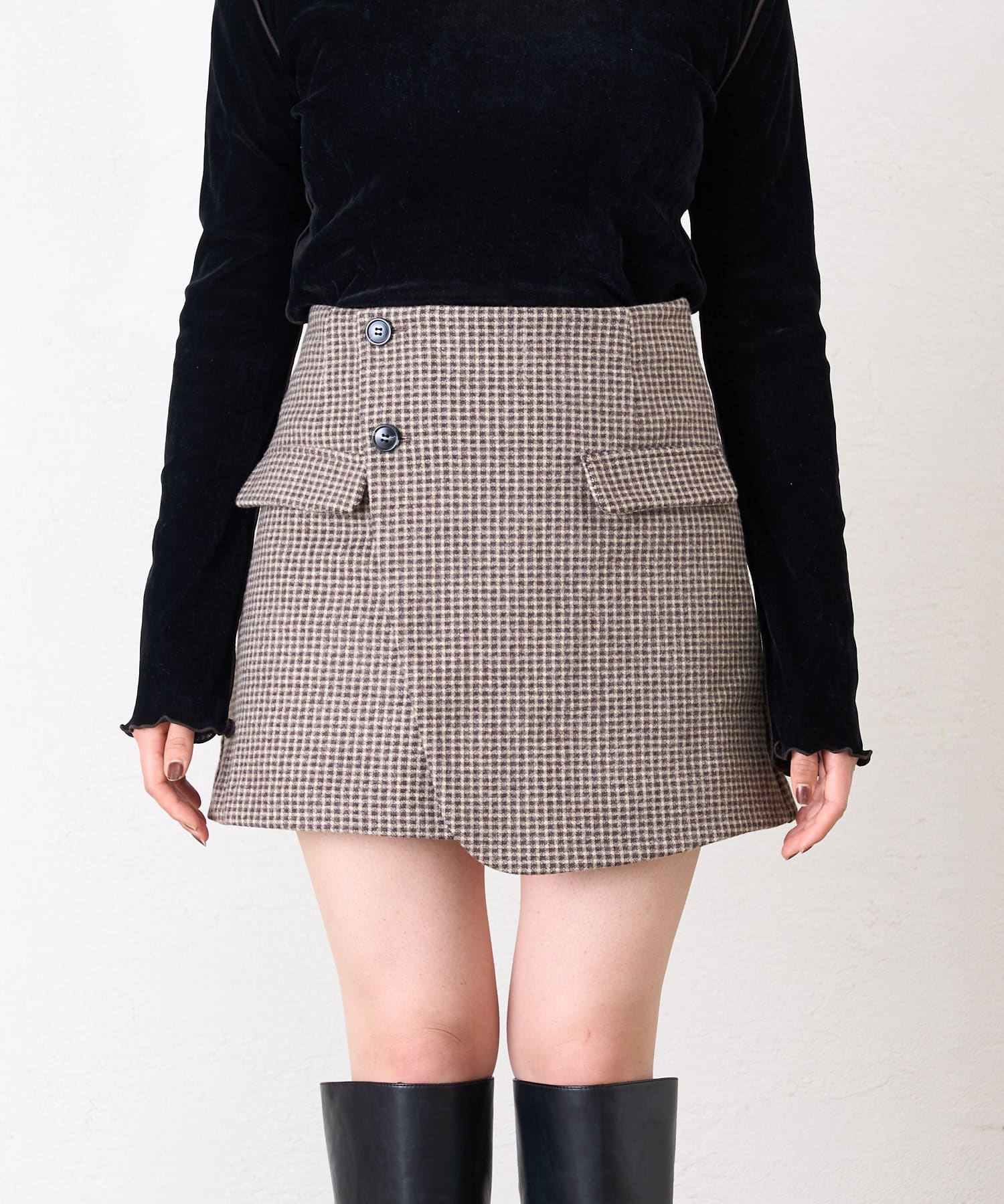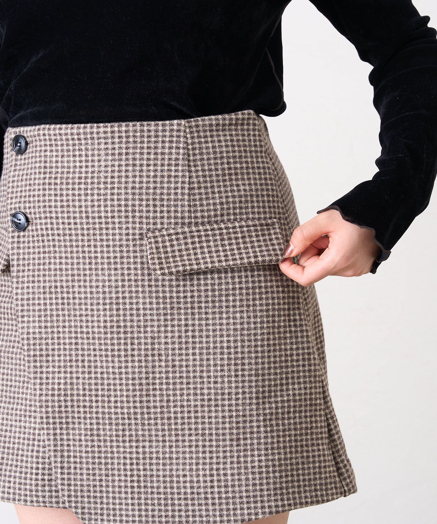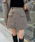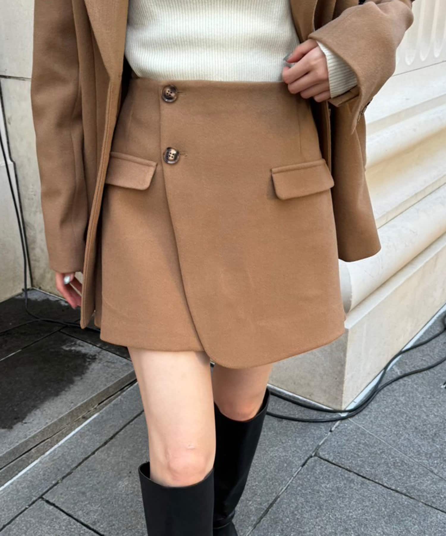 ・フェイクポケットとラップデザインでこなれ感たっぷりな印象のミニスカパン。