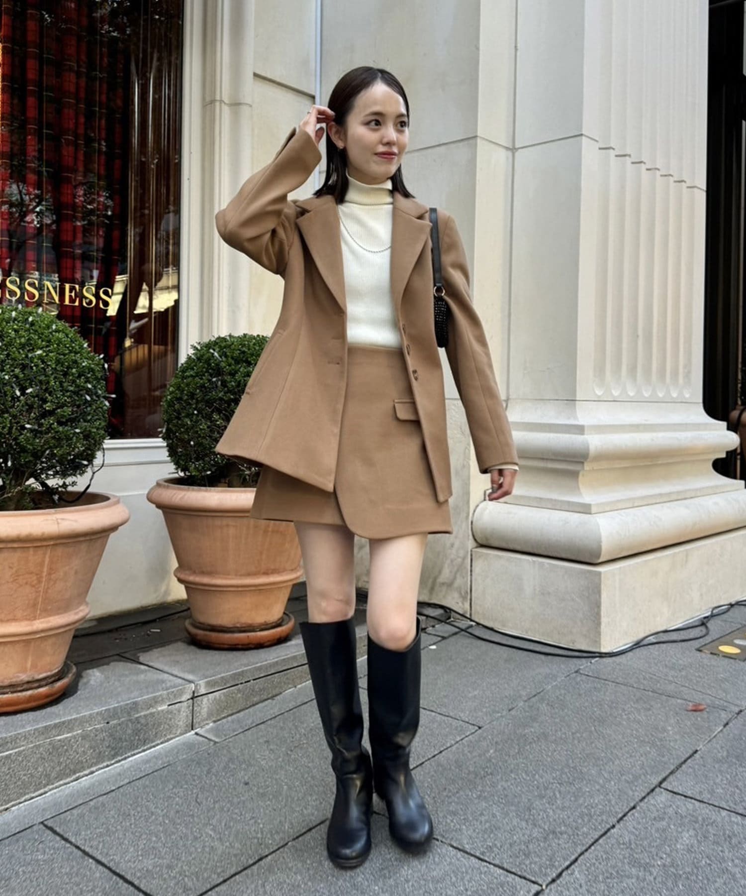 ・ニットにロングブーツ合わせでトレンドライクなコーデが完成します!