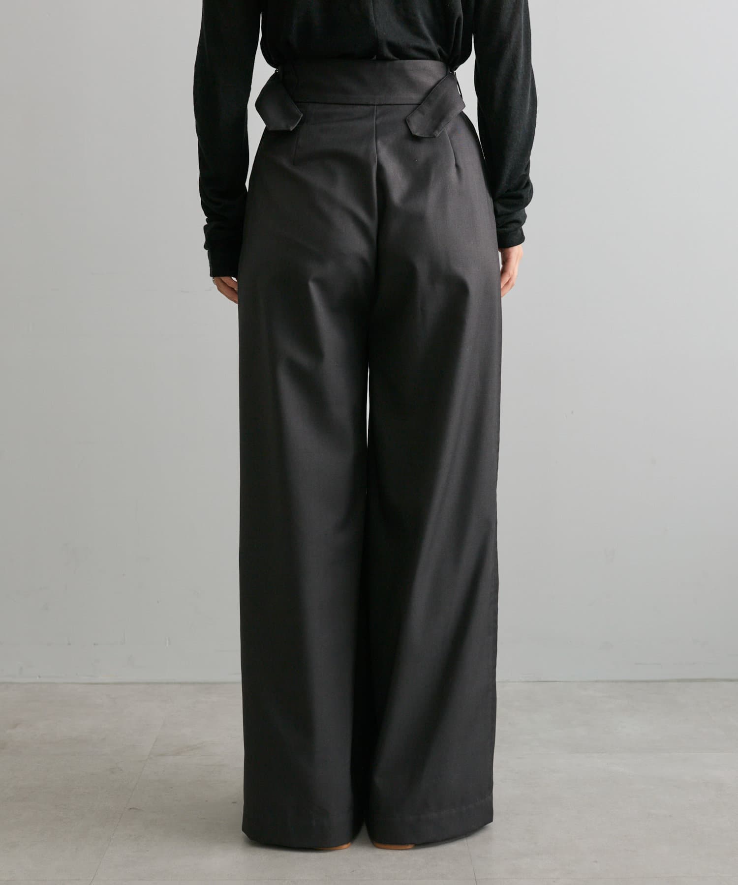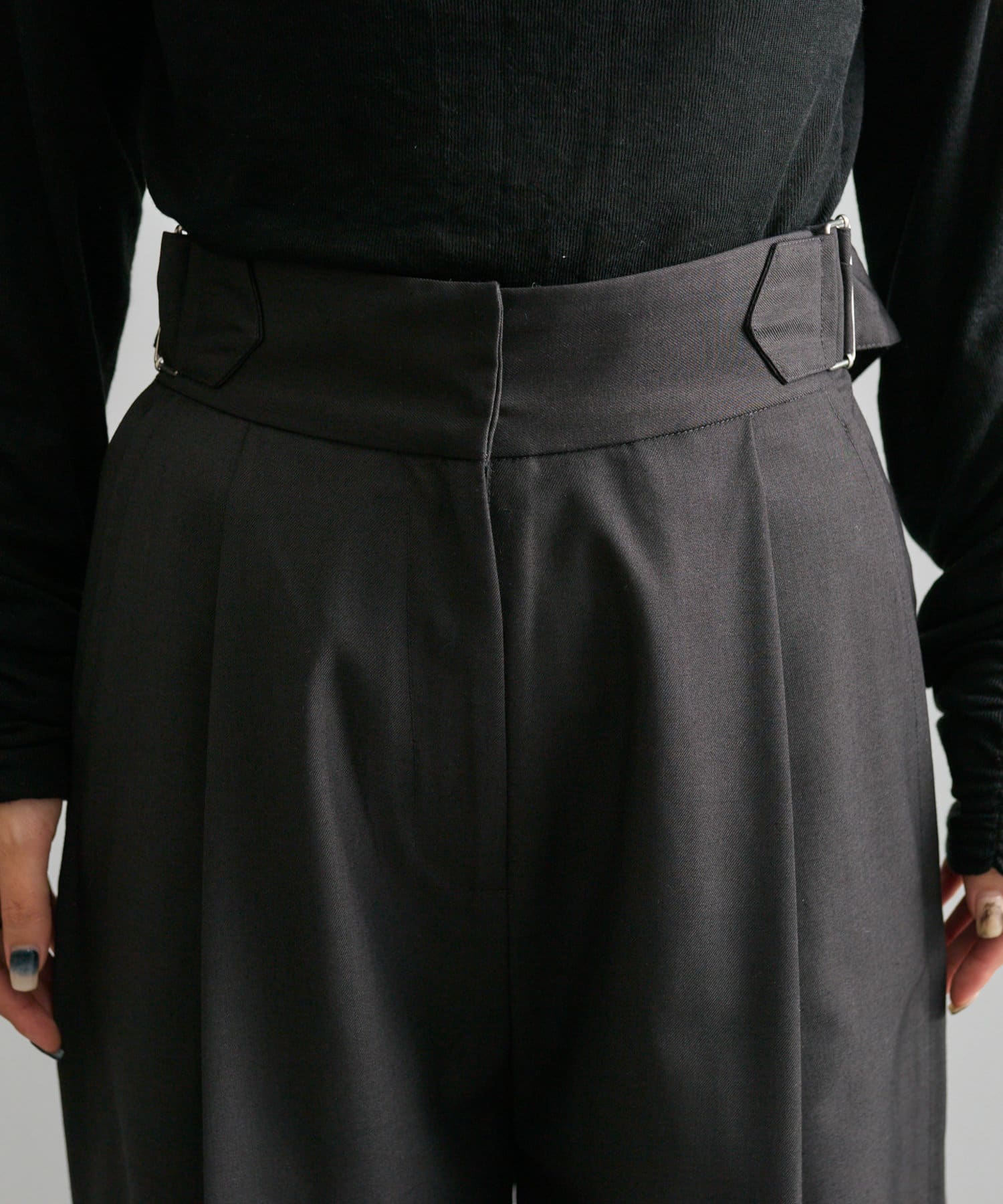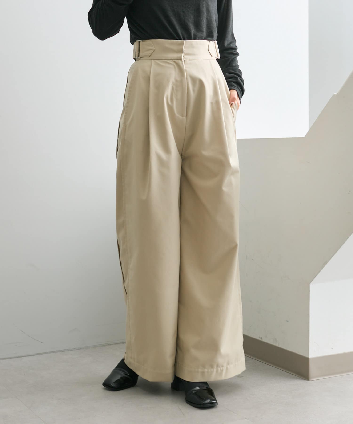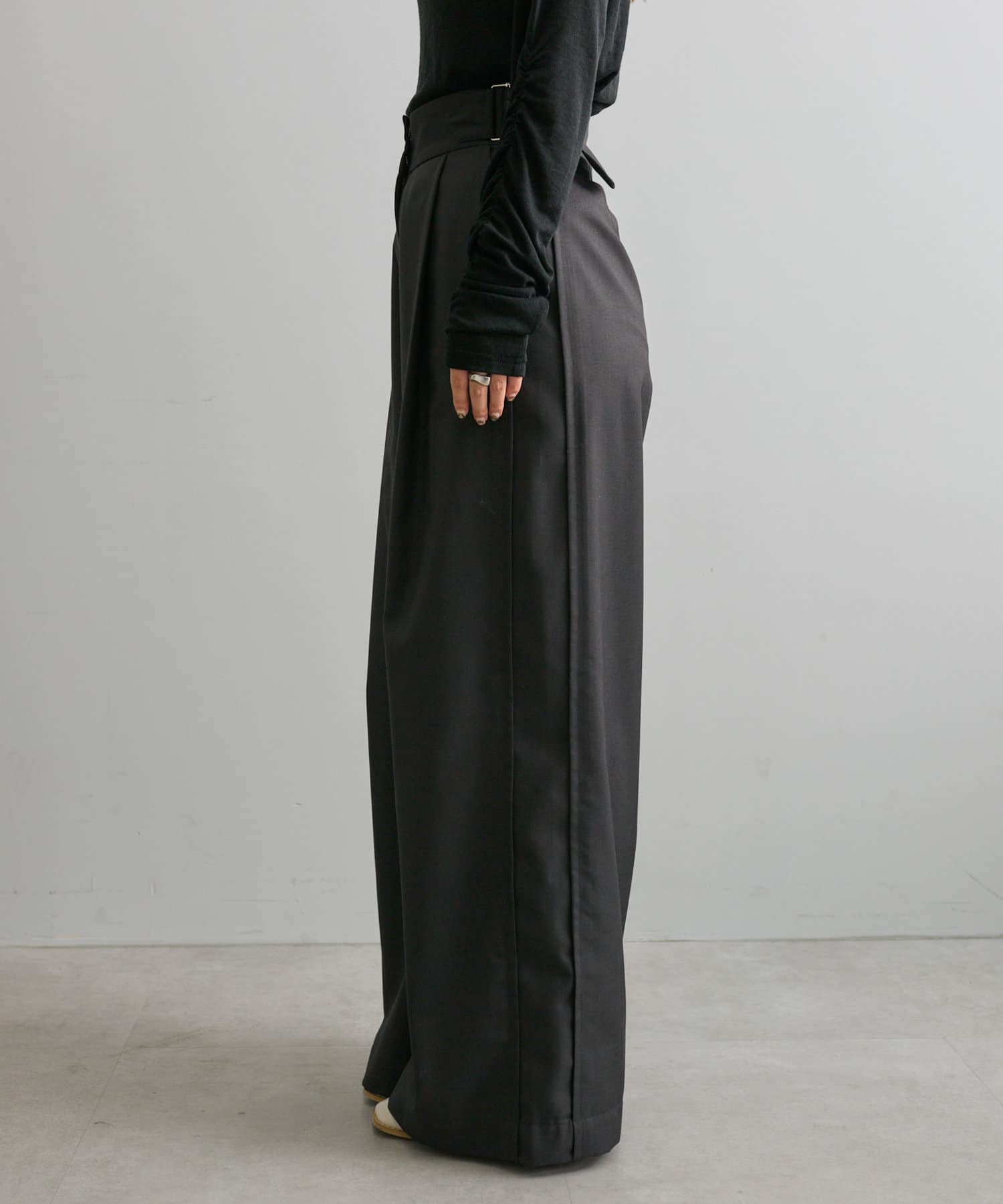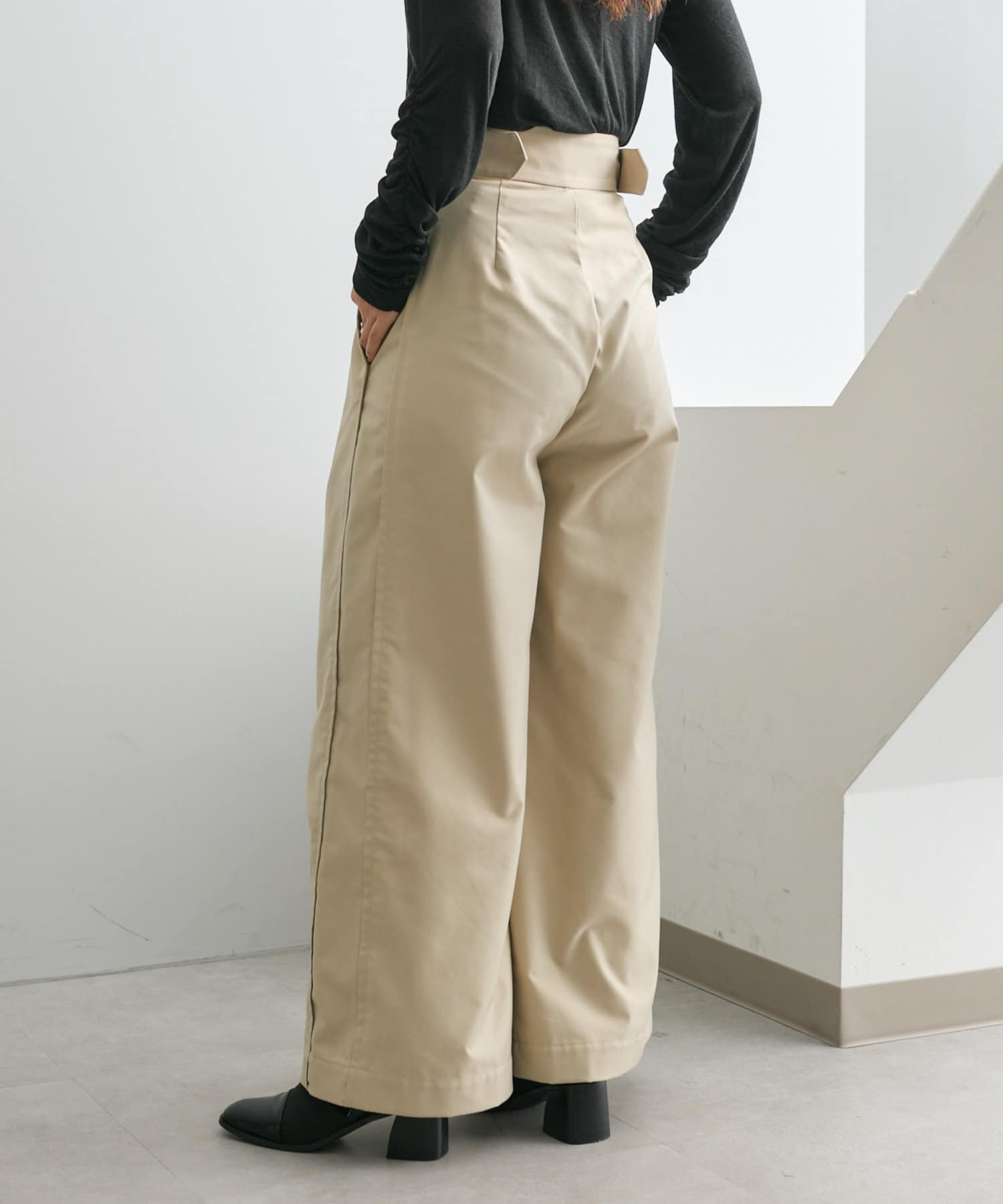 ・ウエストのベルトデザインがトレンドライクなスラックス。