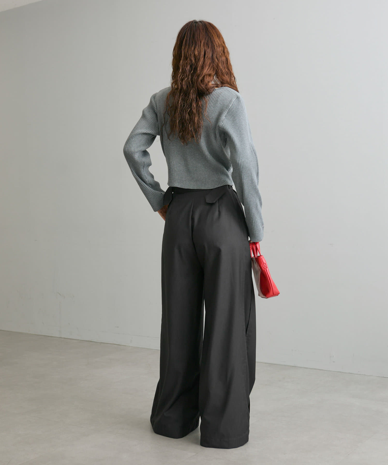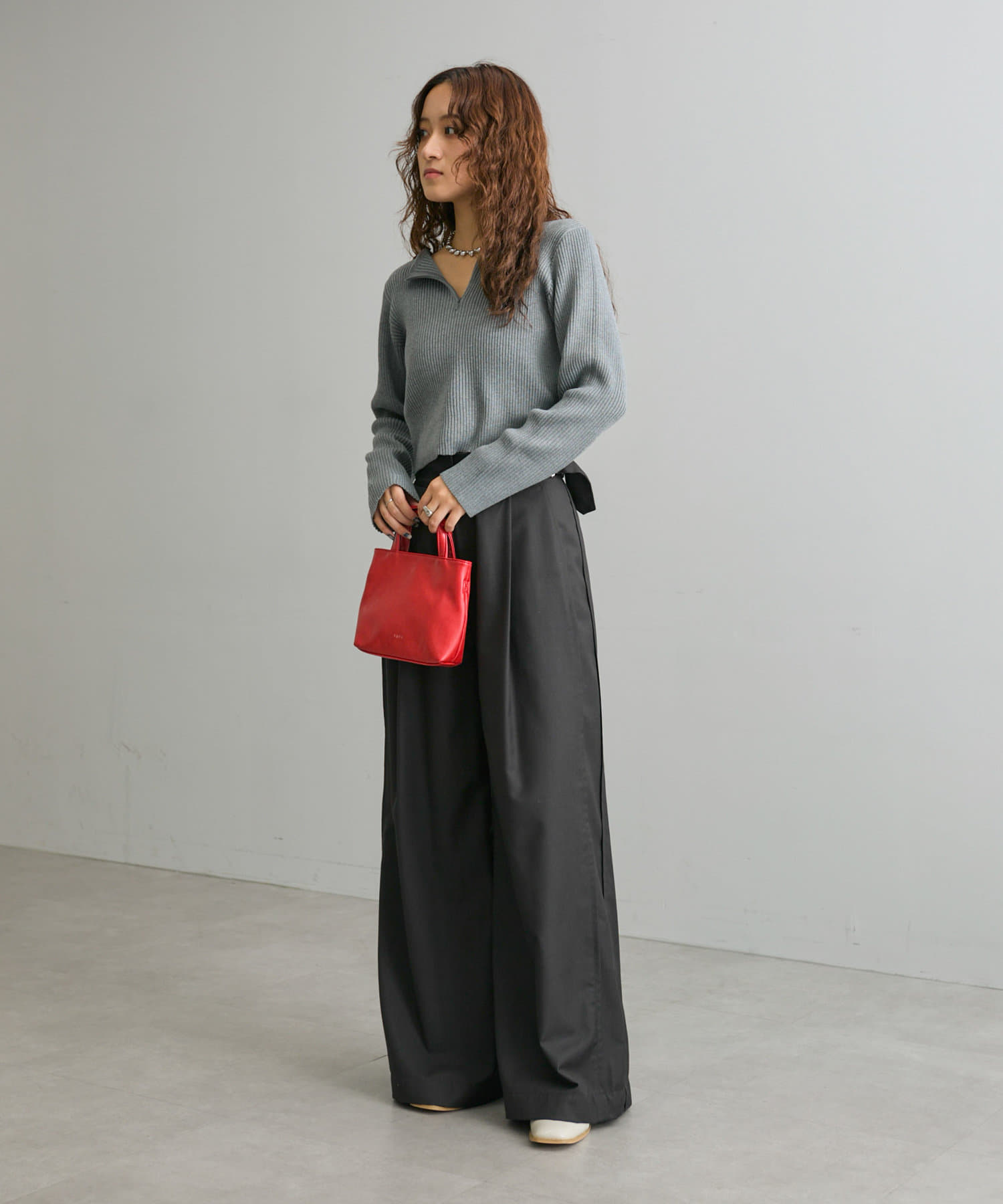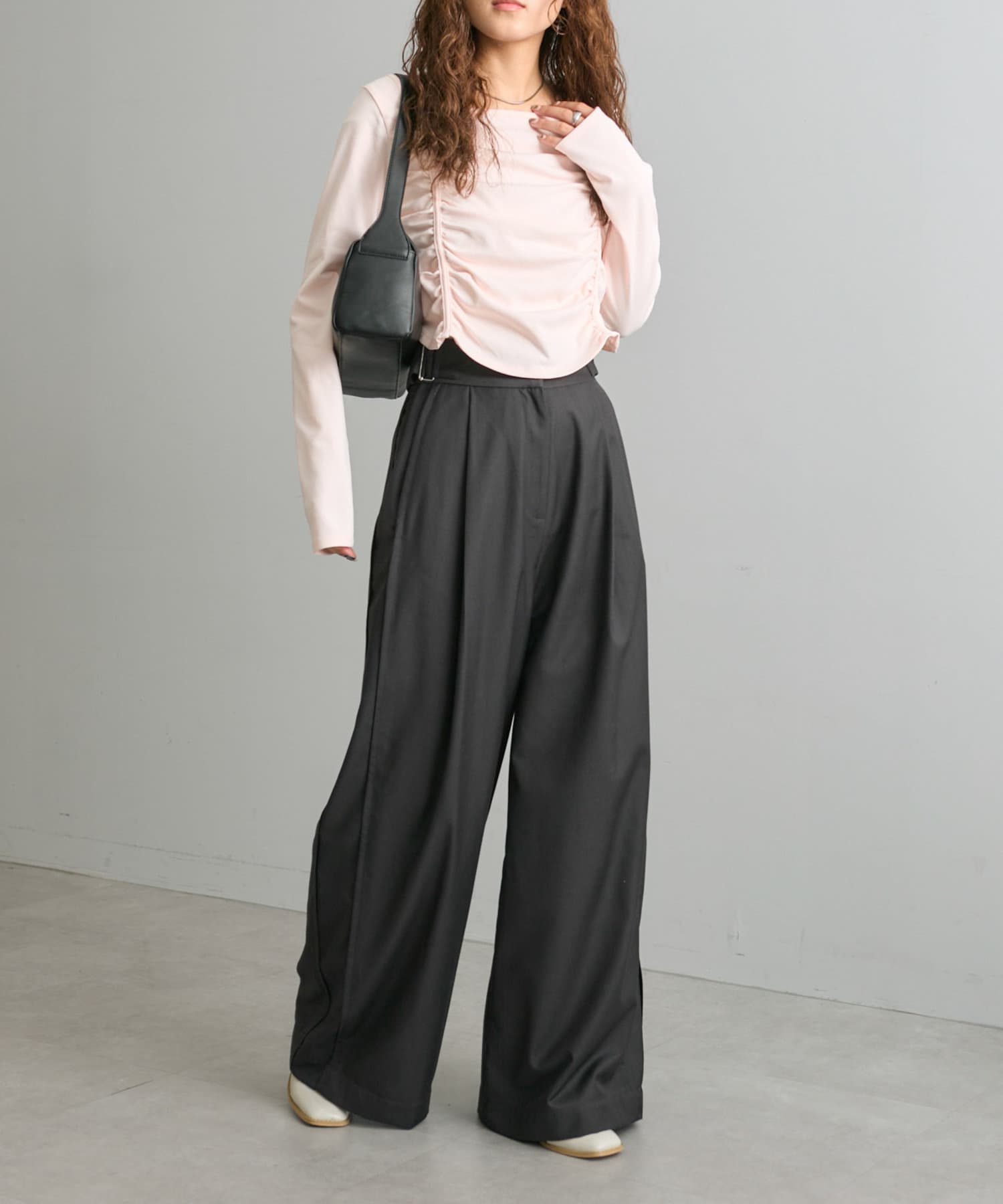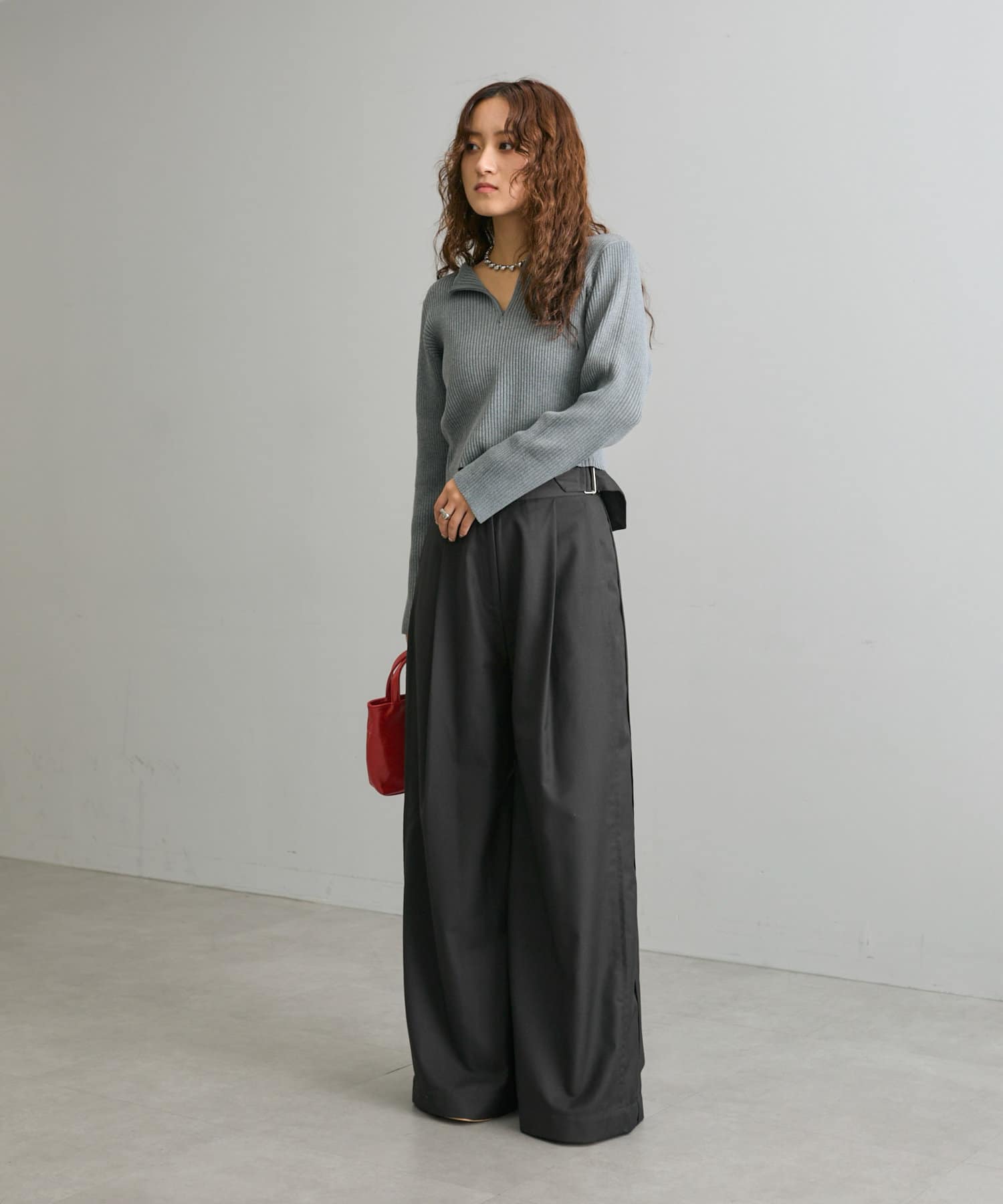 ・ワイドシルエットのボトムスなので、コンパクトなトップス合わせでバランス良く決まります!