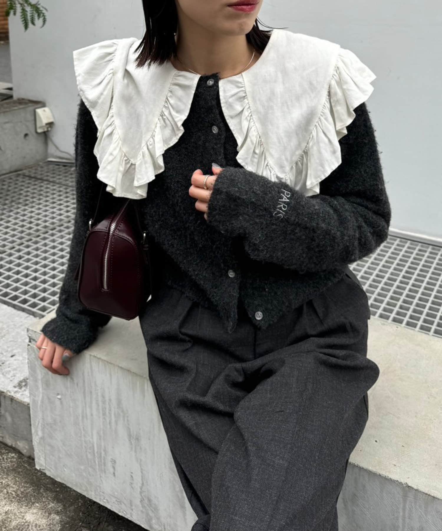 購入場所:店舗襟が大きいブラウスを持ってなく甘くなるかなと思っていましたが、カーディガンと合わせて着てみるとオシャレ度が増した感じになりました!