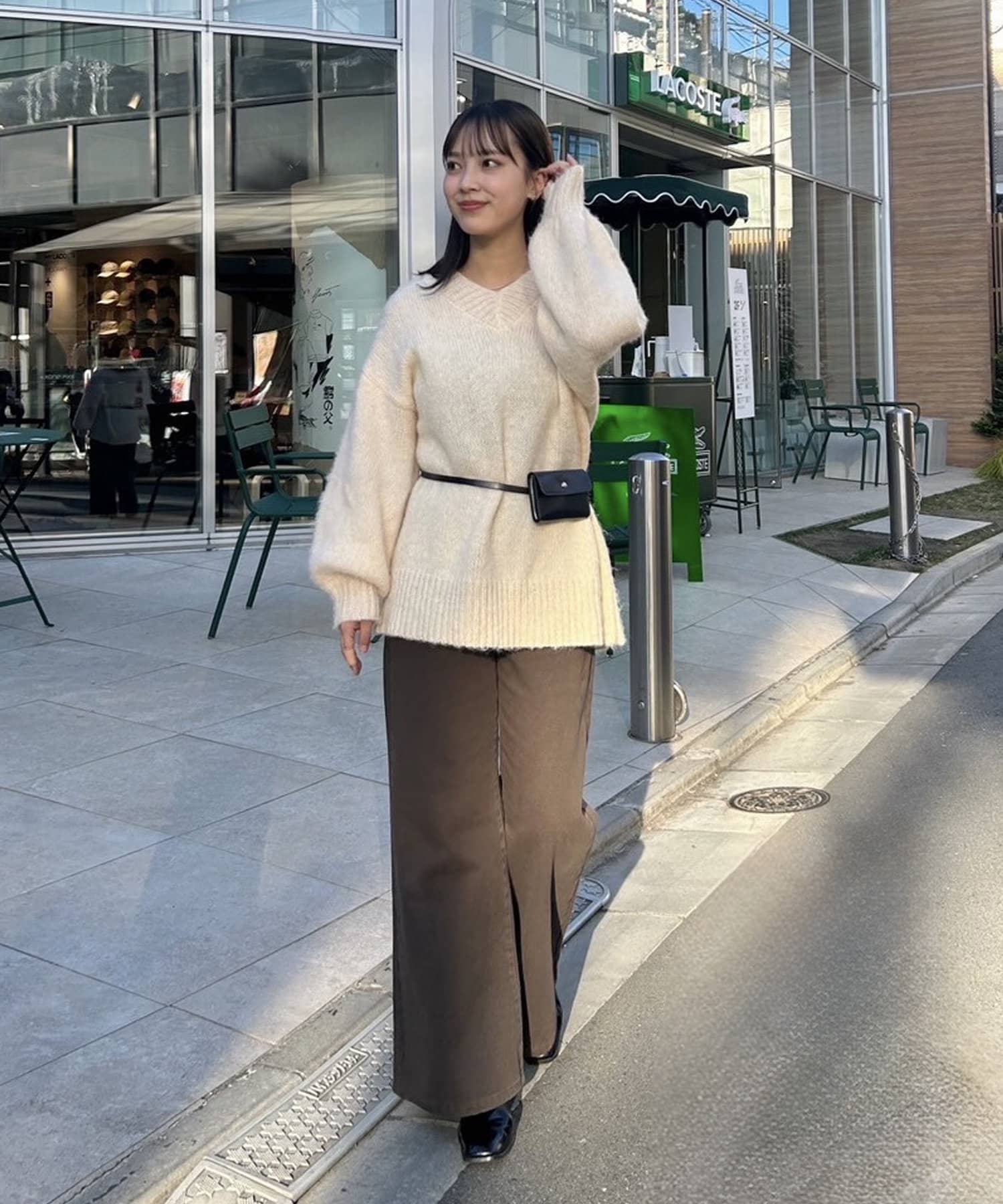 ・セットのニットとベルトポーチを合わせるだけでトレンドライクな着こなしに◎